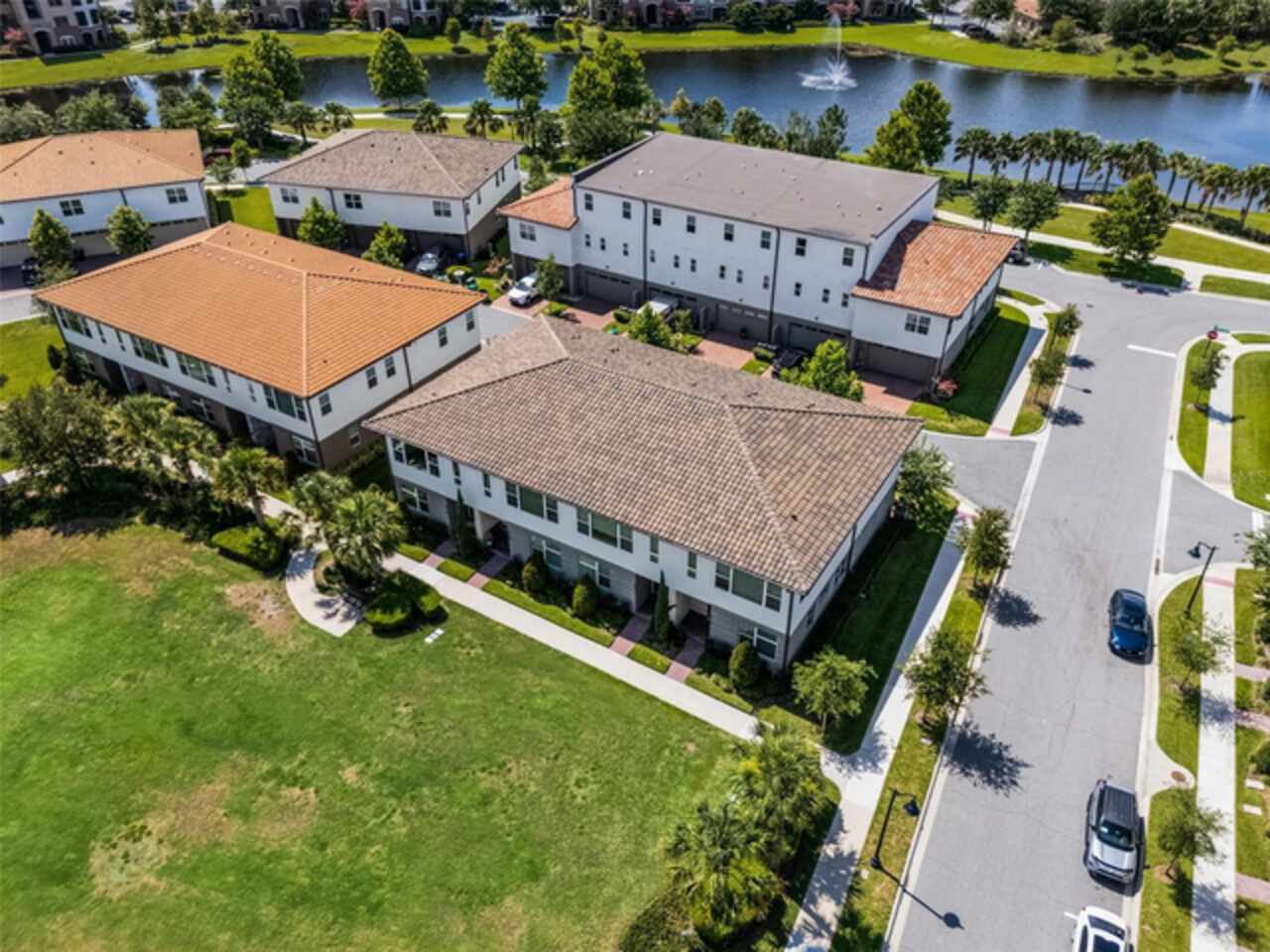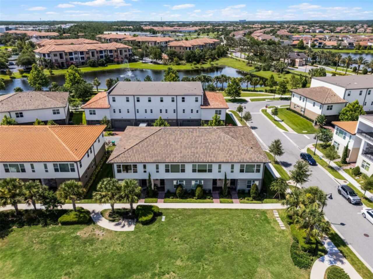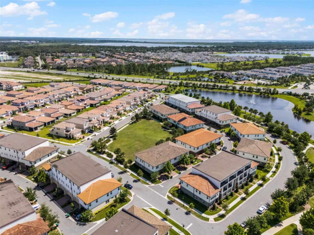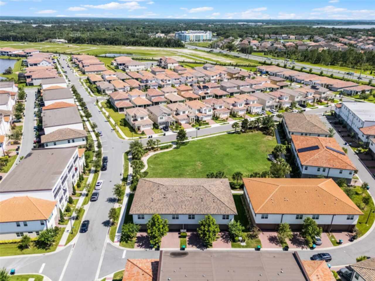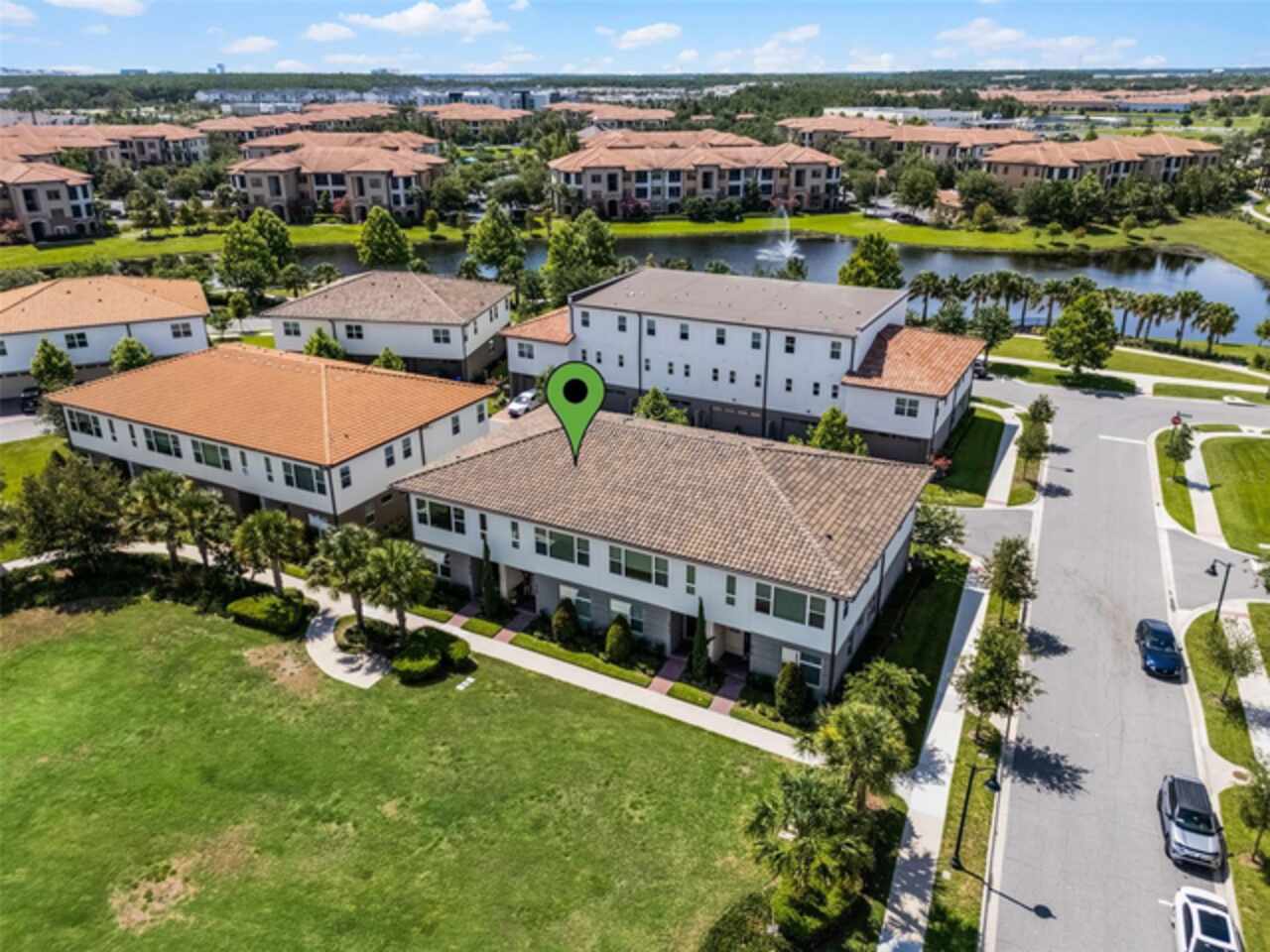 Welcome to the epitome of carefree, country club living nestled in the vibrant heart of Lake Nona. This beautifully appointed two-story townhome offers a thoughtful layout with two bedrooms, two and a half baths, and a two-car garage, delivering both comfort and style. Step inside to find a mix of ceramic tile and plush carpeting, illuminated by modern recessed lighting throughout. The entry level features a well-sized bedroom, a full bathroom, and a flexible den space ideal for a home office or creative retreat, along with a conveniently located laundry area.Upstairs, the kitchen takes center stage with sleek stainless steel appliances, a generous walk-in pantry, and an expansive breakfast bar that seamlessly flows into the great room. The open-concept design invites light through large windows, creating a bright and welcoming atmosphere perfect for entertaining or quiet evenings in. A powder room adds extra convenience, while the spacious owner’s suite provides a peaceful escape, complete with a large walk-in closet and an elegant ensuite bath featuring dual vanities, solid-surface countertops, and an oversized walk-in shower. Set within the guard-gated community of Eagle Creek, this residence offers access to exceptional amenities that cater to both relaxation and recreation. From a Championship Golf Course and clubhouse to a resort-style pool, fitness center, tennis and basketball courts, and more, every day feels like a vacation. Families will love the covered playground and multi-purpose field, while the community’s location makes commuting and exploring a breeze. Just moments from Medical City, top hospitals, the USTA National Campus, and entertainment hubs like the Wave Hotel and Boxi Park, everything you need is close at hand. Proximity to SR 417, SR 528, and Orlando International Airport keeps the rest of Central Florida, including beautiful beaches, easily accessible. With top-rated schools, upscale shopping, and dining options nearby, this home is perfectly suited for professionals and families alike. Best of all, the HOA handles all exterior maintenance, including roof care, landscaping, pest control, and insurance. This is more than just a home—it’s a lifestyle waiting to be claimed.