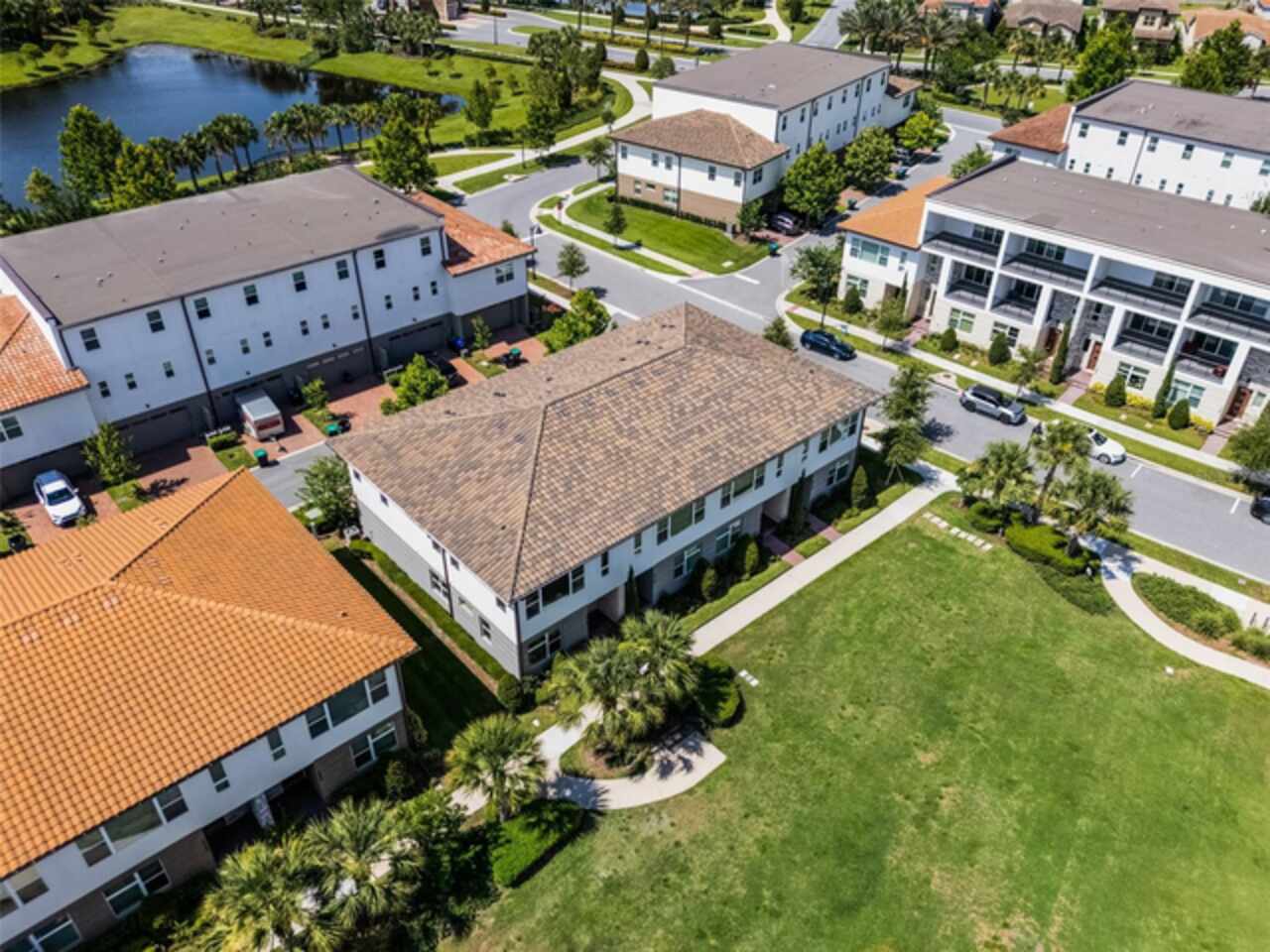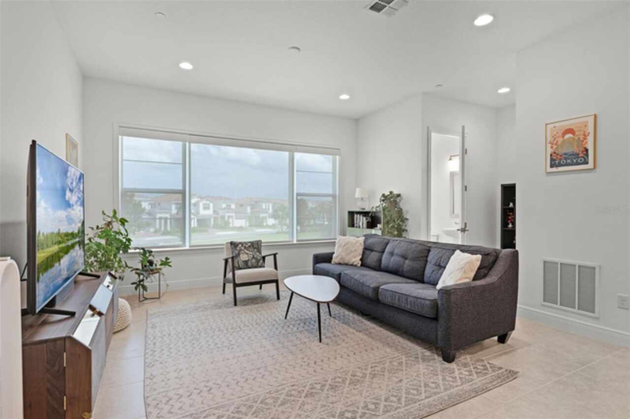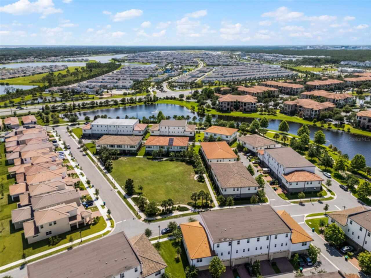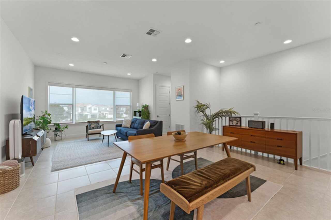 Welcome to the epitome of carefree, country club living nestled in the vibrant heart of Lake Nona. This beautifully appointed two-story townhome offers a thoughtful layout with two bedrooms, two and a half baths, and a two-car garage, delivering both comfort and style. Step inside to find a mix of ceramic tile and plush carpeting, illuminated by modern recessed lighting throughout. The entry level features a well-sized bedroom, a full bathroom, and a flexible den space ideal for a home office or creative retreat, along with a conveniently located laundry area.Upstairs, the kitchen takes center stage with sleek stainless steel appliances, a generous walk-in pantry, and an expansive breakfast bar that seamlessly flows into the great room. The open-concept design invites light through large windows, creating a bright and welcoming atmosphere perfect for entertaining or quiet evenings in. A powder room adds extra convenience, while the spacious owner’s suite provides a peaceful escape, complete with a large walk-in closet and an elegant ensuite bath featuring dual vanities, solid-surface countertops, and an oversized walk-in shower. Set within the guard-gated community of Eagle Creek, this residence offers access to exceptional amenities that cater to both relaxation and recreation. From a Championship Golf Course and clubhouse to a resort-style pool, fitness center, tennis and basketball courts, and more, every day feels like a vacation. Families will love the covered playground and multi-purpose field, while the community’s location makes commuting and exploring a breeze. Just moments from Medical City, top hospitals, the USTA National Campus, and entertainment hubs like the Wave Hotel and Boxi Park, everything you need is close at hand. Proximity to SR 417, SR 528, and Orlando International Airport keeps the rest of Central Florida, including beautiful beaches, easily accessible. With top-rated schools, upscale shopping, and dining options nearby, this home is perfectly suited for professionals and families alike. Best of all, the HOA handles all exterior maintenance, including roof care, landscaping, pest control, and insurance. This is more than just a home—it’s a lifestyle waiting to be claimed.