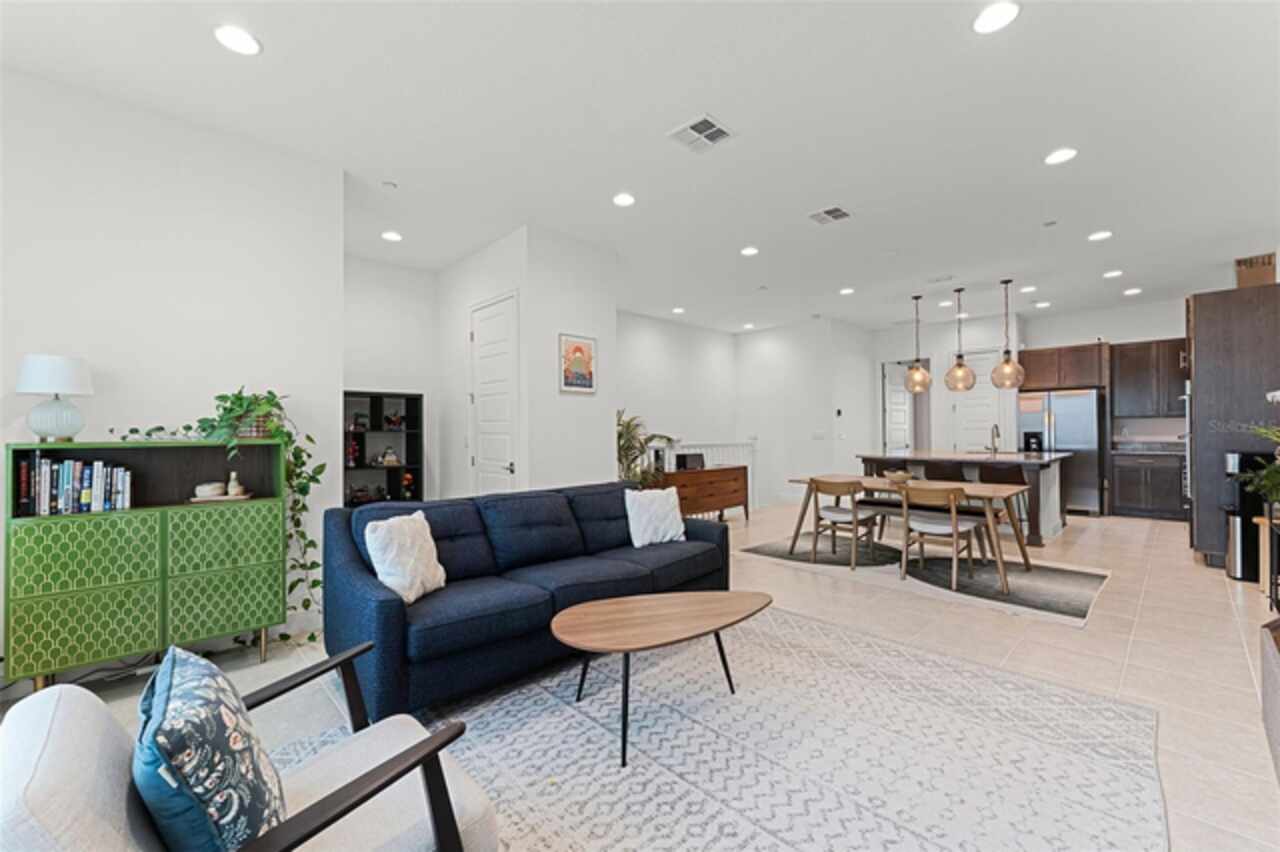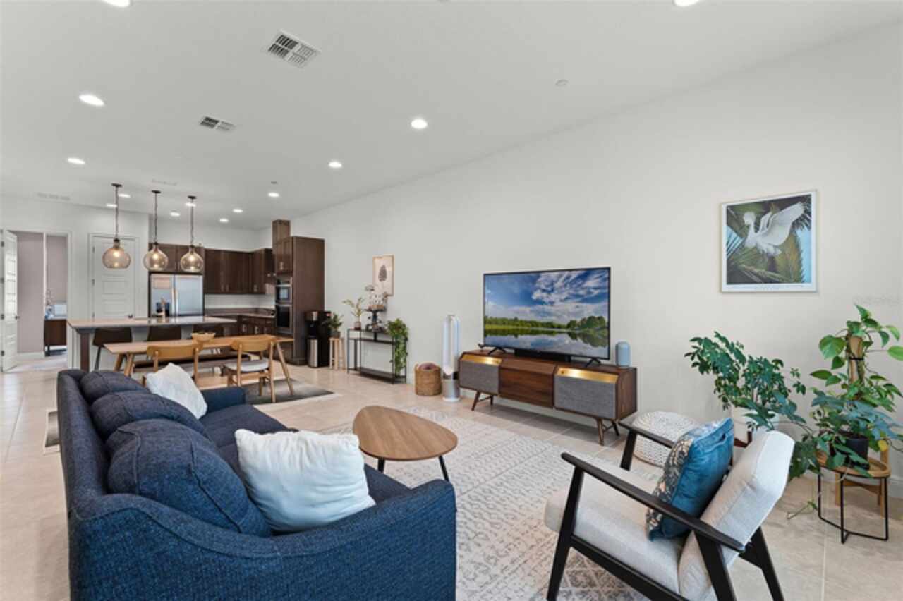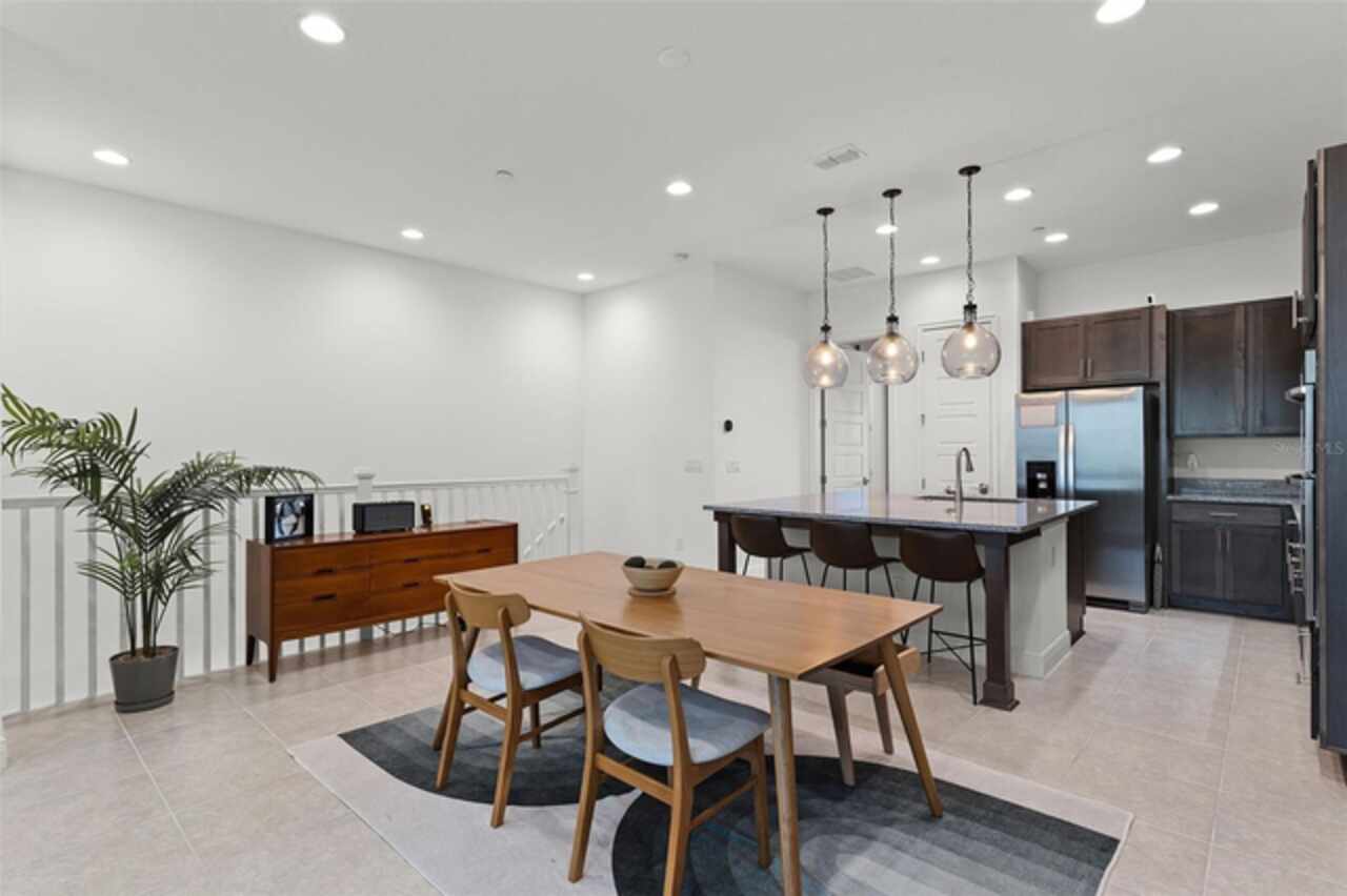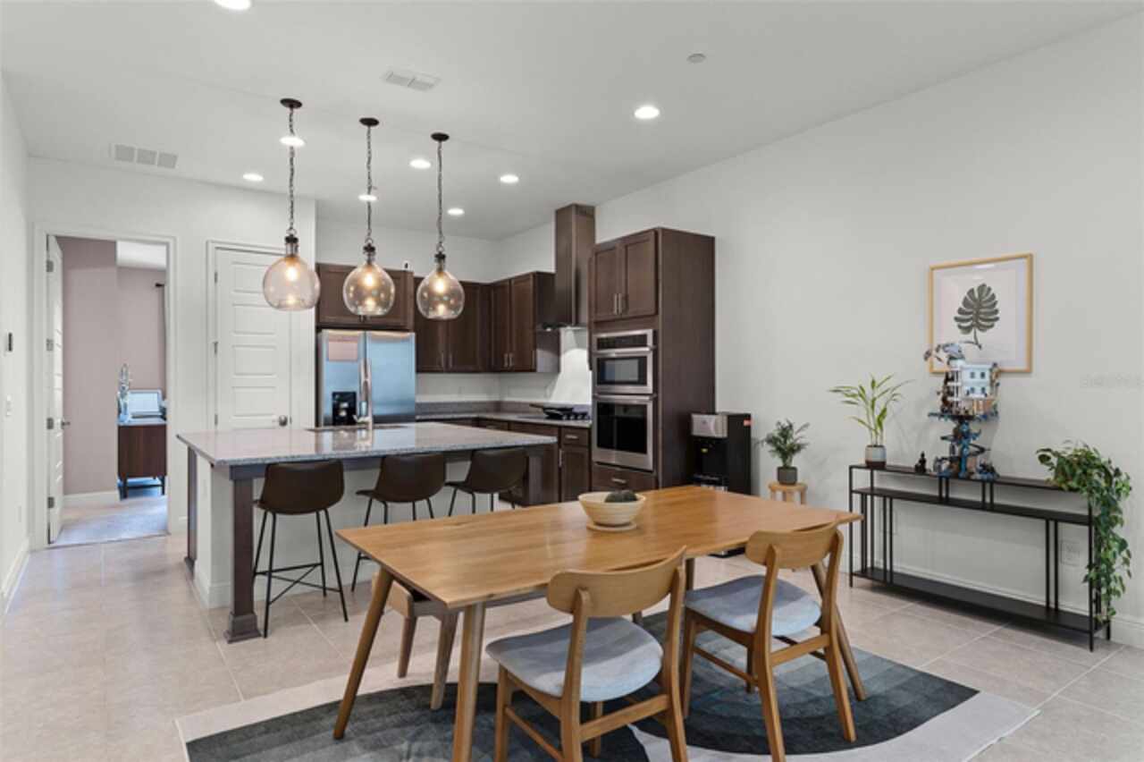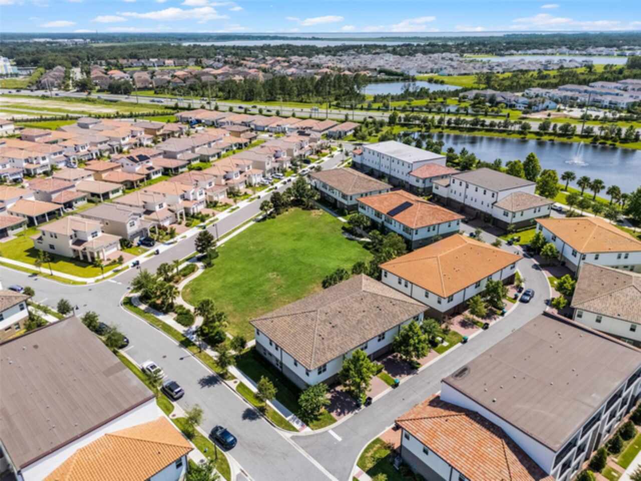 Welcome to the epitome of carefree, country club living nestled in the vibrant heart of Lake Nona. This beautifully appointed two-story townhome offers a thoughtful layout with two bedrooms, two and a half baths, and a two-car garage, delivering both comfort and style. Step inside to find a mix of ceramic tile and plush carpeting, illuminated by modern recessed lighting throughout. The entry level features a well-sized bedroom, a full bathroom, and a flexible den space ideal for a home office or creative retreat, along with a conveniently located laundry area.Upstairs, the kitchen takes center stage with sleek stainless steel appliances, a generous walk-in pantry, and an expansive breakfast bar that seamlessly flows into the great room. The open-concept design invites light through large windows, creating a bright and welcoming atmosphere perfect for entertaining or quiet evenings in. A powder room adds extra convenience, while the spacious owner’s suite provides a peaceful escape, complete with a large walk-in closet and an elegant ensuite bath featuring dual vanities, solid-surface countertops, and an oversized walk-in shower. Set within the guard-gated community of Eagle Creek, this residence offers access to exceptional amenities that cater to both relaxation and recreation. From a Championship Golf Course and clubhouse to a resort-style pool, fitness center, tennis and basketball courts, and more, every day feels like a vacation. Families will love the covered playground and multi-purpose field, while the community’s location makes commuting and exploring a breeze. Just moments from Medical City, top hospitals, the USTA National Campus, and entertainment hubs like the Wave Hotel and Boxi Park, everything you need is close at hand. Proximity to SR 417, SR 528, and Orlando International Airport keeps the rest of Central Florida, including beautiful beaches, easily accessible. With top-rated schools, upscale shopping, and dining options nearby, this home is perfectly suited for professionals and families alike. Best of all, the HOA handles all exterior maintenance, including roof care, landscaping, pest control, and insurance. This is more than just a home—it’s a lifestyle waiting to be claimed.