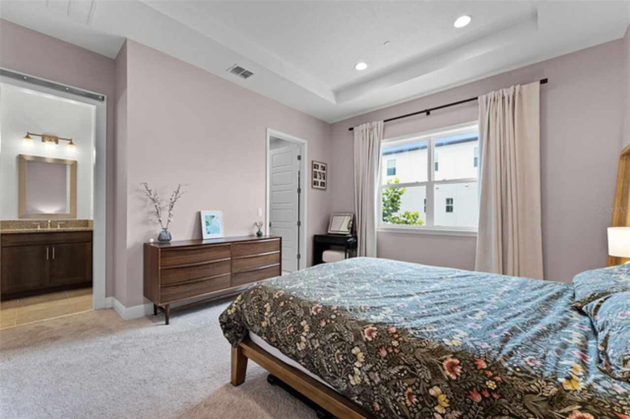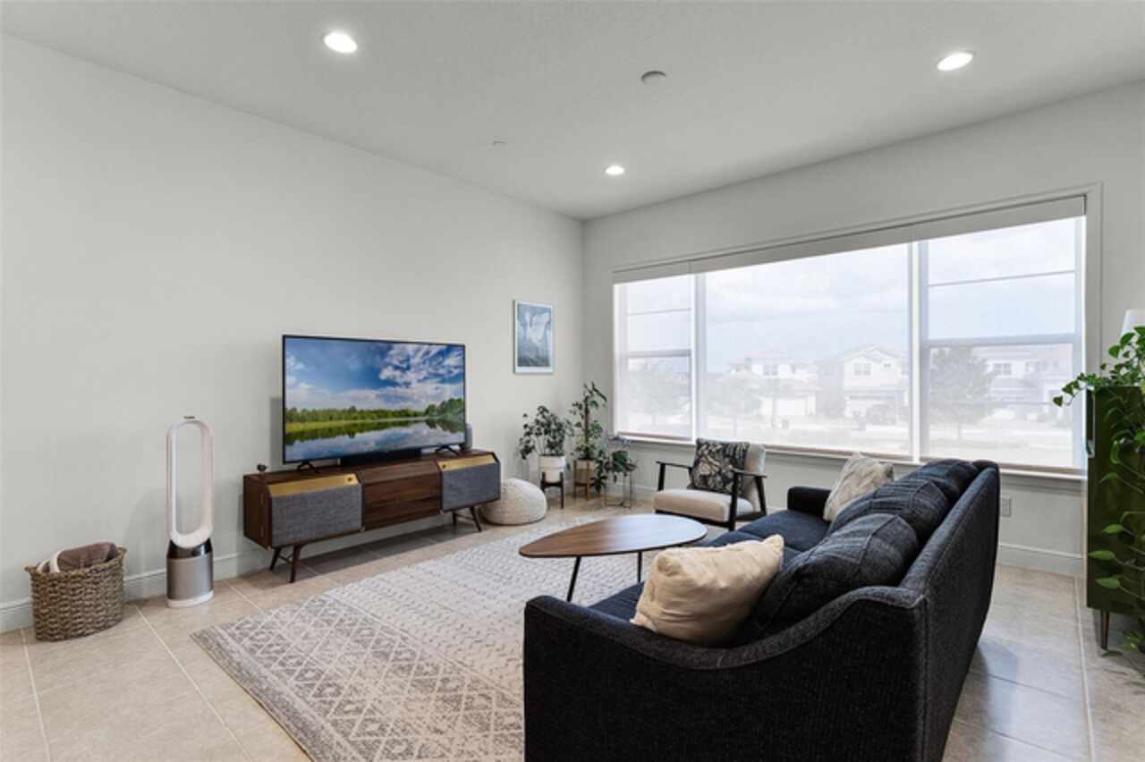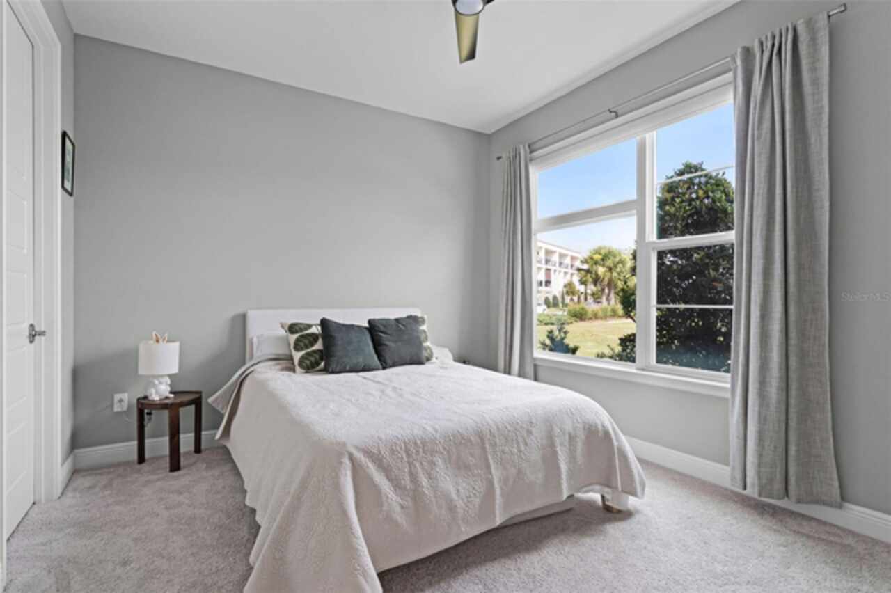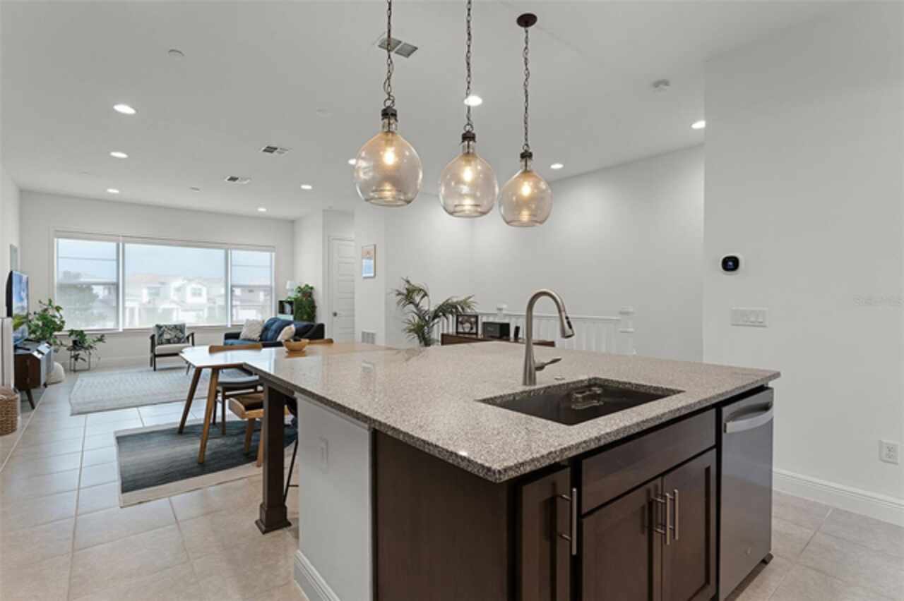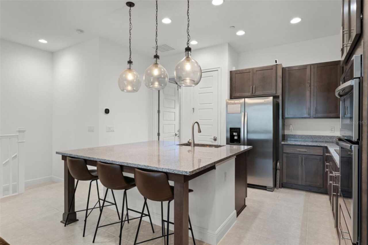 Welcome to the epitome of carefree, country club living nestled in the vibrant heart of Lake Nona. This beautifully appointed two-story townhome offers a thoughtful layout with two bedrooms, two and a half baths, and a two-car garage, delivering both comfort and style. Step inside to find a mix of ceramic tile and plush carpeting, illuminated by modern recessed lighting throughout. The entry level features a well-sized bedroom, a full bathroom, and a flexible den space ideal for a home office or creative retreat, along with a conveniently located laundry area.Upstairs, the kitchen takes center stage with sleek stainless steel appliances, a generous walk-in pantry, and an expansive breakfast bar that seamlessly flows into the great room. The open-concept design invites light through large windows, creating a bright and welcoming atmosphere perfect for entertaining or quiet evenings in. A powder room adds extra convenience, while the spacious owner’s suite provides a peaceful escape, complete with a large walk-in closet and an elegant ensuite bath featuring dual vanities, solid-surface countertops, and an oversized walk-in shower. Set within the guard-gated community of Eagle Creek, this residence offers access to exceptional amenities that cater to both relaxation and recreation. From a Championship Golf Course and clubhouse to a resort-style pool, fitness center, tennis and basketball courts, and more, every day feels like a vacation. Families will love the covered playground and multi-purpose field, while the community’s location makes commuting and exploring a breeze. Just moments from Medical City, top hospitals, the USTA National Campus, and entertainment hubs like the Wave Hotel and Boxi Park, everything you need is close at hand. Proximity to SR 417, SR 528, and Orlando International Airport keeps the rest of Central Florida, including beautiful beaches, easily accessible. With top-rated schools, upscale shopping, and dining options nearby, this home is perfectly suited for professionals and families alike. Best of all, the HOA handles all exterior maintenance, including roof care, landscaping, pest control, and insurance. This is more than just a home—it’s a lifestyle waiting to be claimed.