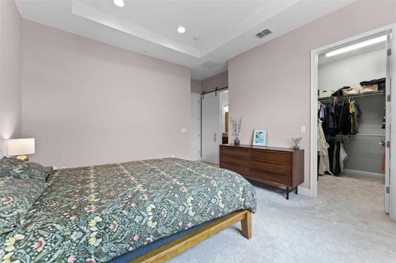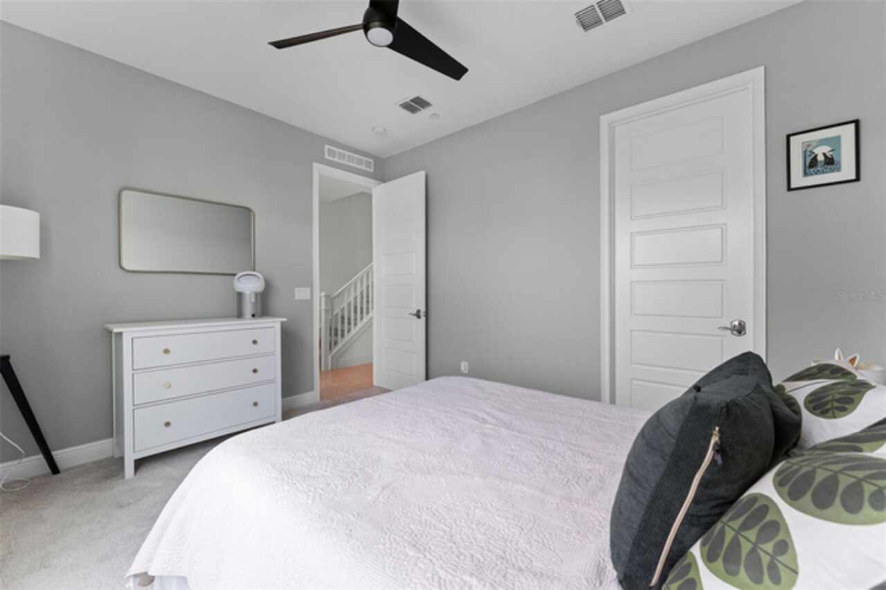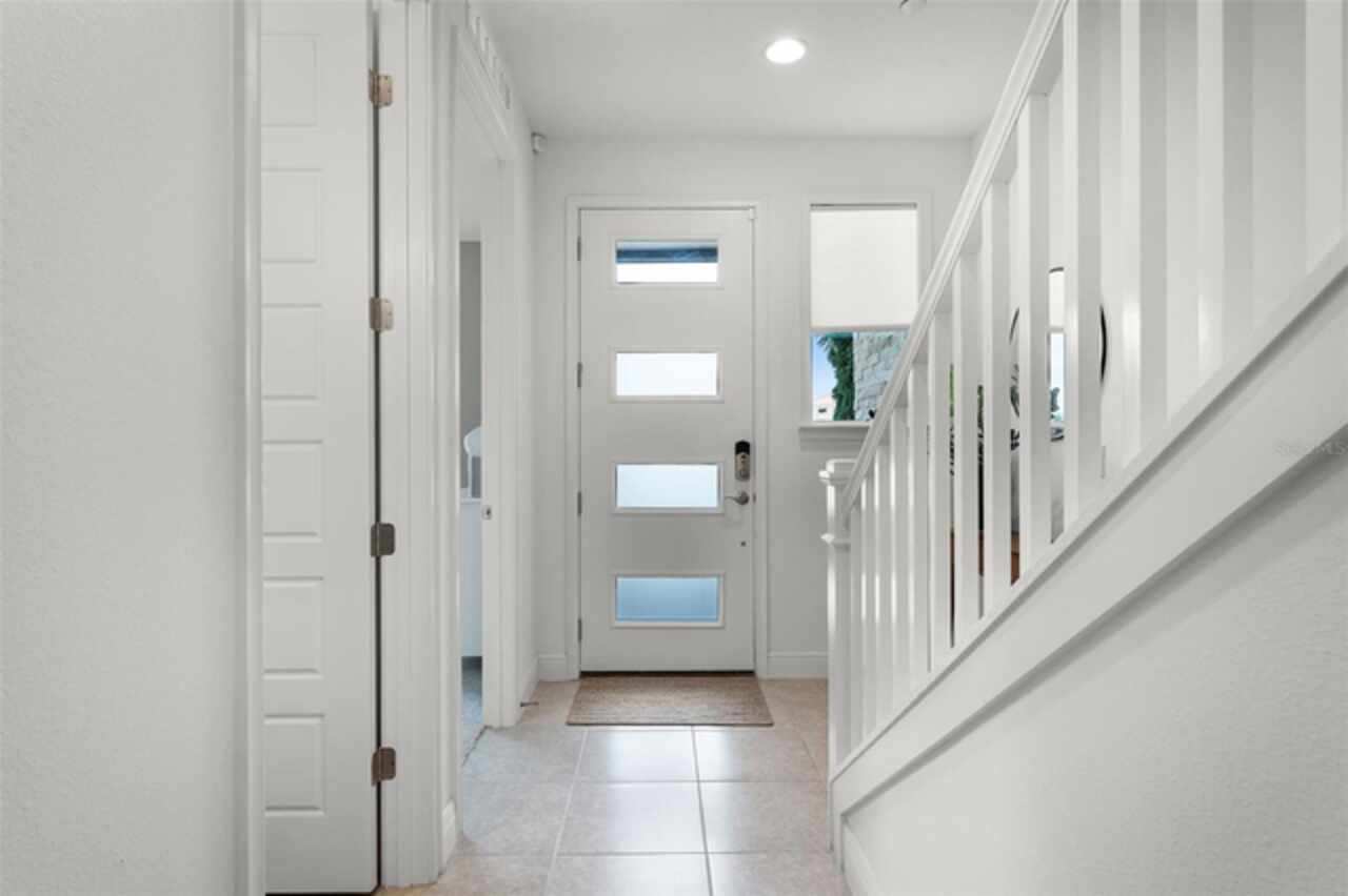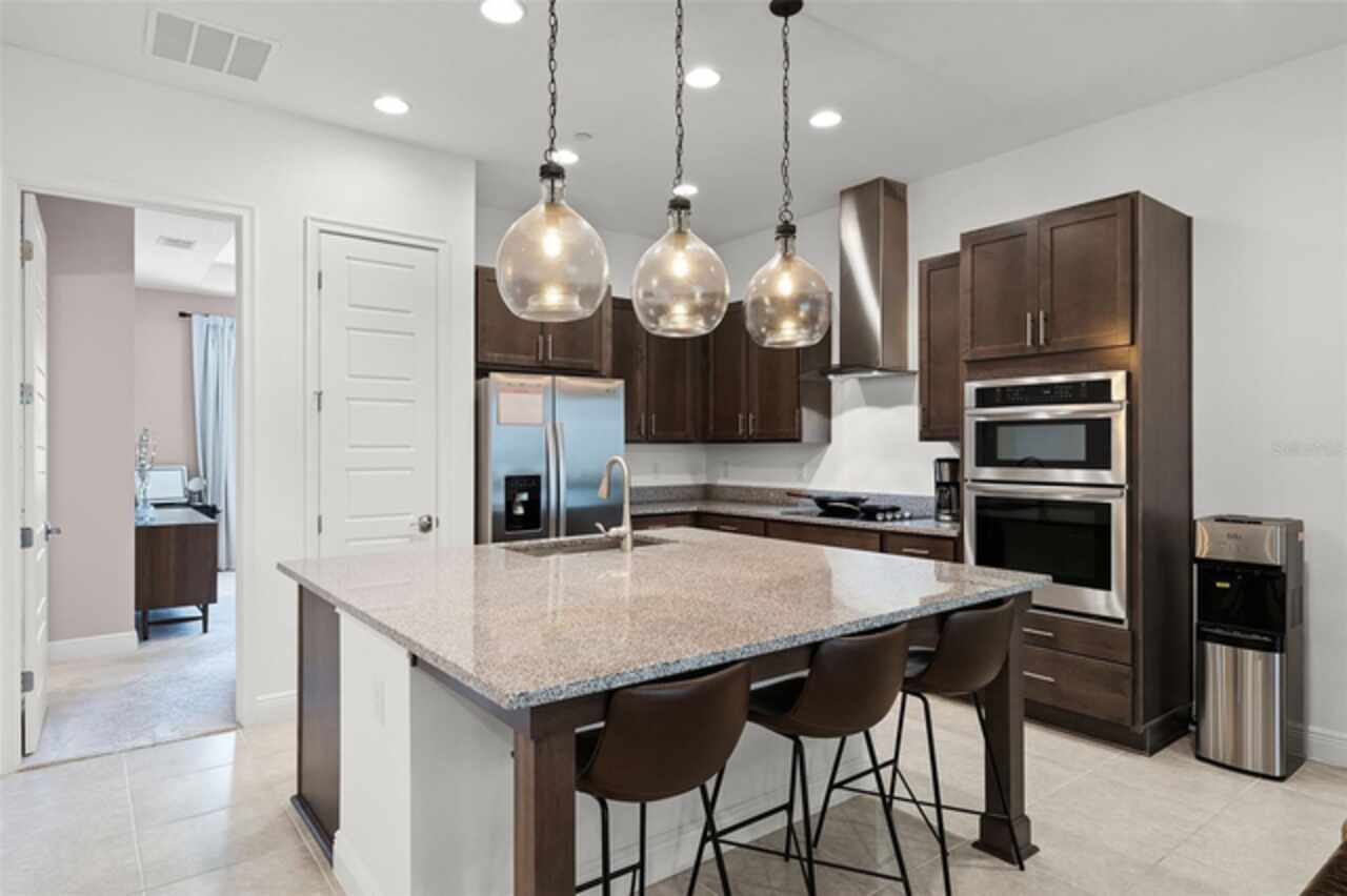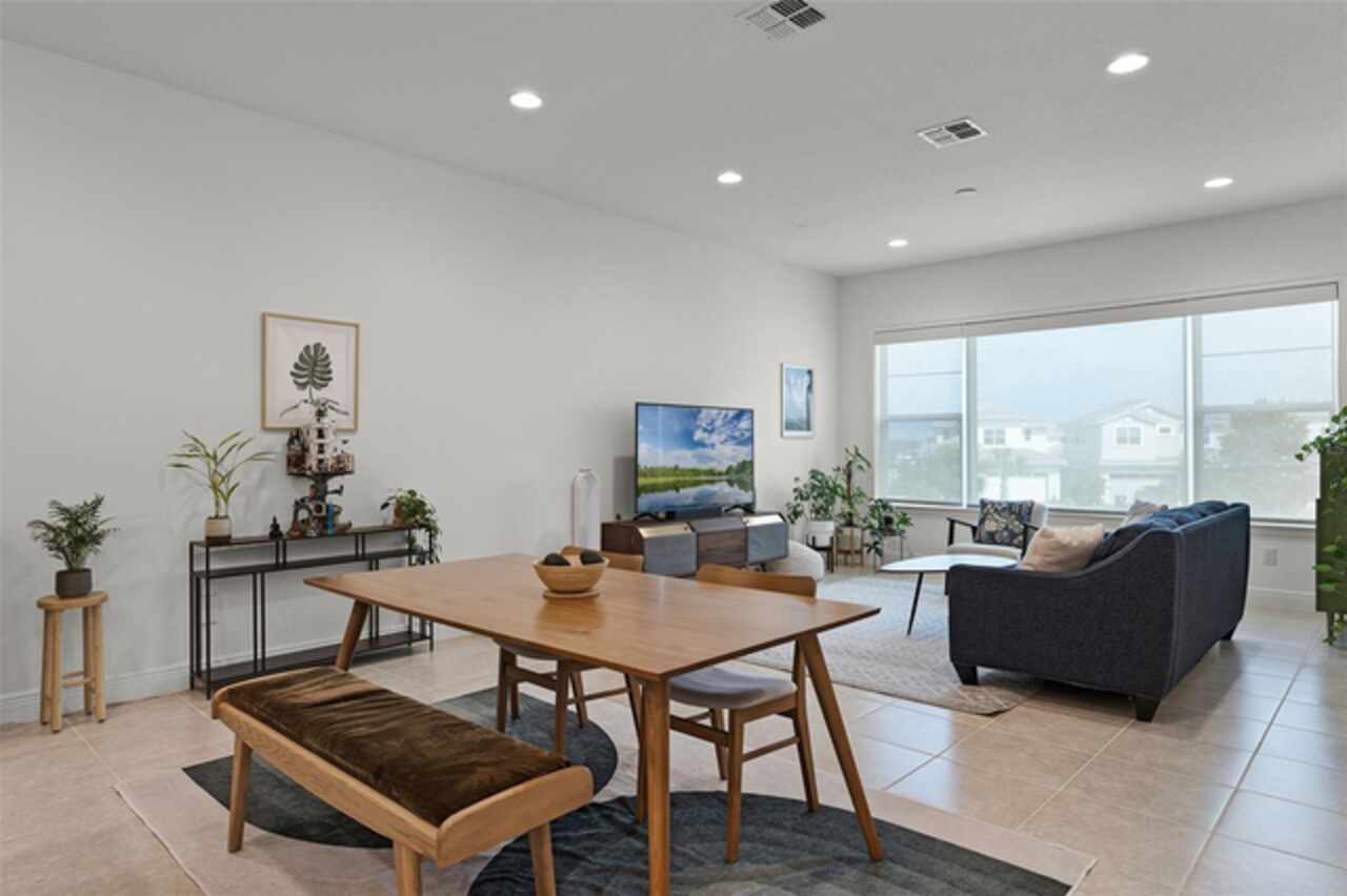 Welcome to the epitome of carefree, country club living nestled in the vibrant heart of Lake Nona. This beautifully appointed two-story townhome offers a thoughtful layout with two bedrooms, two and a half baths, and a two-car garage, delivering both comfort and style. Step inside to find a mix of ceramic tile and plush carpeting, illuminated by modern recessed lighting throughout. The entry level features a well-sized bedroom, a full bathroom, and a flexible den space ideal for a home office or creative retreat, along with a conveniently located laundry area.Upstairs, the kitchen takes center stage with sleek stainless steel appliances, a generous walk-in pantry, and an expansive breakfast bar that seamlessly flows into the great room. The open-concept design invites light through large windows, creating a bright and welcoming atmosphere perfect for entertaining or quiet evenings in. A powder room adds extra convenience, while the spacious owner’s suite provides a peaceful escape, complete with a large walk-in closet and an elegant ensuite bath featuring dual vanities, solid-surface countertops, and an oversized walk-in shower. Set within the guard-gated community of Eagle Creek, this residence offers access to exceptional amenities that cater to both relaxation and recreation. From a Championship Golf Course and clubhouse to a resort-style pool, fitness center, tennis and basketball courts, and more, every day feels like a vacation. Families will love the covered playground and multi-purpose field, while the community’s location makes commuting and exploring a breeze. Just moments from Medical City, top hospitals, the USTA National Campus, and entertainment hubs like the Wave Hotel and Boxi Park, everything you need is close at hand. Proximity to SR 417, SR 528, and Orlando International Airport keeps the rest of Central Florida, including beautiful beaches, easily accessible. With top-rated schools, upscale shopping, and dining options nearby, this home is perfectly suited for professionals and families alike. Best of all, the HOA handles all exterior maintenance, including roof care, landscaping, pest control, and insurance. This is more than just a home—it’s a lifestyle waiting to be claimed.