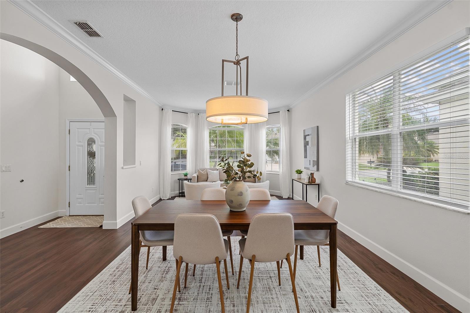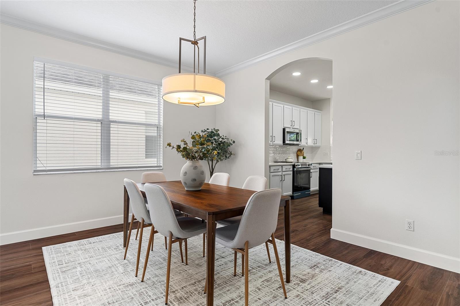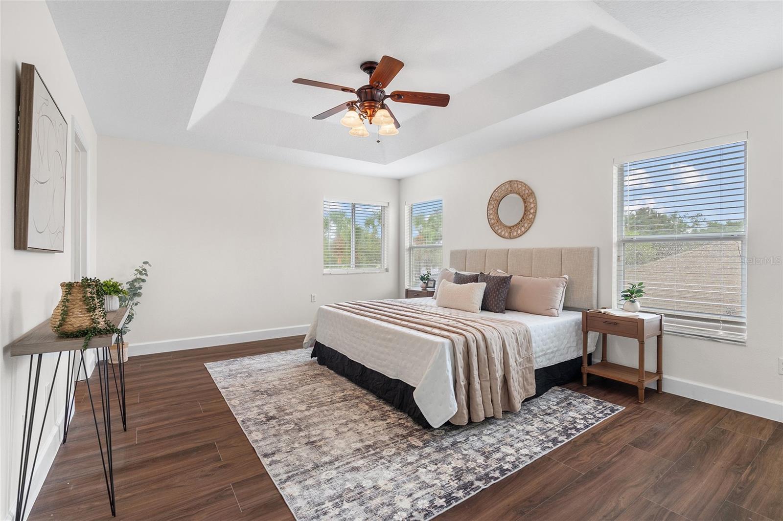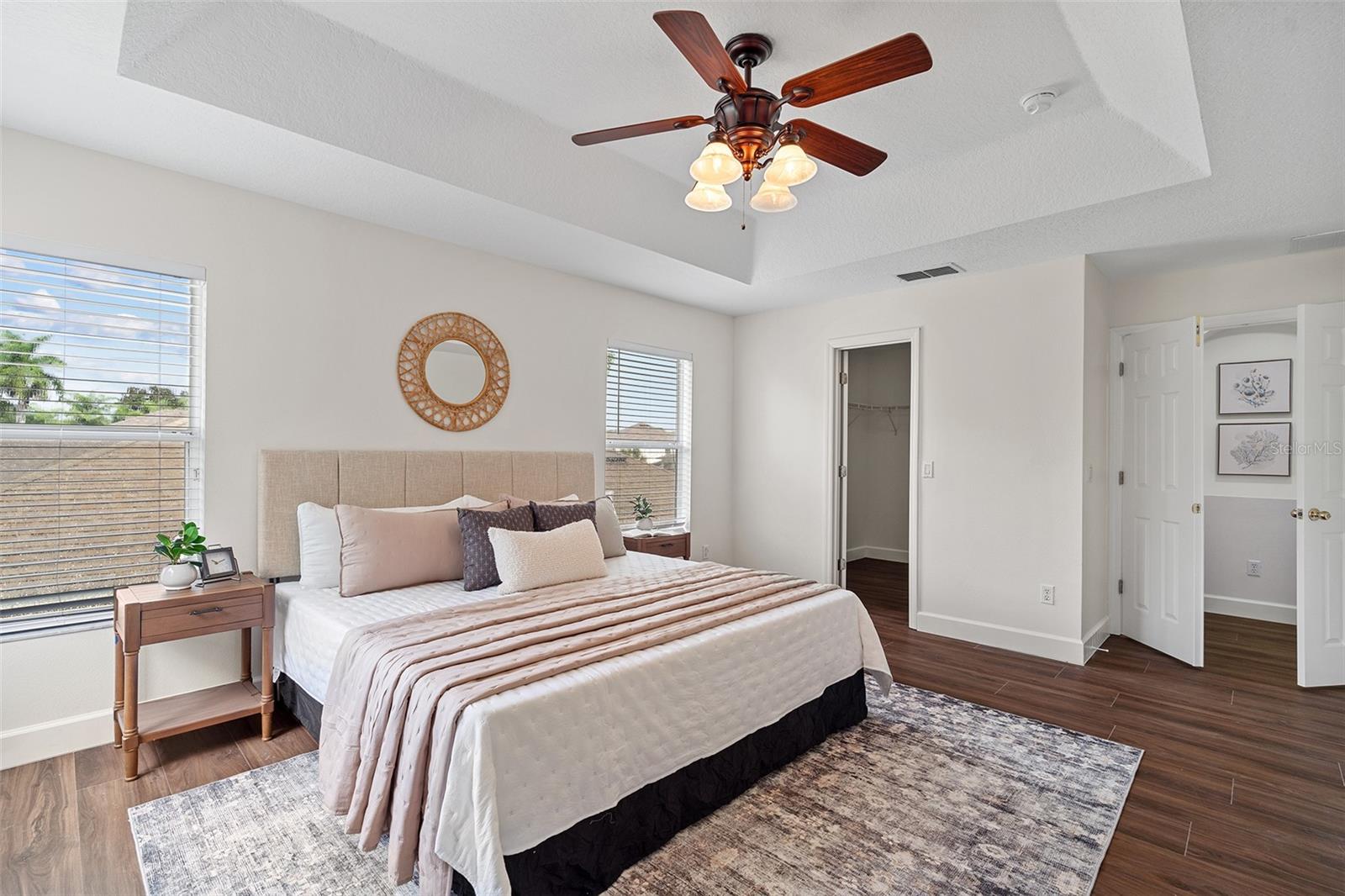 Ceiling Fans(s), Crown Molding, Eat-in Kitchen, High Ceilings, Living Room/Dining Room Combo, Split Bedroom, Stone Counters, Tray Ceiling(s), Walk-In Closet(s), Window Treatments