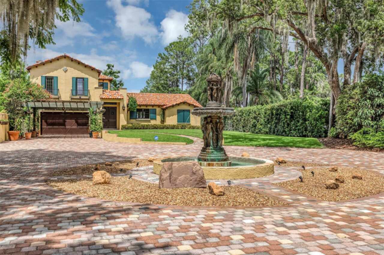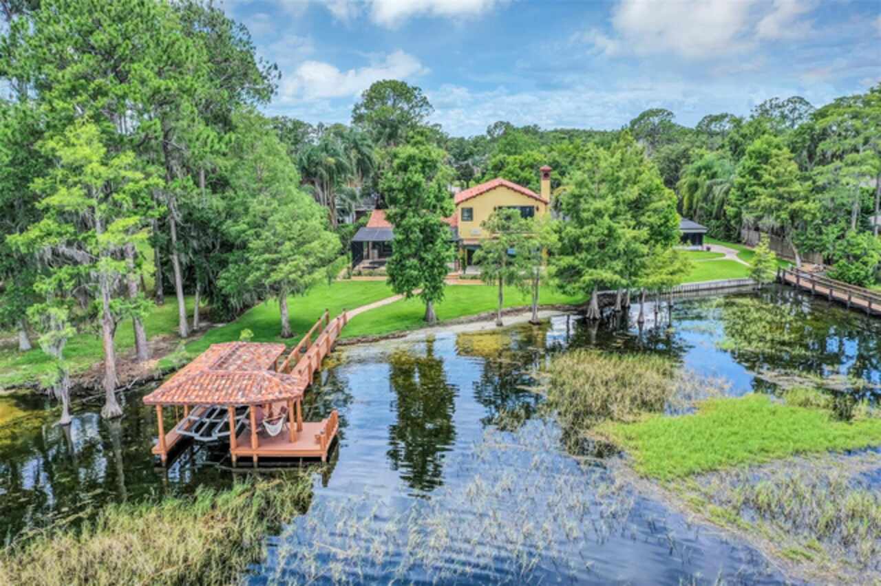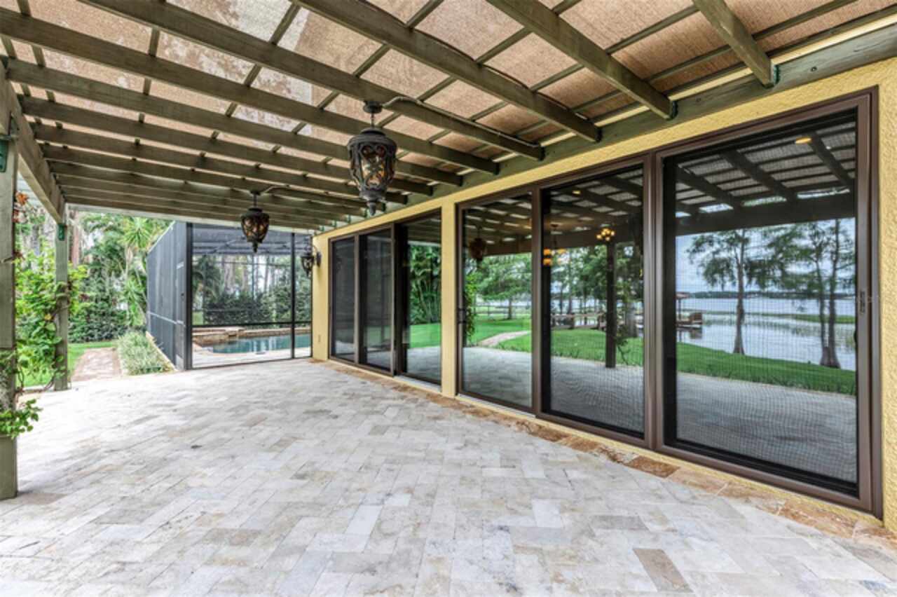 Discover this exquisite lakefront property nestled on over 1.9 acres with more than 100 feet of water frontage on LAKE TIBET and part of the Butler Chain of Lakes. This home offers breathtaking views and absolutely stunning sunsets. As you drive onto the winding paver circular driveway with lovely fountain and beautiful landscaping, you will notice the terracotta tile roof and the undeniable architectural style of this home. The 2 car garage has EV charging station. Once you enter the home you will be impressed with the whole house automation system, motorized window treatments, travertine floors, gas fireplace and crown moulding. At the heart of the home, the chef’s kitchen featuring elegant custom cabinetry, boasts of a large island, granite counter , 2 Sub Zero appliances, reverse osmosis system, pot filler, Wolf steamer, warming drawer and wine fridge. Downstairs are 2 additional bedrooms with en-suites each with special features. Upstairs, You will admire the solid hardwood flooring and attention to details. Primary suite overlooks the breath taking view of Lake Tibet and features en-suite adorned with stone flooring with stand alone tub and separate shower. The primary suite has a large walk-in closet with a custom built closet system w/safe and another separate closet. Two additional bedrooms upstairs share a full bath. A sparkling pool w/spa within the screened patio offers a tropical escape with a summer kitchen featuring, large grill, hotplate, warming tray, pot filler and TV and misting station. The secondary covered patio outside the screened enclosure is perfect for an additional quiet oasis to enjoy your stunning views. The newly re-built dock and covered boat house w/lift (2023) with composite decking comes complete with electric & water is perfect for the enjoyable days and nights on the water. Other features include updated septic system(2024), new pool pump (2025), H2O Water Softener system, No Home Owner Association. Seller is leaving all electronics within the home. Conveniently located minutes from “Restaurant Row”, Disneys Springs, Bay Hill and zoned for “Top Rated” Schools. Schedule private tour of this remarkable home today.