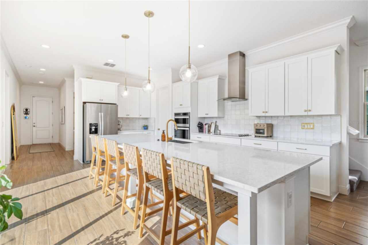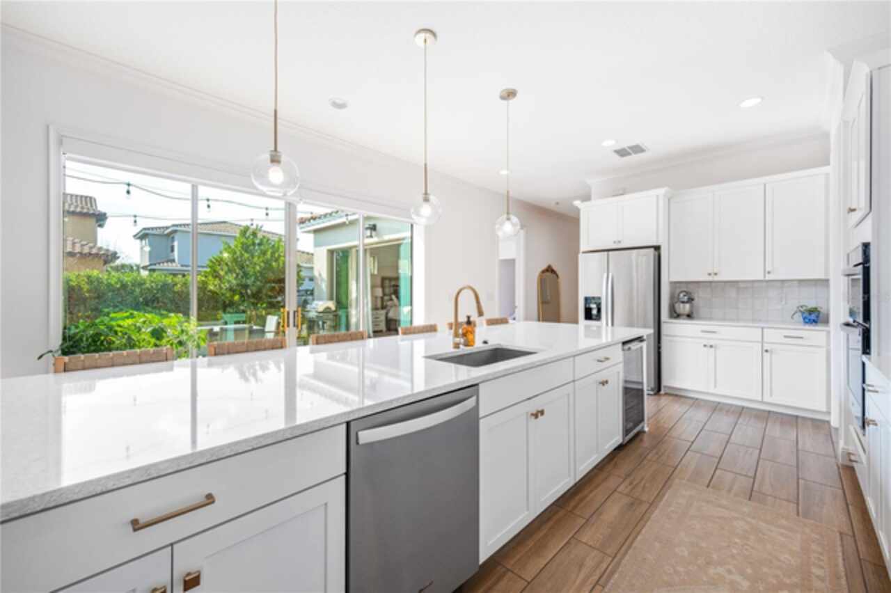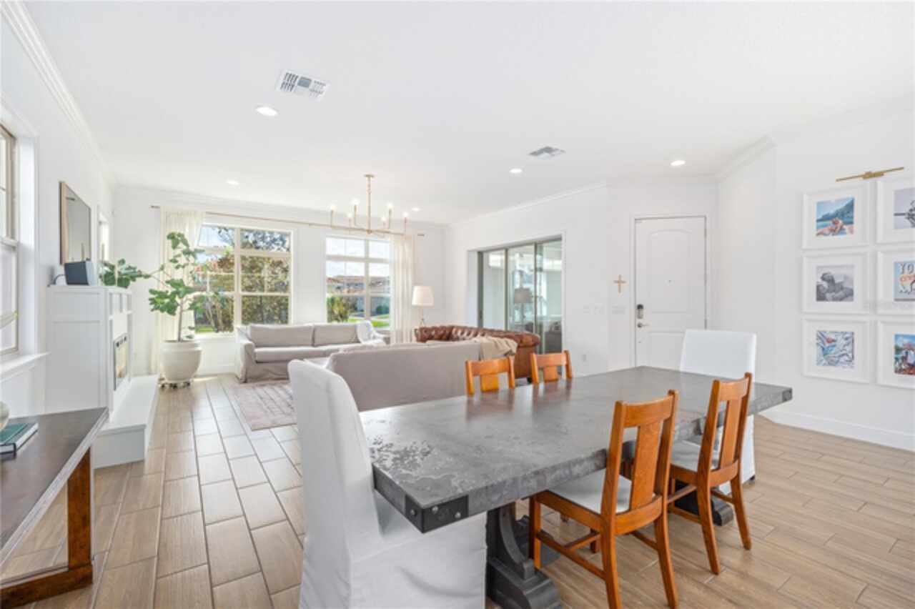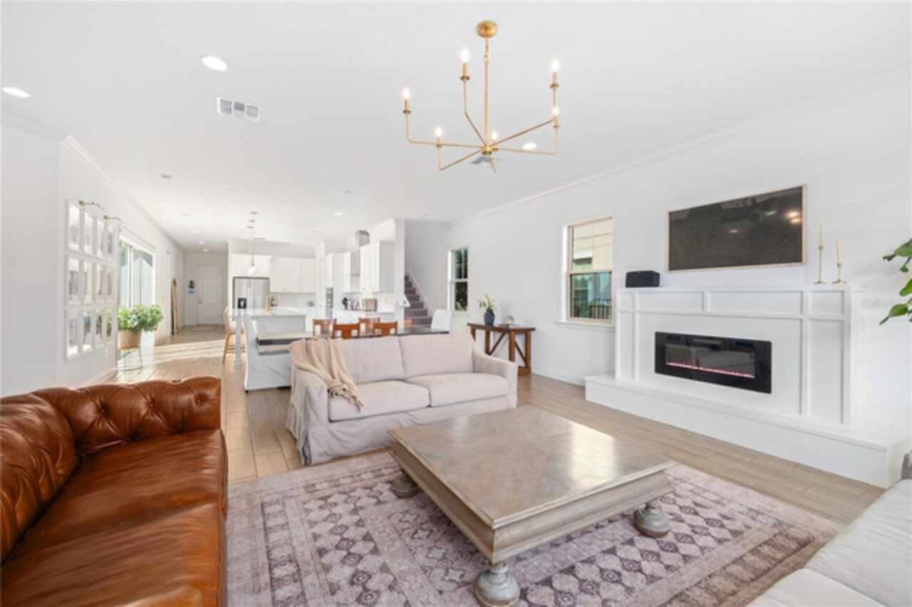 MOTIVATED SELLERS! Nestled in the highly sought-after golf cart community of Eagle Creek, this stunning corner-lot home offers the perfect blend of luxury and convenience. Boasting four bedrooms and three and a half bathrooms, this beautifully designed residence features a breathtaking living room filled with natural light, elegant fixtures, and a sleek electric fireplace. The heart of the home is a gorgeous, oversized kitchen with a spacious island and exquisite details, making it perfect for cooking and gathering. Stacking sliding doors seamlessly open to a private courtyard, creating the ultimate indoor-outdoor living experience for entertaining. The first floor also features a luxurious primary suite with soaring ceilings, his and her walk-in closets, and a spa-like ensuite with an oversized shower and dual vanities. A large indoor laundry room adds to the home’s functionality and convenience. Upstairs, a huge loft awaits, complete with a projector and screen, along with three additional bedrooms and two full bathrooms. Located just two streets from the community pool and park, residents also enjoy access to tennis courts and basketball courts. Zoned for top-rated schools—Eagle Creek Elementary, Luminary Middle, and Lake Nona High—this home is also just a golf cart ride away from popular dining spots like Don Julio’s, The Curious Cork, and CF’s Coffee. With a two-car garage and every convenience at your doorstep, this home truly has it all!
