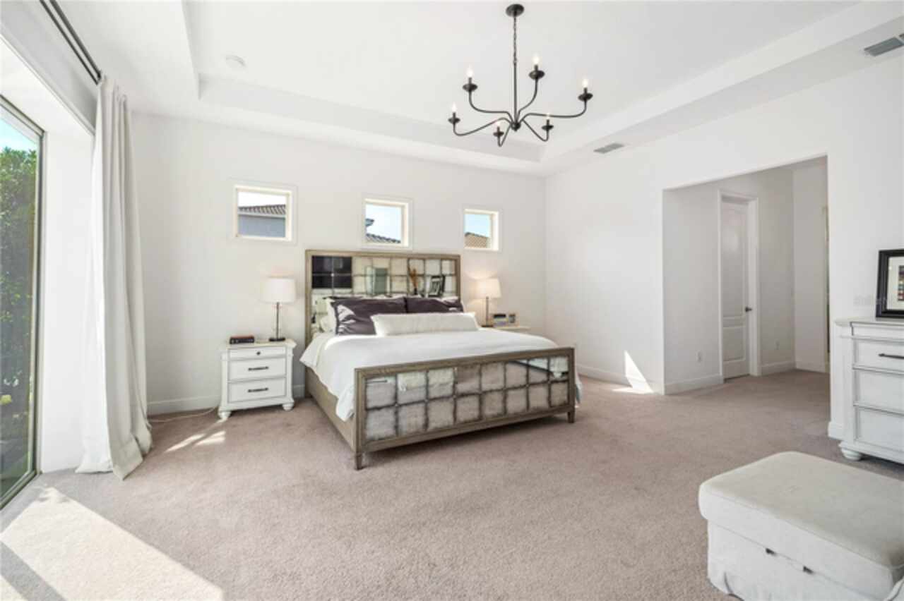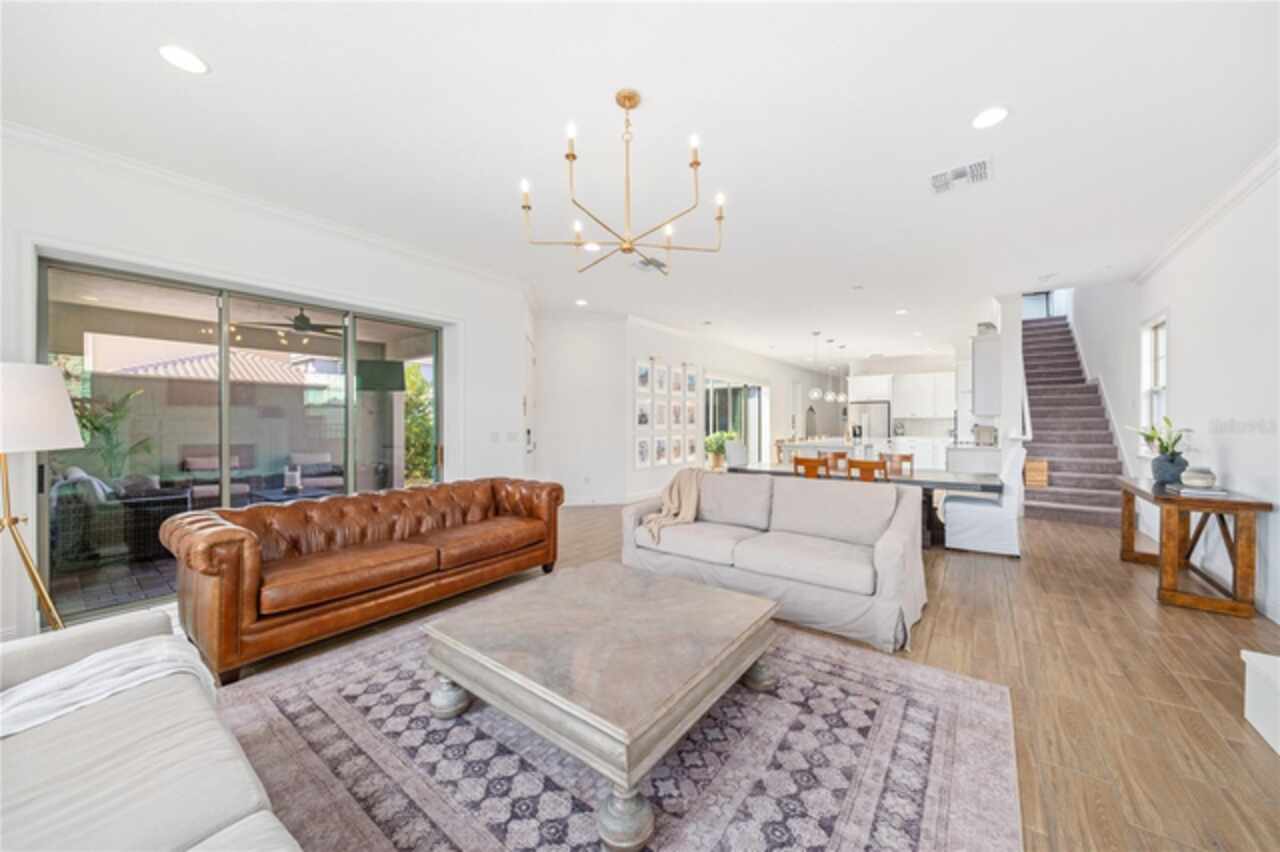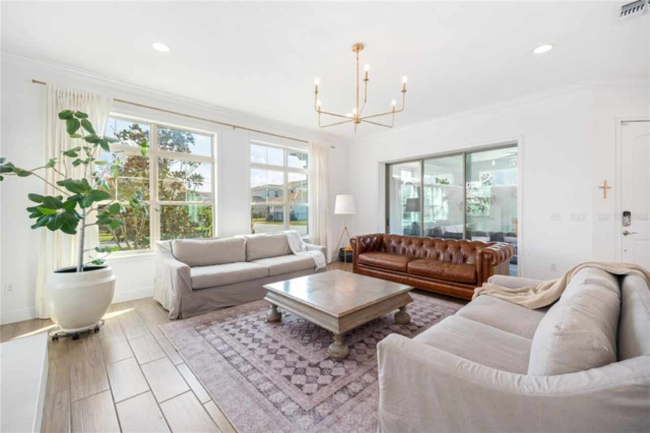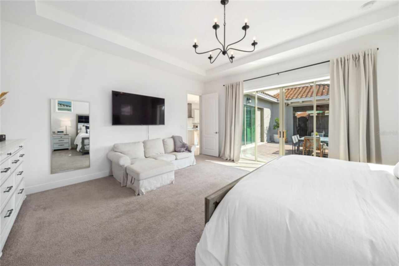 MOTIVATED SELLERS! Nestled in the highly sought-after golf cart community of Eagle Creek, this stunning corner-lot home offers the perfect blend of luxury and convenience. Boasting four bedrooms and three and a half bathrooms, this beautifully designed residence features a breathtaking living room filled with natural light, elegant fixtures, and a sleek electric fireplace. The heart of the home is a gorgeous, oversized kitchen with a spacious island and exquisite details, making it perfect for cooking and gathering. Stacking sliding doors seamlessly open to a private courtyard, creating the ultimate indoor-outdoor living experience for entertaining. The first floor also features a luxurious primary suite with soaring ceilings, his and her walk-in closets, and a spa-like ensuite with an oversized shower and dual vanities. A large indoor laundry room adds to the home’s functionality and convenience. Upstairs, a huge loft awaits, complete with a projector and screen, along with three additional bedrooms and two full bathrooms. Located just two streets from the community pool and park, residents also enjoy access to tennis courts and basketball courts. Zoned for top-rated schools—Eagle Creek Elementary, Luminary Middle, and Lake Nona High—this home is also just a golf cart ride away from popular dining spots like Don Julio’s, The Curious Cork, and CF’s Coffee. With a two-car garage and every convenience at your doorstep, this home truly has it all!
