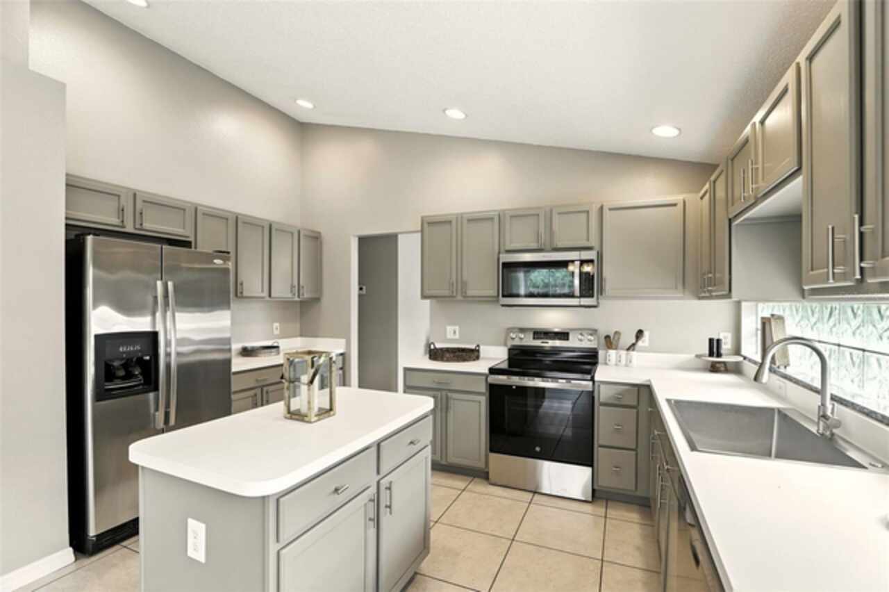 Welcome to this recently upgraded 4-bedroom, 2-bathroom home in desirable East Orlando. Meticulously maintained, the home features a brand-new roof (Sept 2025), updated flooring, fresh interior paint, and a fully renovated kitchen with updated cabinets and stainless steel appliances. The open layout flows seamlessly from the spacious family room to the kitchen, making it perfect for entertaining. Beautiful LVP flooring runs through the living, dining, bedrooms, and cozy office/den, while the kitchen and family room feature large ceramic tile and bathrooms upgraded with marble tile. The oversized primary suite connects directly to the office/den through sliding doors and includes a huge bathroom with a large tub, separate shower, dual sinks, and a spacious vanity. Both bathrooms have a fresh updated look. Step outside to a large backyard with plenty of room to relax or entertain. Located in one of the area’s most desirable neighborhoods, with A+ rated Orange County schools . just minutes from UCF, SR-417, Waterford Lakes, and top shopping and restaurant destinations. LOW HOA, This home is Move-in-Ready! Contact us today for a private showing