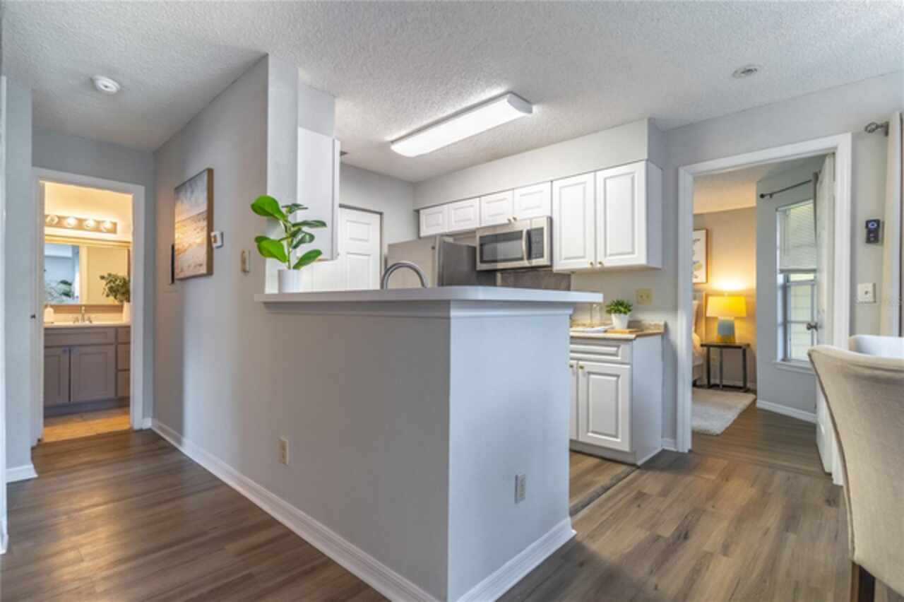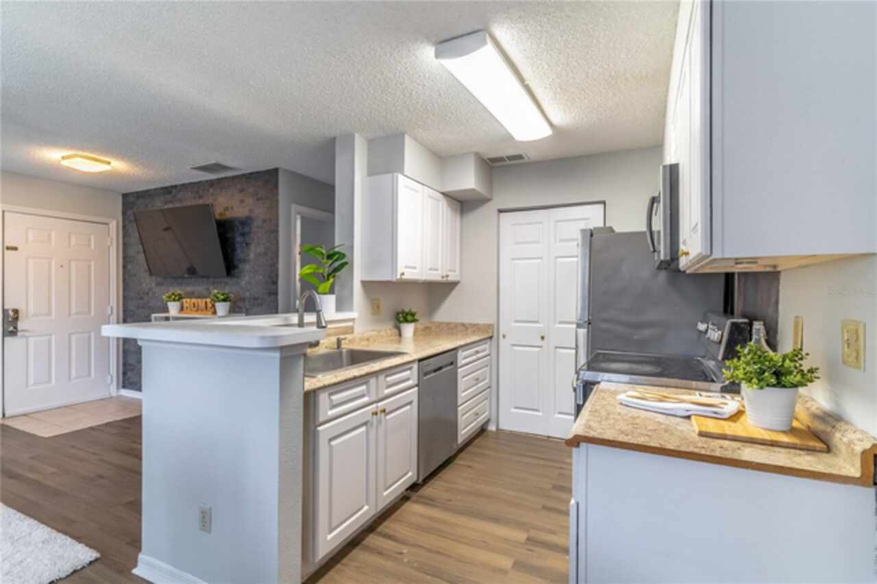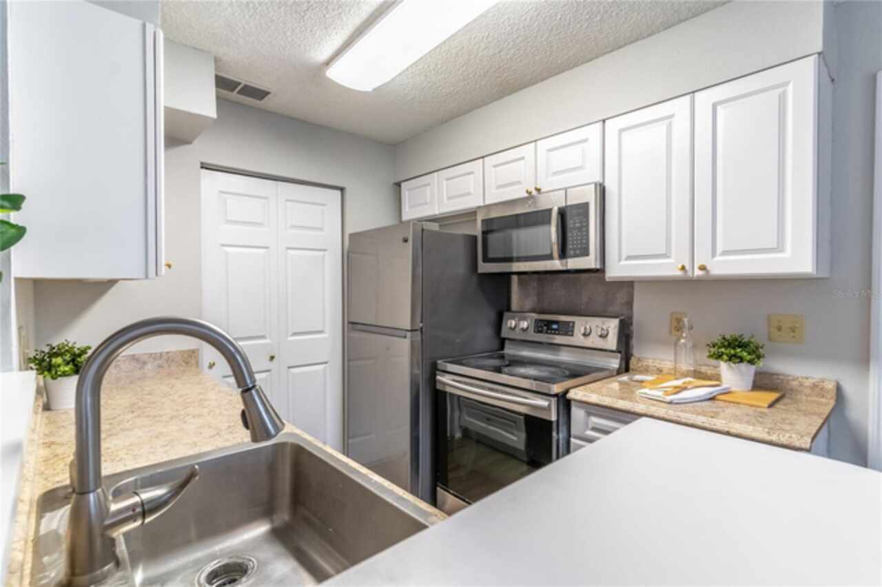 Under contract-accepting backup offers. Welcome to this charming GROUND FLOOR 2-bedroom, 2-bathroom condo located in the desirable GOLF COMMUNITY of Metrowest. Located just minutes from shopping and restaurants, this home offers CONVENIENT ACCESS to Universal Studios, Islands of Adventure, and Valencia College East—all less than 5 miles away. COMMUNITY FEATURES - clubhouse with 2 pools and spas, fitness center, lighted tennis courts, racquetball, gazebo with summer kitchen/grills, carwash area. Step inside to an inviting OPEN CONCEPT KITCHEN AND FAMILY ROOM, filled with natural light. The kitchen features sleek stainless steel appliances, providing both style and functionality. Enjoy the ease of a FULL SIZE WASHER AND DRYER included with the unit. The spacious primary suite boasts a PRIVATE ATTACHED BATHROOM and a LARGE WALK IN CLOSET. The generously sized guest bedroom is conveniently located on the opposite side of the condo, complete with its own full bathroom, enhancing the SPLIT BEDROOM FLOOR PLAN for added privacy. Relax and unwind on the SCREENED IN PATIO, which includes an ADDITONAL STORAGE CLOSET—perfect for keeping your space organized. Overlooking the community POOL and HOT TUB, this condo offers resort-style living at its finest. Whether you're seeking a full-time residence or a long term investment property this Metrowest condo provides the ideal blend of comfort, convenience, and lifestyle.