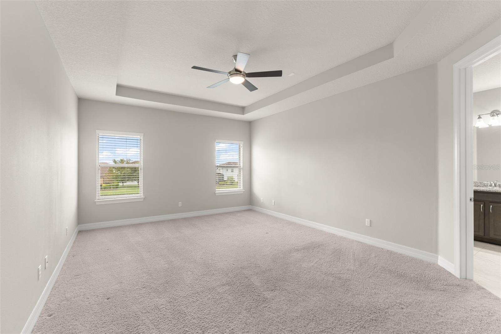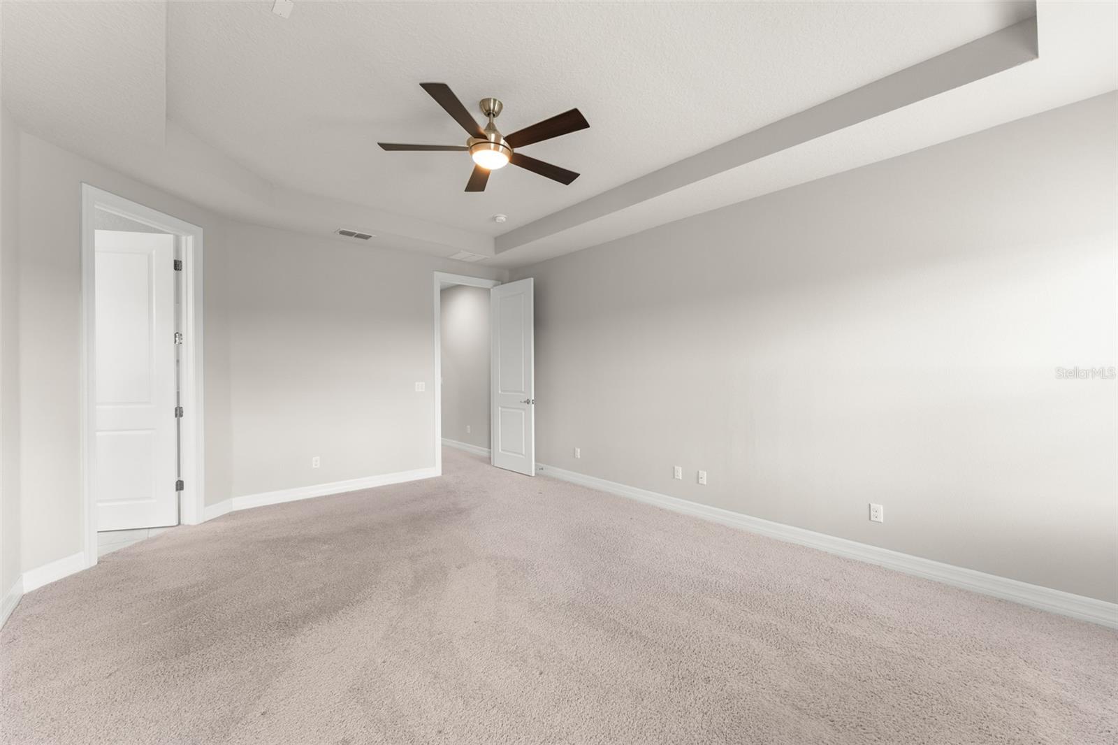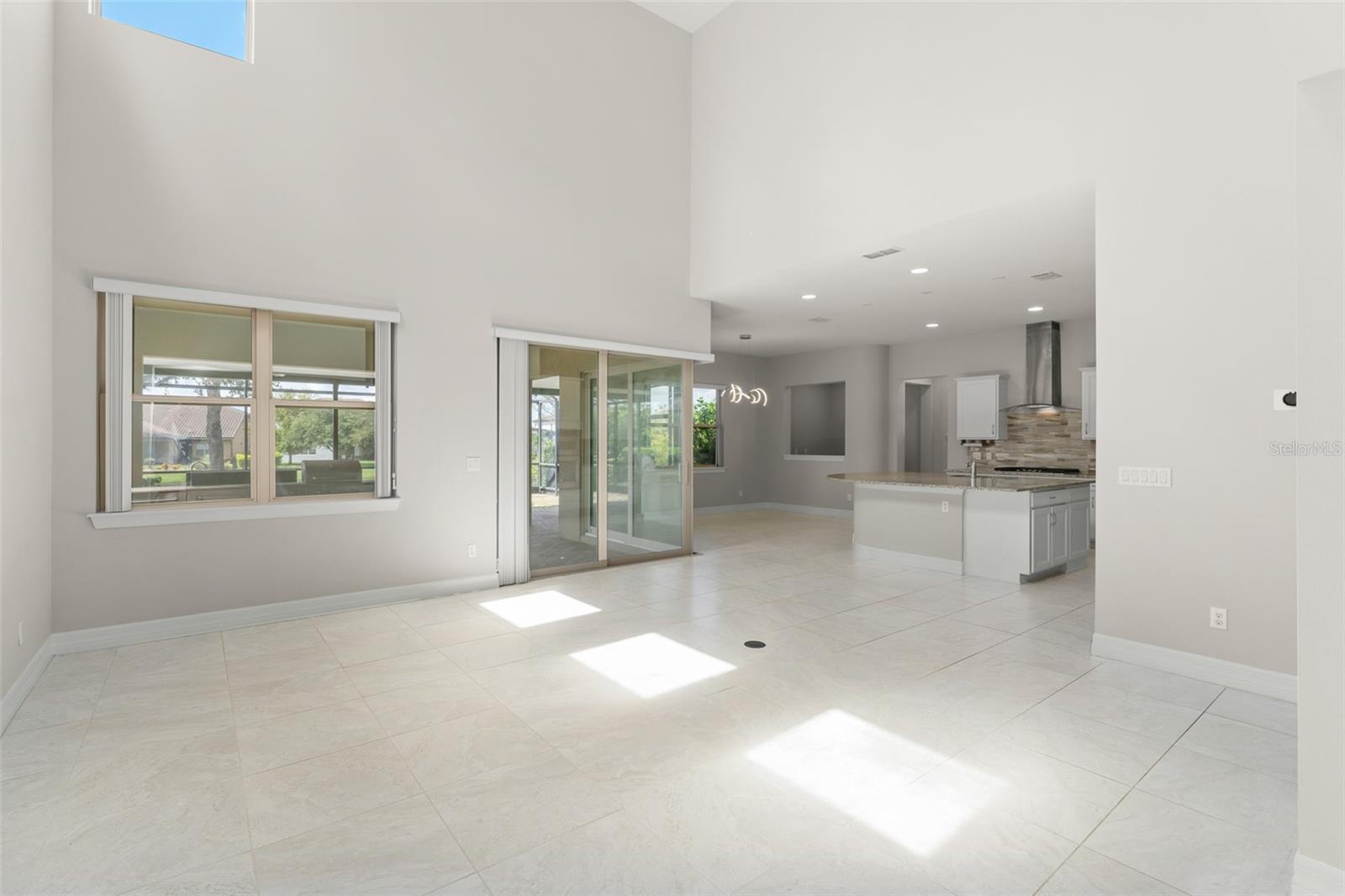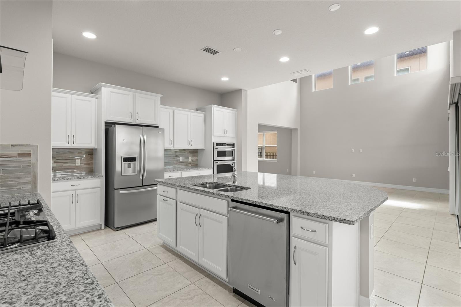 Coffered Ceiling(s), Eat-in Kitchen, High Ceilings, Kitchen/Family Room Combo, Open Floorplan, Split Bedroom, Stone Counters, Thermostat, Walk-In Closet(s)