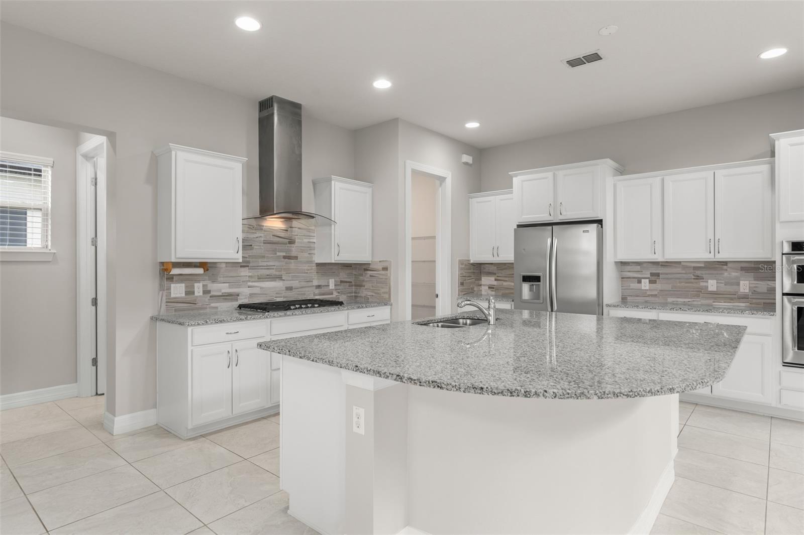 Enchanting waterfront home inside the gated enclave of Ruby Lake, with Dr. Phillips’ most stylish new address: O-Town West. This gently lived-in Pulte executive home sits on a private pond and features 4 bedrooms including one downstairs and three upstairs, including the primary, plus a bonus room. Main floor features dining and family room with double height ceilings. The kitchen with large island showcases everyday gatherings with style and function. Appliances include built-in natural gas cooktop and contemporary-style hood, stainless fridge and oven plus microwave. Screened paver patio with outdoor kitchen BBQ grill area. Tandem 3-car garage. Gated community with landscape maintenance included plus community pool, clubhouse, and fitness center. There’s even a community pier on Ruby Lake for nightly fireworks viewing. Located within the shadows of Walt Disney World® and close to Universal Orlando and SeaWorld, O-Town West is a 350-acre master planned community and offers an enviable location in the heart of Central Florida’s famed attractions. And now with a newly opened on-ramp to I-4 and new shopping and restaurants opening almost monthly, this hot new growing area is the destination of choice for those seeking luxury, location, and lifestyle.