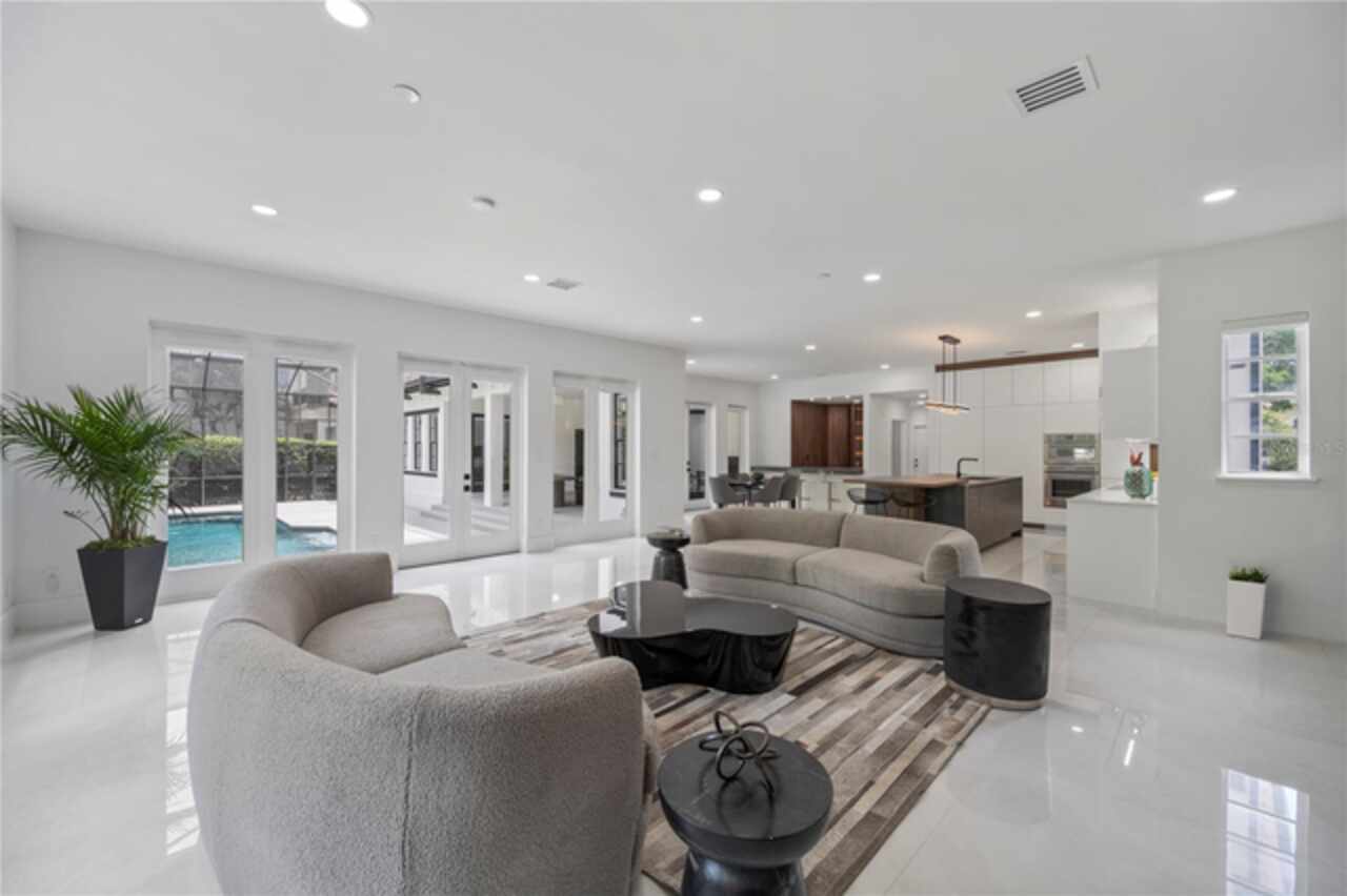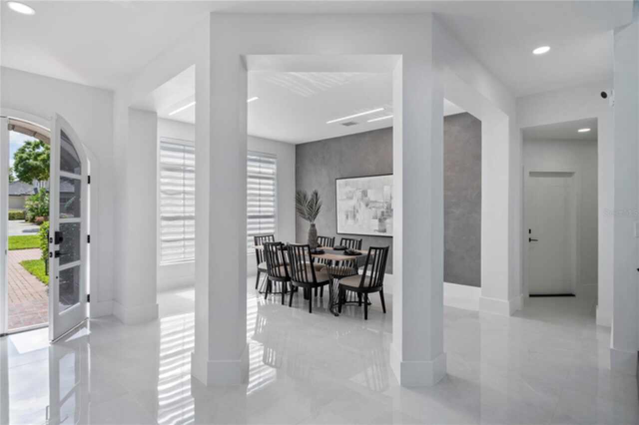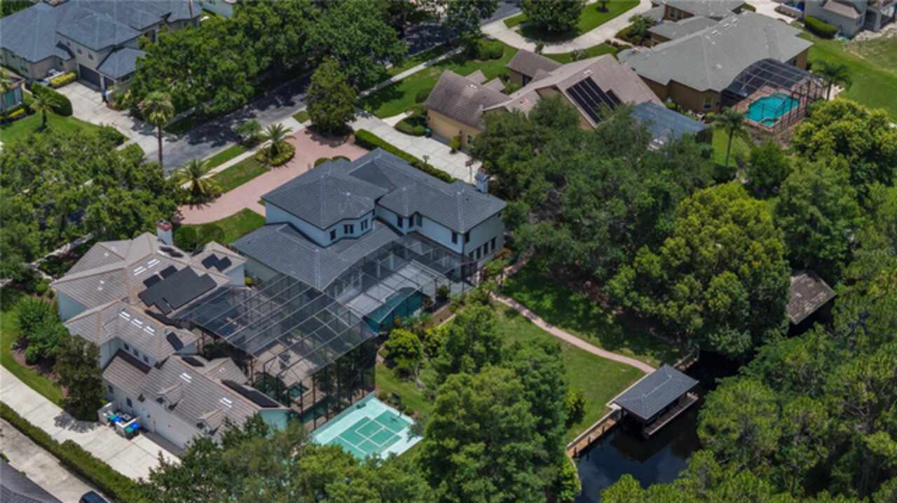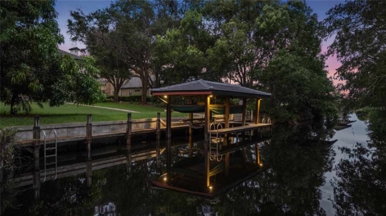 Introducing a rare opportunity to own a truly exceptional residence in the guard-gated enclave of Turtle Creek, one of Orlando’s most coveted luxury communities. This breathtaking estate has been fully remodeled in 2024 and also features a brand new tile roof and fully resurfaced pool. Boasting over 5, 800 square feet of meticulously curated living space, 5 spacious bedrooms, 5.5 designer bathrooms, and direct access to the famed Butler Chain of Lakes. Step through the stately double doors and into a grand foyer where the interior unfolds with two-story ceilings, expansive living spaces, and sleek porcelain tile flooring that flows seamlessly throughout the entire home. The heart of the home is a show-stopping chef’s kitchen designed to impress. Outfitted with custom cabinetry, quartz countertops, high-end Thermador appliances, and an oversized island with waterfall edges, it is truly the chef enthusiast's dream. The kitchen flows effortlessly into an expansive family room featuring a stylish electric fireplace, a full wet bar with a wine fridge, and tons of windows with views of the canal and backyard. The first-floor primary suite is a true private retreat. Generously sized and elegantly appointed, it features a sitting area with water views, a large walk-in closet, and a spa-inspired bathroom complete with a freestanding soaking tub, oversized walk-in shower, and dual vanities adorned with designer finishes. Upstairs, additional guest bedrooms are well-appointed, each offering ample space, natural light, and beautifully renovated bathrooms with modern touches. Additional upstairs amenities include a versatile living area, a dedicated office, and a gym. Step outside into your own private resort. The newly resurfaced pool is framed by a spacious screened-in patio and covered lanai, ideal for lounging, dining, and entertaining. Beyond the pool lies the crown jewel of the property: your private boat dock nestled along a tranquil canal with direct access to the Butler Chain of Lakes. As a part of the Turtle Creek community, residents enjoy 24-hour guard gated security, tennis courts, a playground, and a serene setting just minutes from renowned dining on Restaurant Row, world-class shopping, championship golf courses, and Orlando’s most elite private schools. Don’t miss the opportunity to make this amazing fully remodeled home yours.