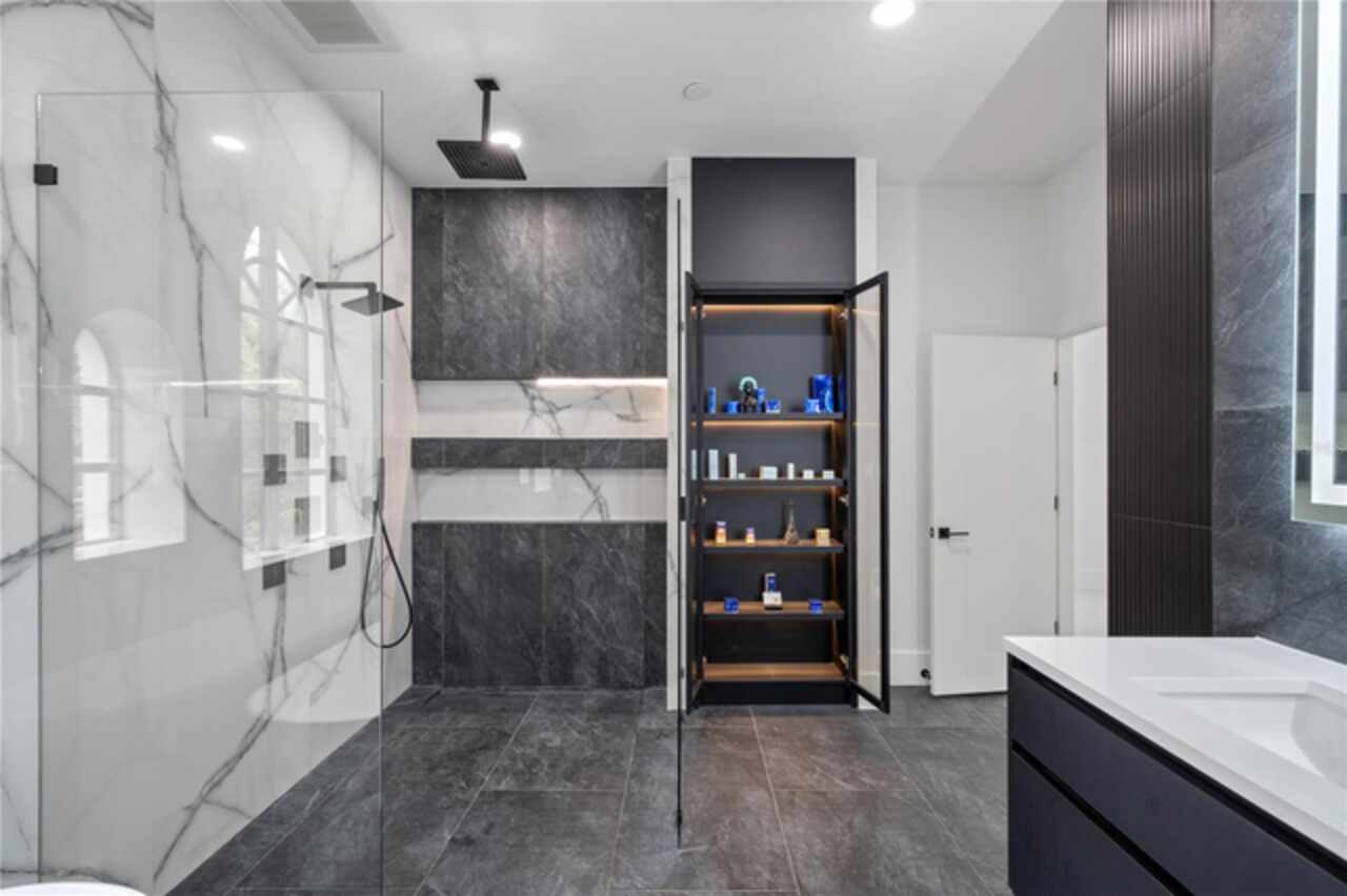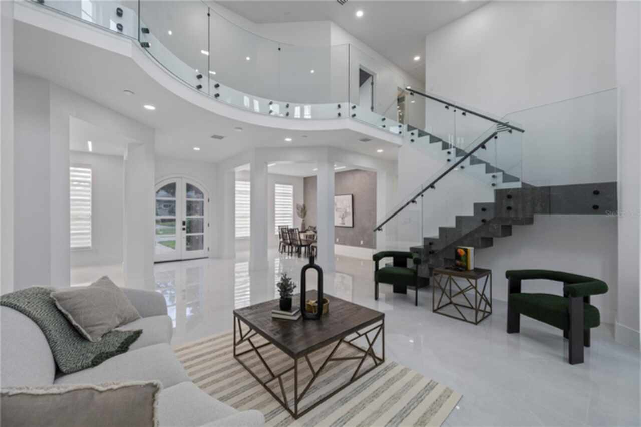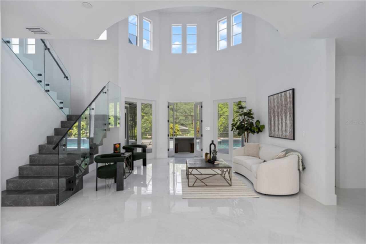 Introducing a rare opportunity to own a truly exceptional residence in the guard-gated enclave of Turtle Creek, one of Orlando’s most coveted luxury communities. This breathtaking estate has been fully remodeled in 2024 and also features a brand new tile roof and fully resurfaced pool. Boasting over 5, 800 square feet of meticulously curated living space, 5 spacious bedrooms, 5.5 designer bathrooms, and direct access to the famed Butler Chain of Lakes. Step through the stately double doors and into a grand foyer where the interior unfolds with two-story ceilings, expansive living spaces, and sleek porcelain tile flooring that flows seamlessly throughout the entire home. The heart of the home is a show-stopping chef’s kitchen designed to impress. Outfitted with custom cabinetry, quartz countertops, high-end Thermador appliances, and an oversized island with waterfall edges, it is truly the chef enthusiast's dream. The kitchen flows effortlessly into an expansive family room featuring a stylish electric fireplace, a full wet bar with a wine fridge, and tons of windows with views of the canal and backyard. The first-floor primary suite is a true private retreat. Generously sized and elegantly appointed, it features a sitting area with water views, a large walk-in closet, and a spa-inspired bathroom complete with a freestanding soaking tub, oversized walk-in shower, and dual vanities adorned with designer finishes. Upstairs, additional guest bedrooms are well-appointed, each offering ample space, natural light, and beautifully renovated bathrooms with modern touches. Additional upstairs amenities include a versatile living area, a dedicated office, and a gym. Step outside into your own private resort. The newly resurfaced pool is framed by a spacious screened-in patio and covered lanai, ideal for lounging, dining, and entertaining. Beyond the pool lies the crown jewel of the property: your private boat dock nestled along a tranquil canal with direct access to the Butler Chain of Lakes. As a part of the Turtle Creek community, residents enjoy 24-hour guard gated security, tennis courts, a playground, and a serene setting just minutes from renowned dining on Restaurant Row, world-class shopping, championship golf courses, and Orlando’s most elite private schools. Don’t miss the opportunity to make this amazing fully remodeled home yours.