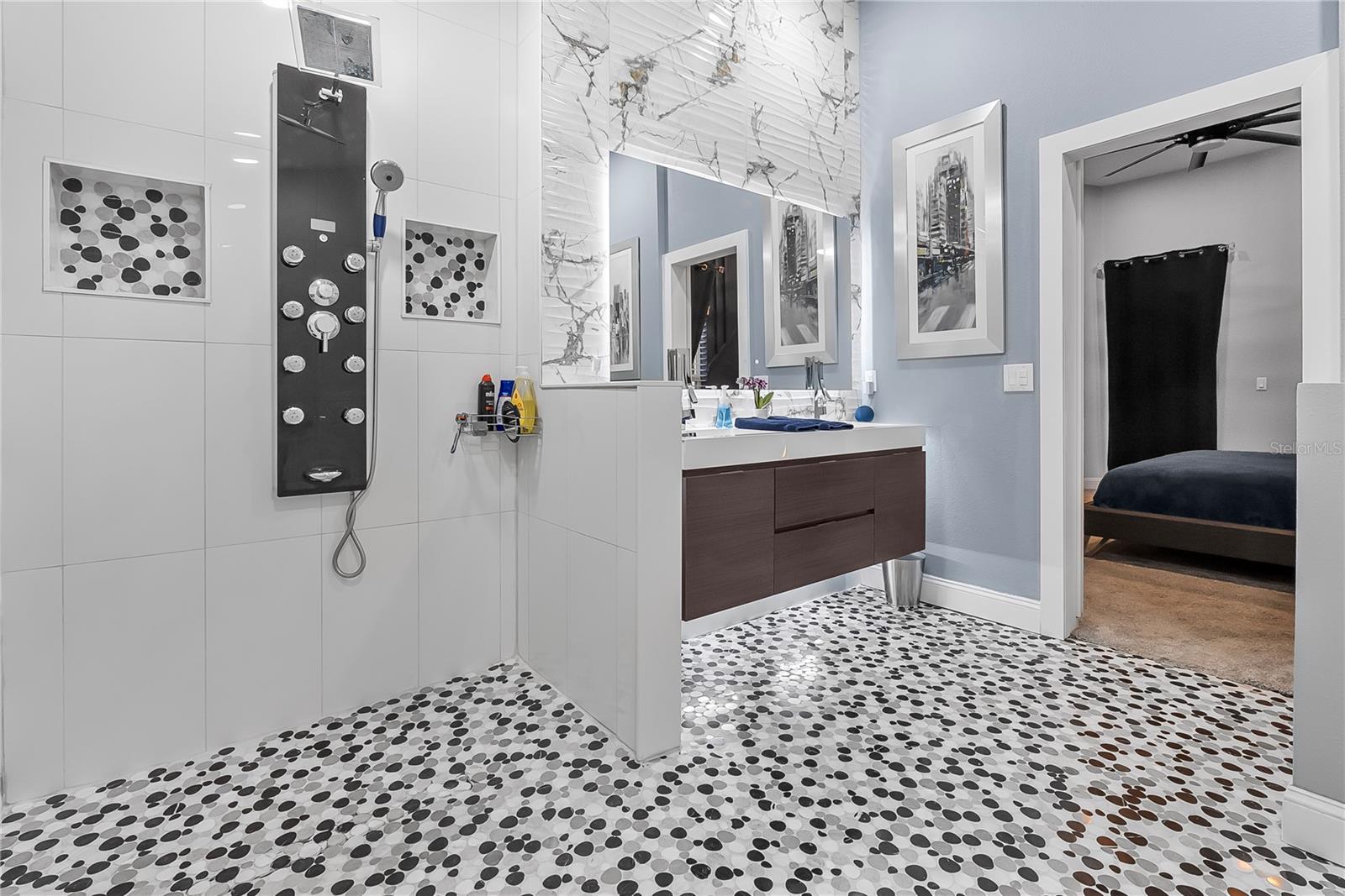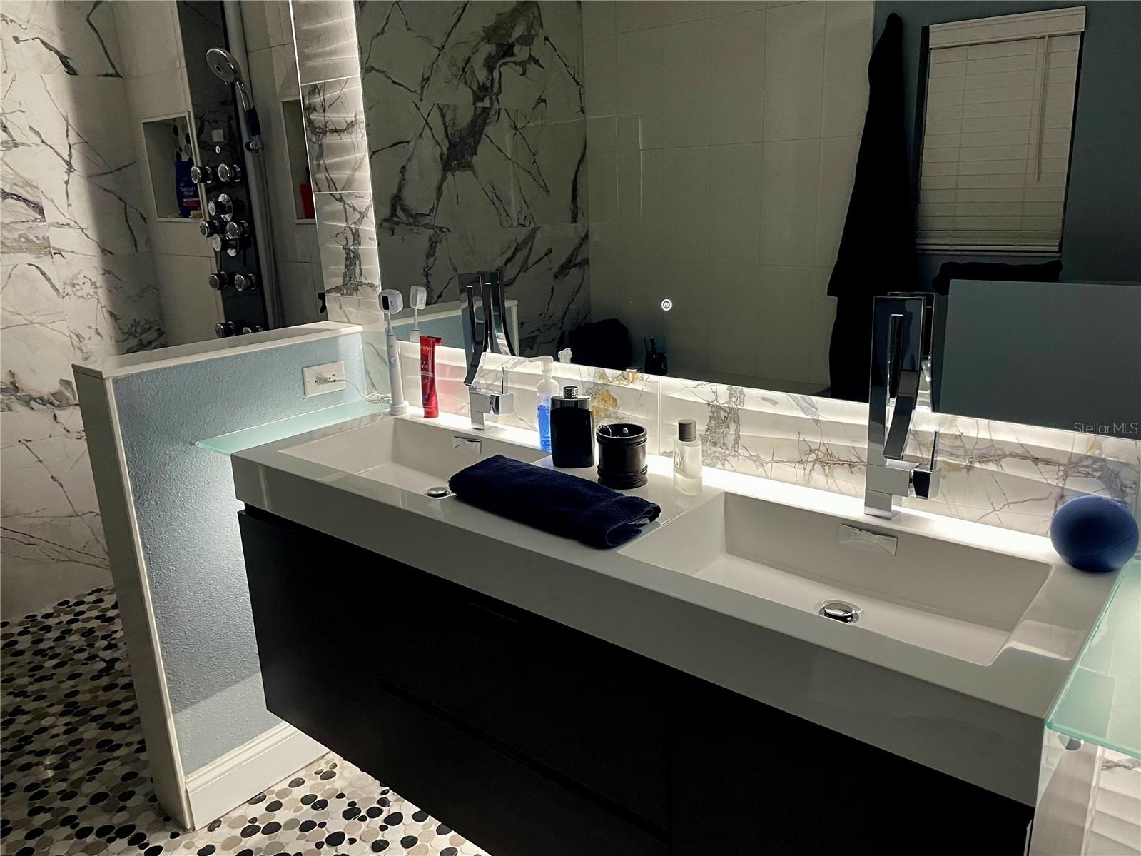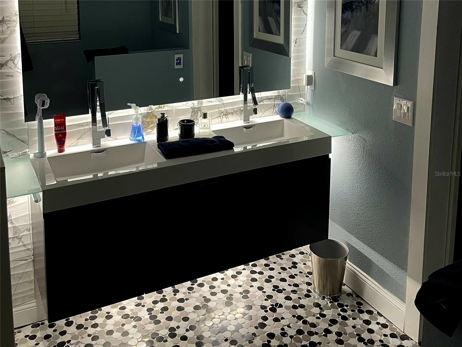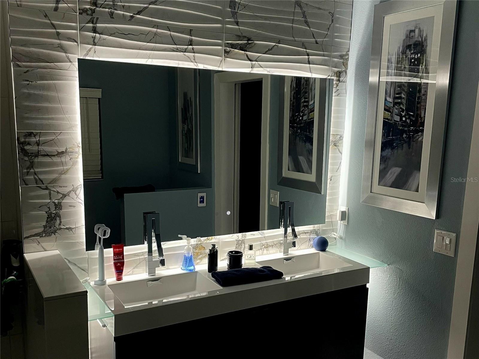 Welcome to this fully remodeled 3-bedroom, 2-bathroom home in the highly sought-after Lake Nona community, offering the perfect combination of modern luxury, smart technology, and an unbeatable location near the 417 SR, Orlando International Airport, the VA Hospital, and everything Lake Nona has to offer, all with the lowest HOA in the area. This move-in-ready home features over 1, 700 sq ft of living space with an open floor plan ideal for entertaining. Luxury vinyl plank flooring flows throughout the common areas, plush carpet in the bedrooms, and tile in the bathrooms. The home is wired for Cat 8 internet in every room, has a fully wired alarm system, updated square electric boxes, and updated LED lighting throughout. The primary and secondary bedrooms feature remote-controlled lighting for productivity or relaxation, while the elegant Nest thermostat and smart smoke and CO2 detectors offer convenience and safety. The kitchen is a chef’s dream, complete with 2022 Whirlpool appliances, waterfall quartz countertops, soft-close cabinetry that lights up when opened, motion sensor lighting, and a smart LED kitchen faucet that changes color with water temperature for safety. The primary suite is a private retreat with a barn door to the spa-like primary bathroom and backyard access. The master bath boasts heated floors with a dedicated thermostat, heated lighted mirrors, floating cabinetry with power outlets in drawers, a zero-entry shower, and a Dual 6-in-One 8-Jet Shower Panel Tower System with rainfall and waterfall heads for a luxurious spa experience. Bedroom 2 also features customizable lighting, and the second full bath is modern and stylish. Additional upgrades include a 2022 roof, 2025 HVAC, updated washer and dryer from 2022, and gutters installed for easy maintenance. The covered lanai provides the perfect space for BBQs and outdoor entertainment, while the 2-car garage offers ample storage. Every detail of this home has been carefully considered to provide comfort, elegance, and modern functionality in one of Lake Nona’s most desirable neighborhoods.