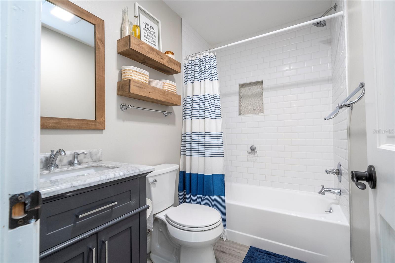 Located in the heart of College Park and walking distance to the shops and restaurants on Edgewater Drive as well as Dubsdread Golf Course, this beautifully renovated 4-bedroom, 2.5-bath home perfectly blends modern design with traditional College Park charm. The downstairs bedroom has been converted into a flexible office or playroom, and the open-concept living area features large plank wood-look tile floors that flow into a remodeled kitchen with modern cabinetry, quartz countertops, stainless steel appliances, and a dry bar with wine fridge. Upstairs you’ll find hardwood flooring throughout, an indoor laundry room, and a spacious master suite with a vanity and walk-in closet. The home has been fully reimagined, including a complete repipe, new roof (2021), renovated bathrooms, rebuilt stairs (2020), high-capacity water heater, new dual A/C units (both under 10 years), vinyl fencing, new irrigation system, re-paved driveway, and front porch addition that creates a warm and welcoming curb appeal. The property also features a two-car garage, large fenced backyard, under-stair storage, and is walking distance to great schools. This is the perfect combination of walkability, timeless style, and modern living in one of Orlando’s most desirable neighborhoods.