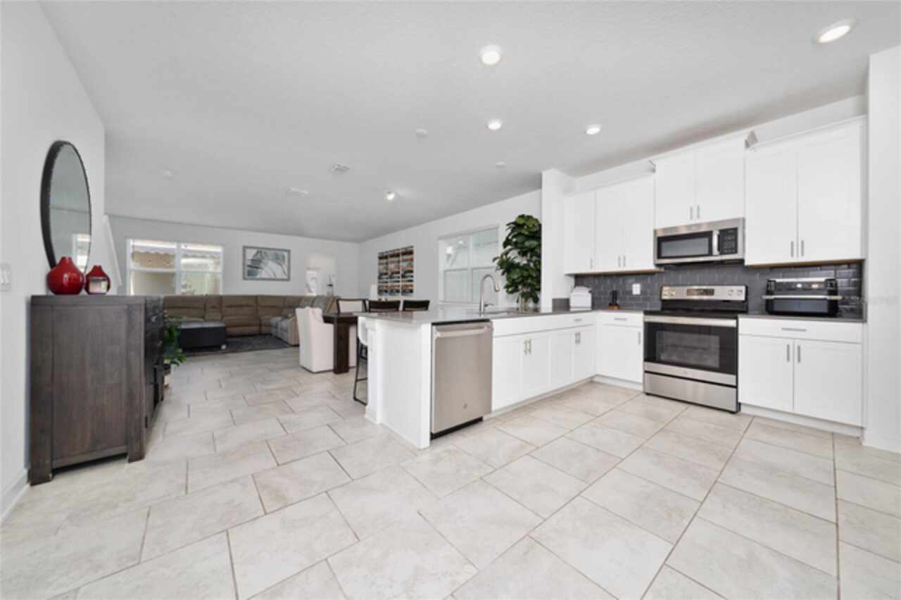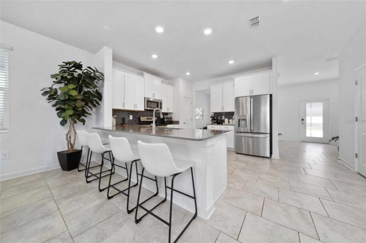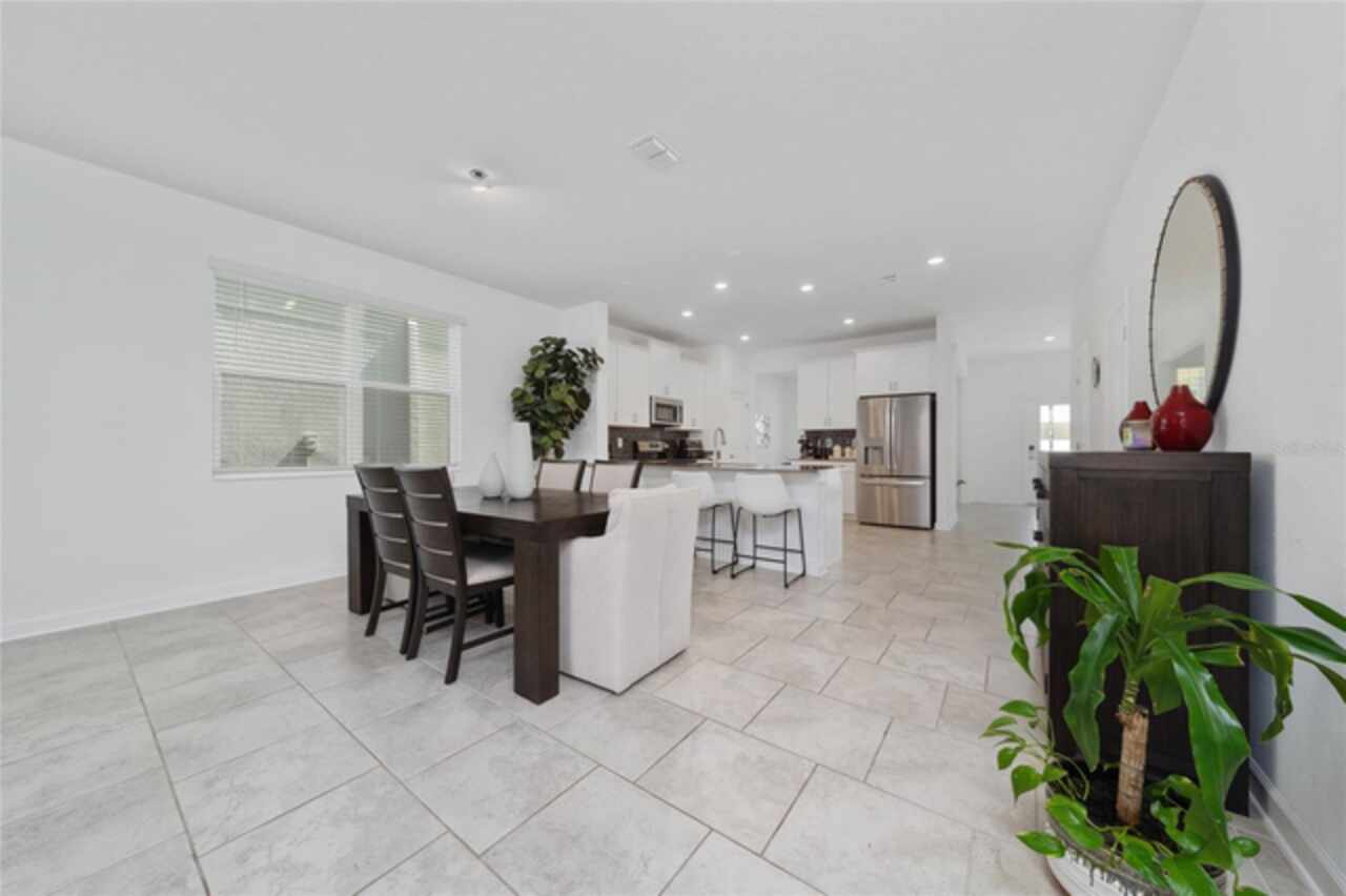 Charming 3-Bedroom Home in the Sought-After Storey Park Community – Live the Lifestyle You Deserve! Built in 2023, this two-story residence offers 3 spacious bedrooms, 2.5 bathrooms, and over 2, 198 square feet of open and functional living space—perfect for everyday comfort and entertaining. Modern Open Concept Design The floor plan flows seamlessly between the living room, dining area, and kitchen, creating a warm and inviting atmosphere ideal for family gatherings. The kitchen is fully equipped with stainless steel appliances, quartz countertops, and a central island with breakfast bar seating, perfect for casual dining and entertaining. Comfort and Style Throughout The elegant finishes include ceramic tile flooring on the first floor and soft carpet on the second floor and staircase, combining practicality with comfort. The spacious primary suite is located upstairs and features a large walk-in closet and a private bathroom with double sinks. A detached 2-car rear-entry garage provides privacy and convenience, while the private outdoor area is perfect for enjoying the Florida weather or hosting guests.