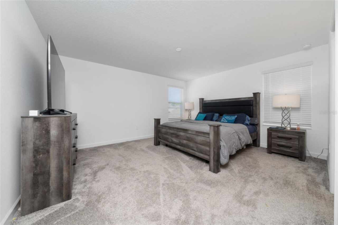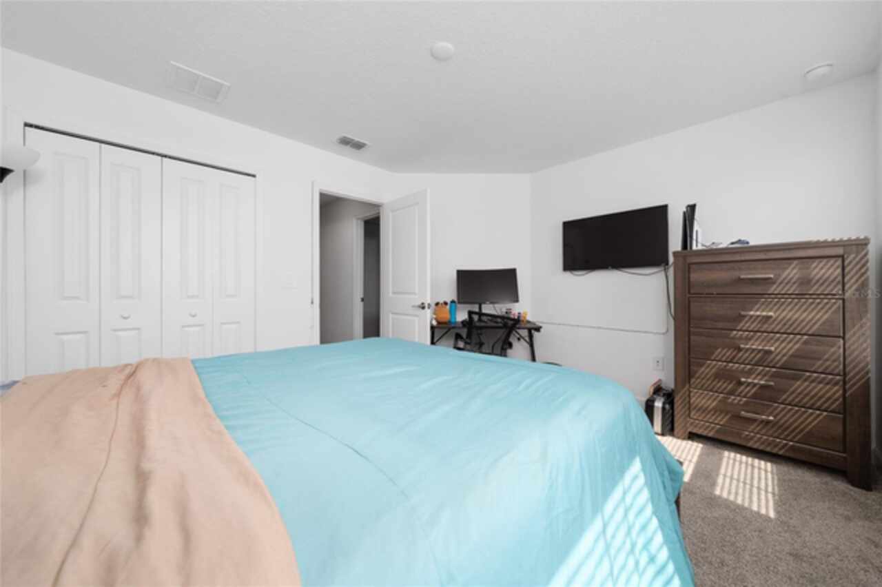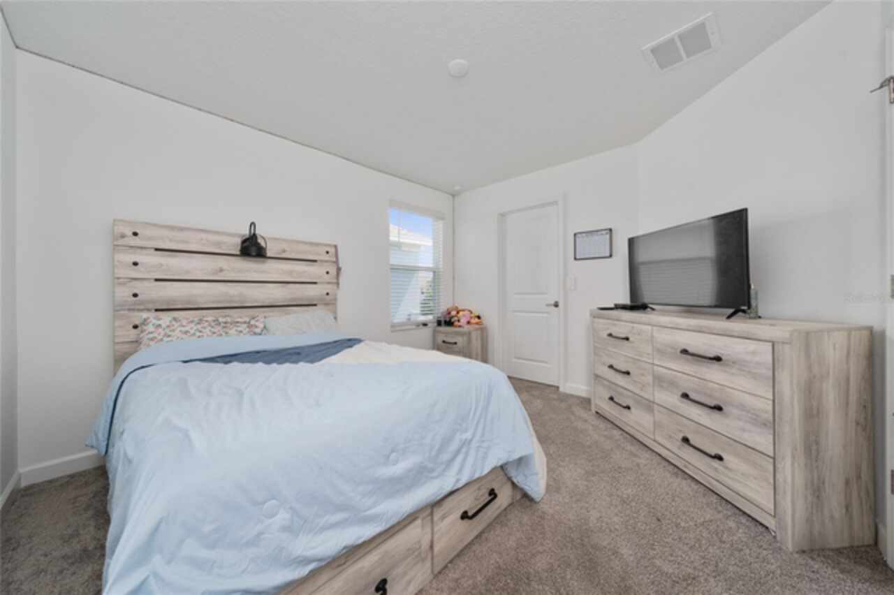 Charming 3-Bedroom Home in the Sought-After Storey Park Community – Live the Lifestyle You Deserve! Built in 2023, this two-story residence offers 3 spacious bedrooms, 2.5 bathrooms, and over 2, 198 square feet of open and functional living space—perfect for everyday comfort and entertaining. Modern Open Concept Design The floor plan flows seamlessly between the living room, dining area, and kitchen, creating a warm and inviting atmosphere ideal for family gatherings. The kitchen is fully equipped with stainless steel appliances, quartz countertops, and a central island with breakfast bar seating, perfect for casual dining and entertaining. Comfort and Style Throughout The elegant finishes include ceramic tile flooring on the first floor and soft carpet on the second floor and staircase, combining practicality with comfort. The spacious primary suite is located upstairs and features a large walk-in closet and a private bathroom with double sinks. A detached 2-car rear-entry garage provides privacy and convenience, while the private outdoor area is perfect for enjoying the Florida weather or hosting guests.