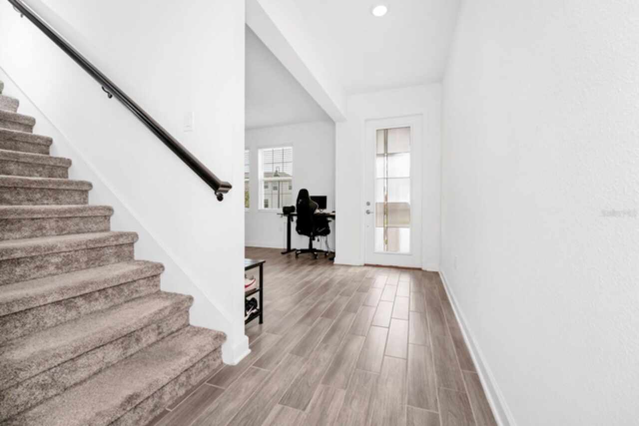 Welcome to this exquisite two-story residence situated in the coveted Lake Nona master-planned community of Storey Park. Embrace eco-friendly living and cost savings on your utility bills with this solar-powered home. This 4-bedroom, 2.5-bathroom residence perfectly complements contemporary lifestyles. Upon entering, the ground floor features a flexible office space at the front of the house, while the rear boasts an expansive Kitchen-Great Room area. The kitchen offers a generously sized pantry, stainless steel appliances, 42-inch white cabinets, and elegant quartz countertops. The spacious 16x25 Great Room is an ideal setting for movie nights with friends and family. Upstairs, you'll discover the serene Master Bedroom Retreat alongside three generously proportioned bedrooms. The master bedroom is flooded with natural light, adorned with a tray ceiling, and boasts ample living space. The bathroom oasis features a dual-sink vanity with quartz countertops, a spacious walk-in shower, a separate garden tub, and an enormous walk-in closet. A great size backyard which is perfect for outdoor entertaining and summer cookouts. Storey Park offers a wealth of amenities, including a beautiful pool, a fully equipped gym, a community clubhouse, walking trails, a dog park, and a playground. Sports enthusiasts will appreciate the basketball court, tennis court, and volleyball court. This property is zoned for top-rated schools and conveniently located near SR 417 and SR 528, providing easy access to popular destinations such as Lake Nona, Medical City, Orlando International Airport, and the attractions.
