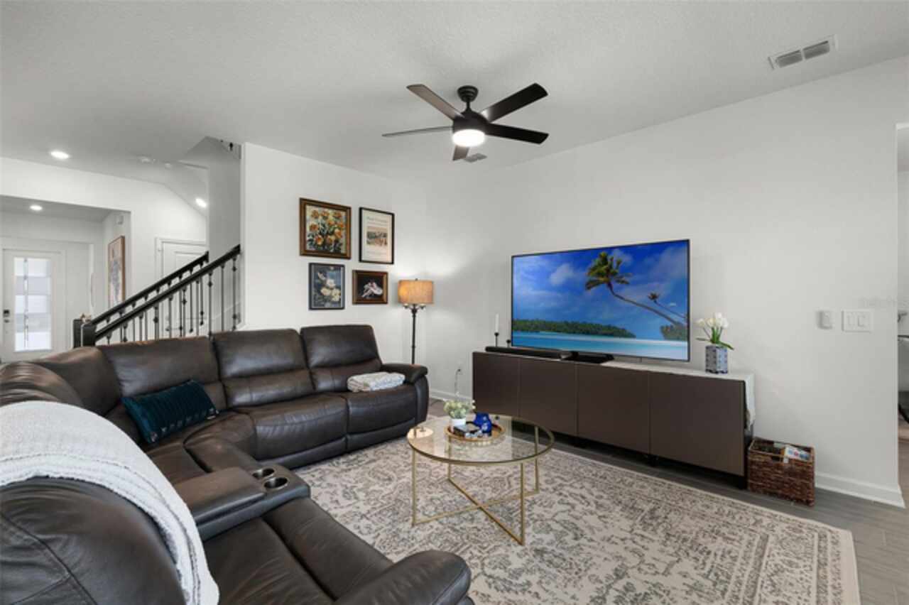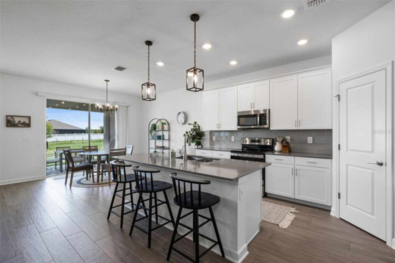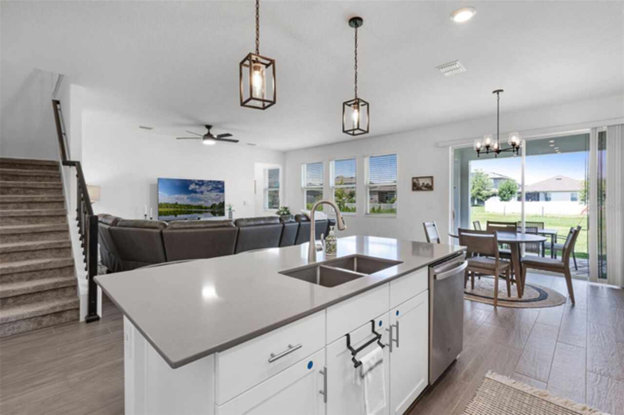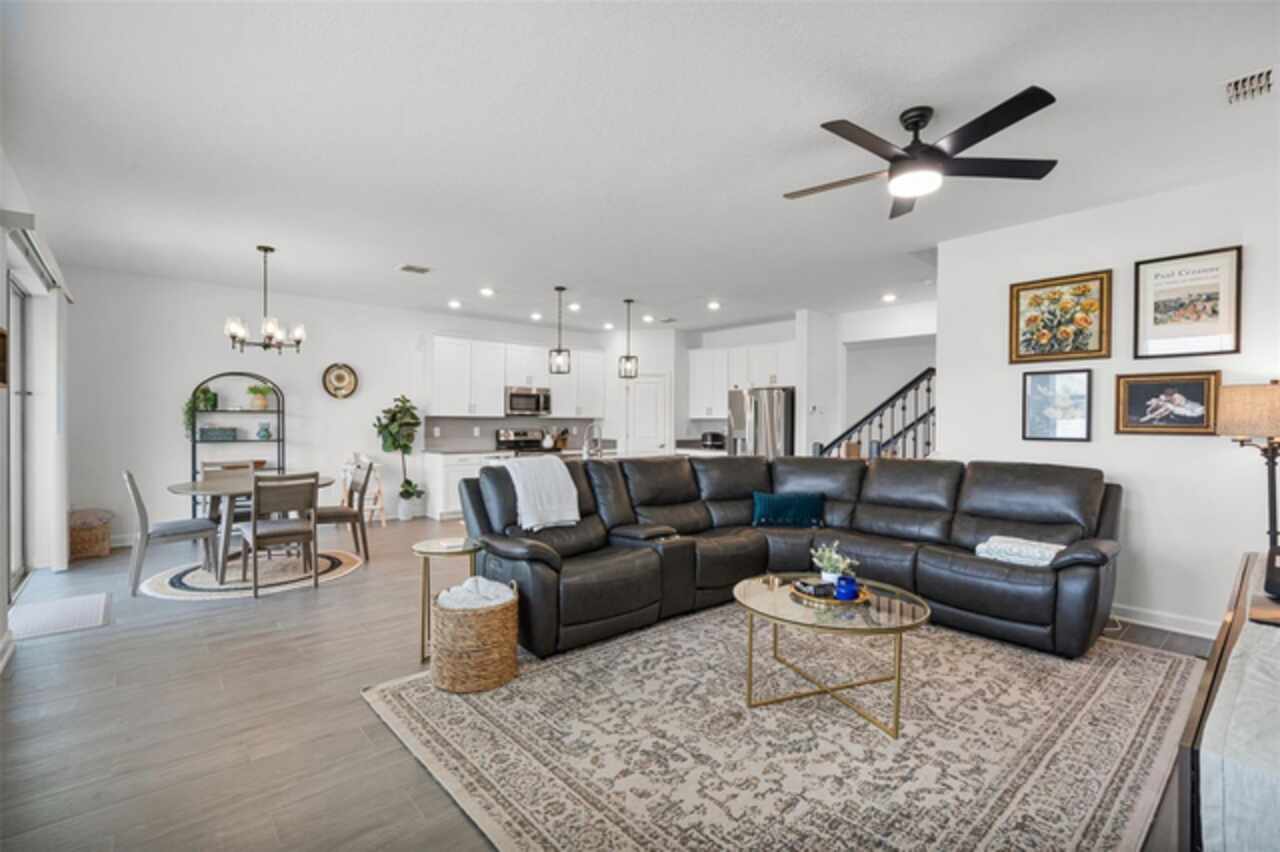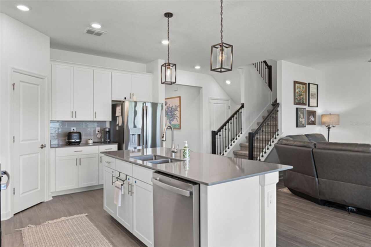 Welcome to this stunning 5-bedroom, 3-bathroom home in the highly sought-after Storey Park community. Offering a perfect balance of style, comfort, and functionality, this home provides the ideal setting for both everyday living and entertaining. Inside, you’re greeted with a spacious open floor plan designed for modern living. The heart of the home is the chef’s kitchen, featuring quartz countertops, stainless steel appliances, abundant cabinetry, and a large center island with seating—perfect for family gatherings and casual meals. The kitchen seamlessly flows into the dining and living areas, creating a bright, open space for entertaining or relaxing. The luxurious owner’s suite is a true retreat with its expansive layout, walk-in closet, and spa-inspired bathroom. Upstairs, you’ll also find three additional bedrooms, each filled with natural light and versatile enough to serve as guest rooms, home offices, or a personal gym. A dedicated laundry room upstairs adds convenience. The home also features a welcoming front den/office on the main floor, ideal for remote work or study. Step outside to a large backyard with a covered patio—perfect for barbecues, outdoor dining, or simply enjoying Florida’s sunshine in a private setting. Living in Storey Park means more than just a beautiful home—it’s a lifestyle. This vibrant community offers resort-style amenities including pools, fitness centers, playgrounds, and scenic walking trails. Plus, with easy access to major highways, Orlando International Airport, top-rated schools with a brand new elementary school being built inside the neighborhood and a brand new high school down the street, and premier dining and shopping, everything you need is right at your fingertips. This home is move-in ready and waiting for you to create lasting memories.