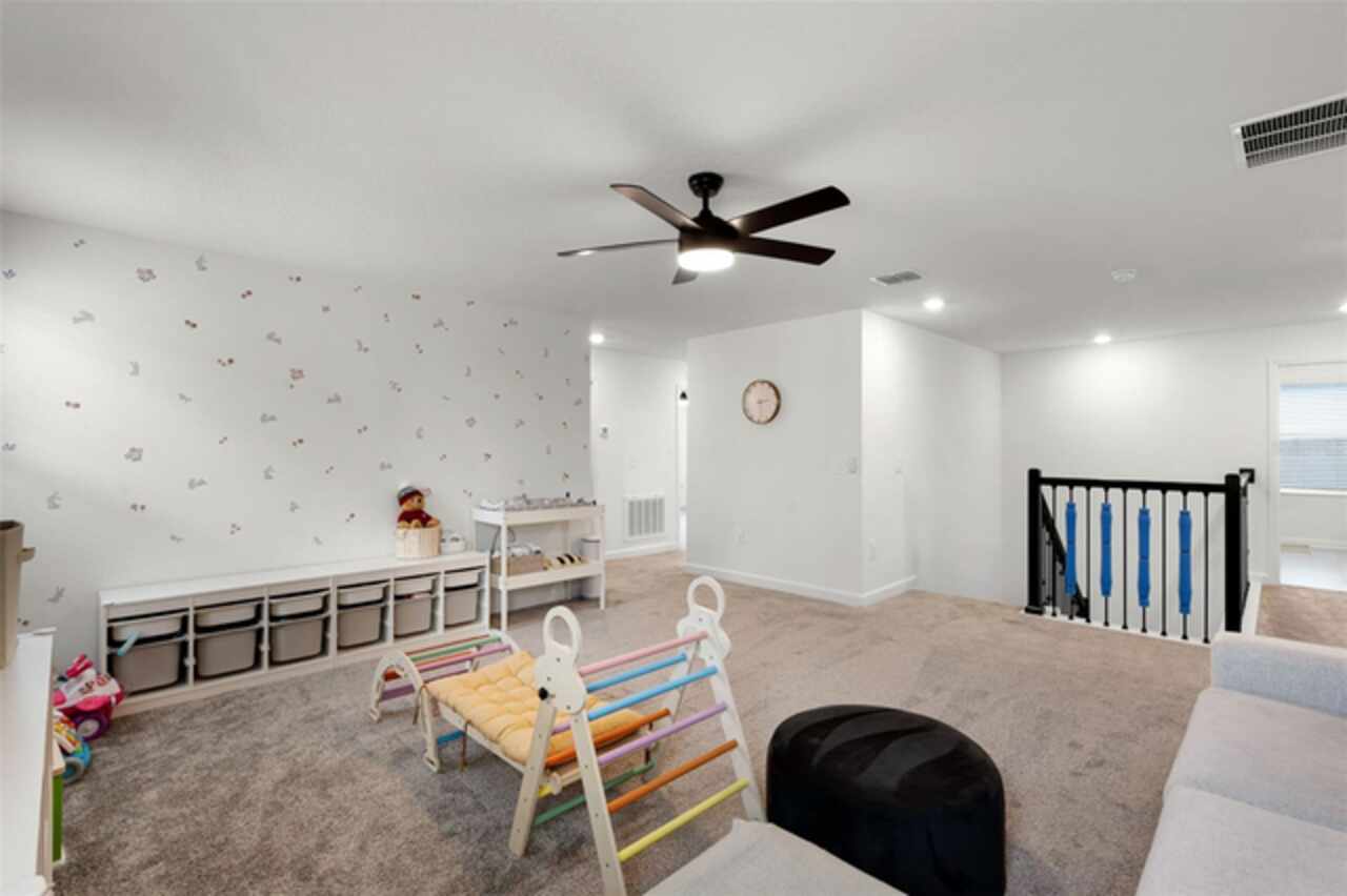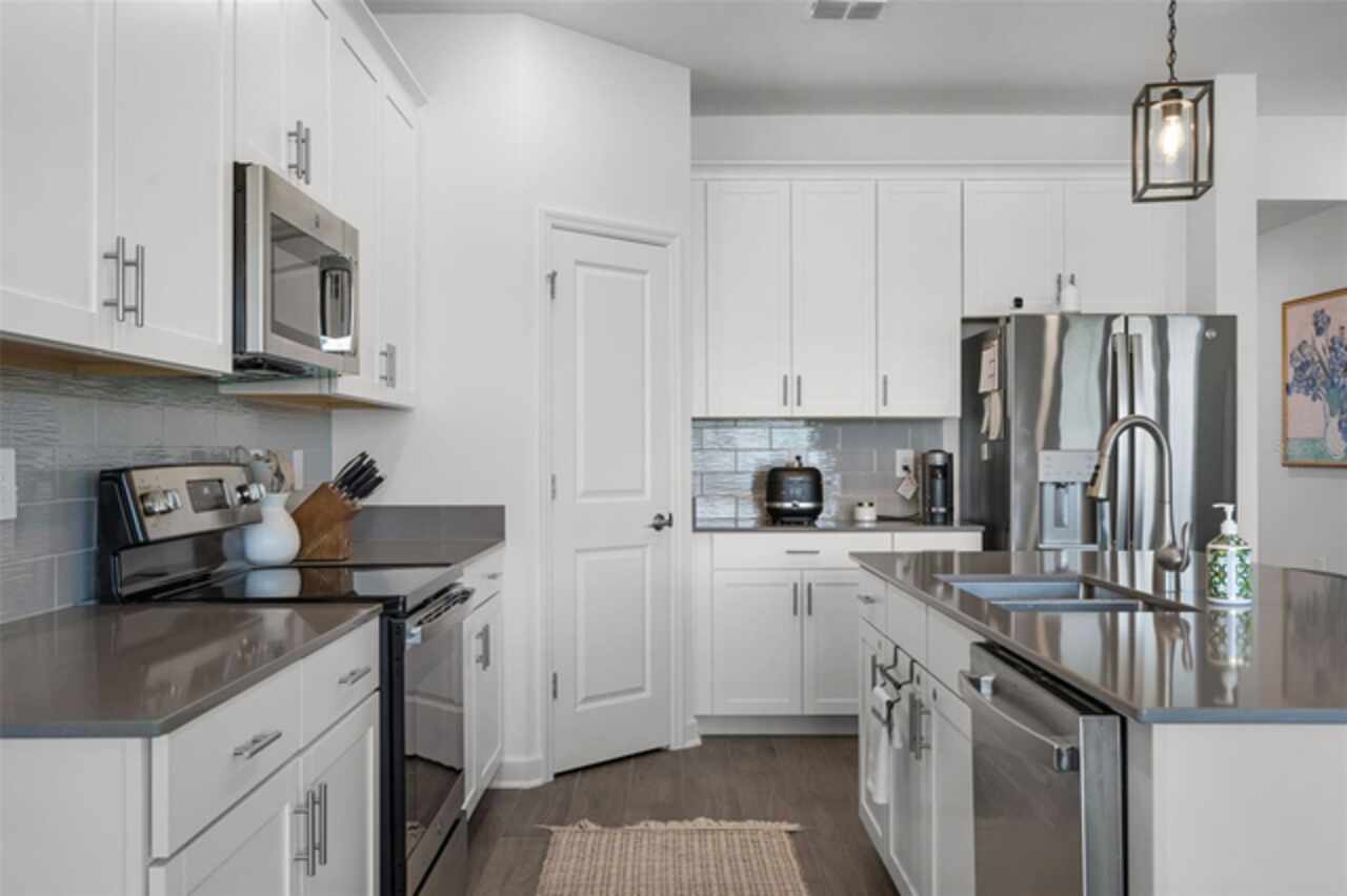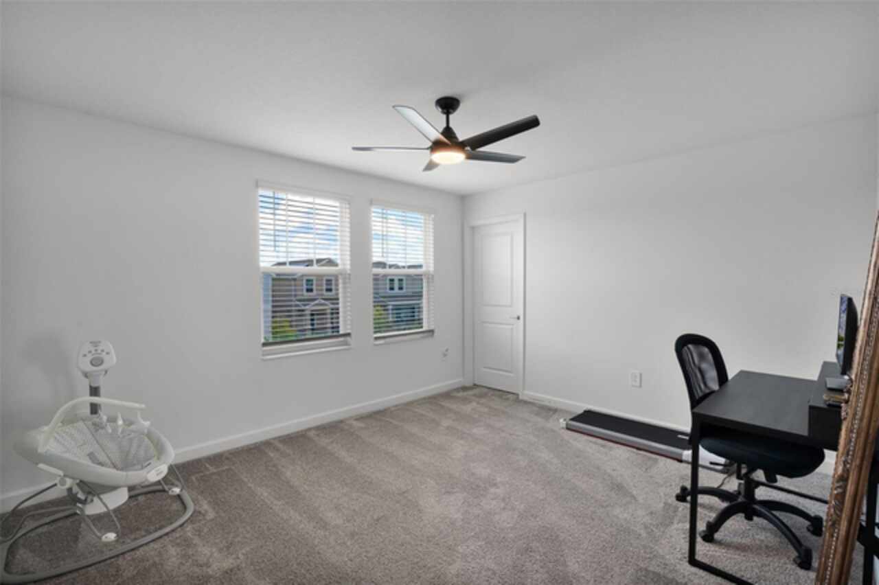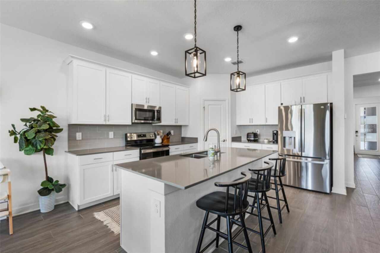 Welcome to this stunning 5-bedroom, 3-bathroom home in the highly sought-after Storey Park community. Offering a perfect balance of style, comfort, and functionality, this home provides the ideal setting for both everyday living and entertaining. Inside, you’re greeted with a spacious open floor plan designed for modern living. The heart of the home is the chef’s kitchen, featuring quartz countertops, stainless steel appliances, abundant cabinetry, and a large center island with seating—perfect for family gatherings and casual meals. The kitchen seamlessly flows into the dining and living areas, creating a bright, open space for entertaining or relaxing. The luxurious owner’s suite is a true retreat with its expansive layout, walk-in closet, and spa-inspired bathroom. Upstairs, you’ll also find three additional bedrooms, each filled with natural light and versatile enough to serve as guest rooms, home offices, or a personal gym. A dedicated laundry room upstairs adds convenience. The home also features a welcoming front den/office on the main floor, ideal for remote work or study. Step outside to a large backyard with a covered patio—perfect for barbecues, outdoor dining, or simply enjoying Florida’s sunshine in a private setting. Living in Storey Park means more than just a beautiful home—it’s a lifestyle. This vibrant community offers resort-style amenities including pools, fitness centers, playgrounds, and scenic walking trails. Plus, with easy access to major highways, Orlando International Airport, top-rated schools with a brand new elementary school being built inside the neighborhood and a brand new high school down the street, and premier dining and shopping, everything you need is right at your fingertips. This home is move-in ready and waiting for you to create lasting memories.