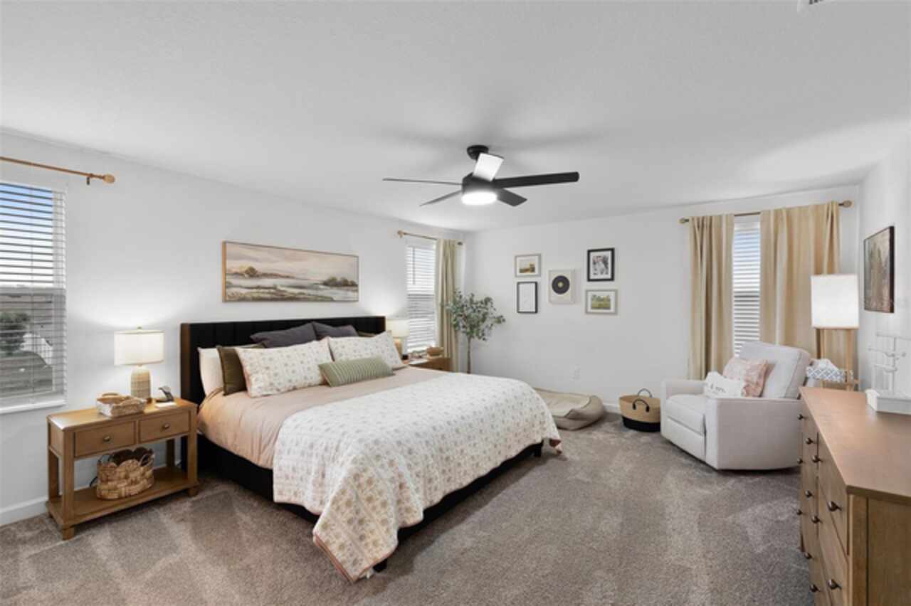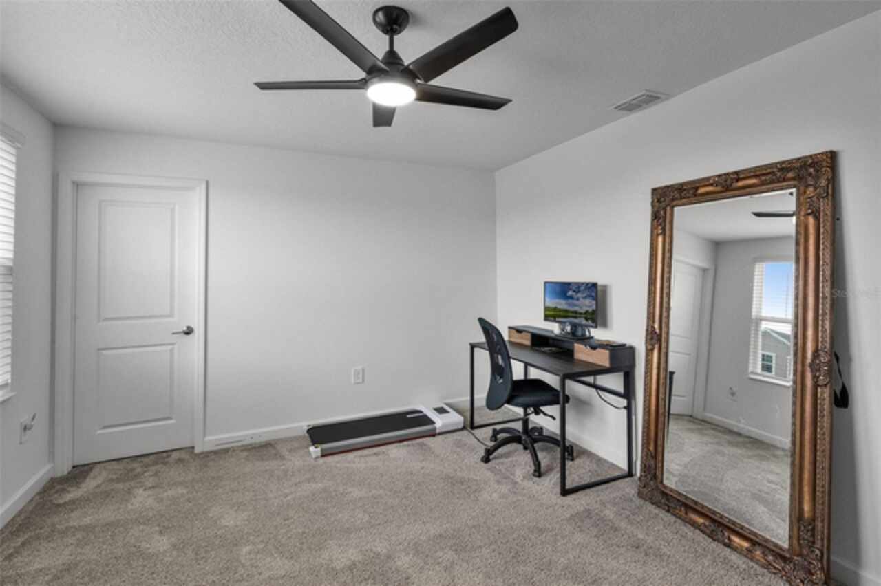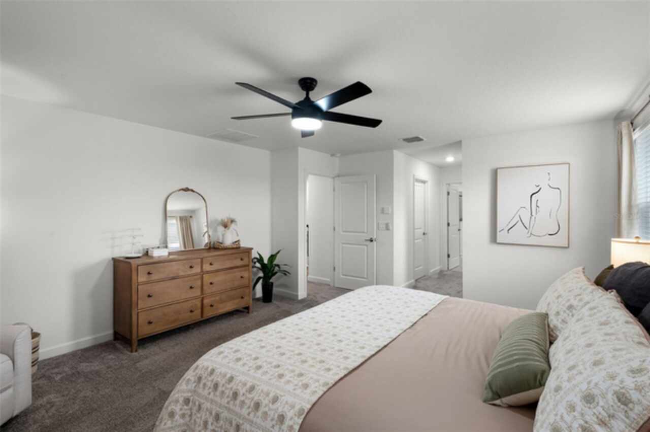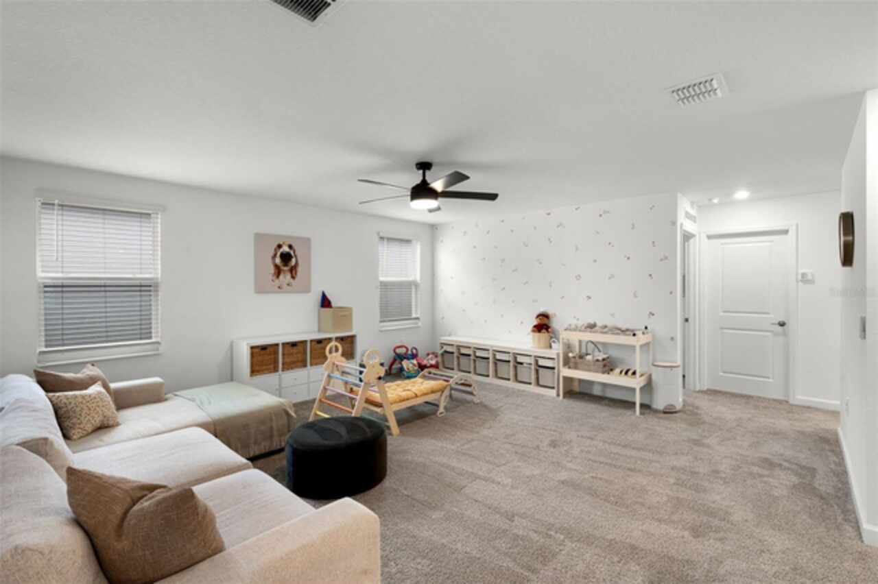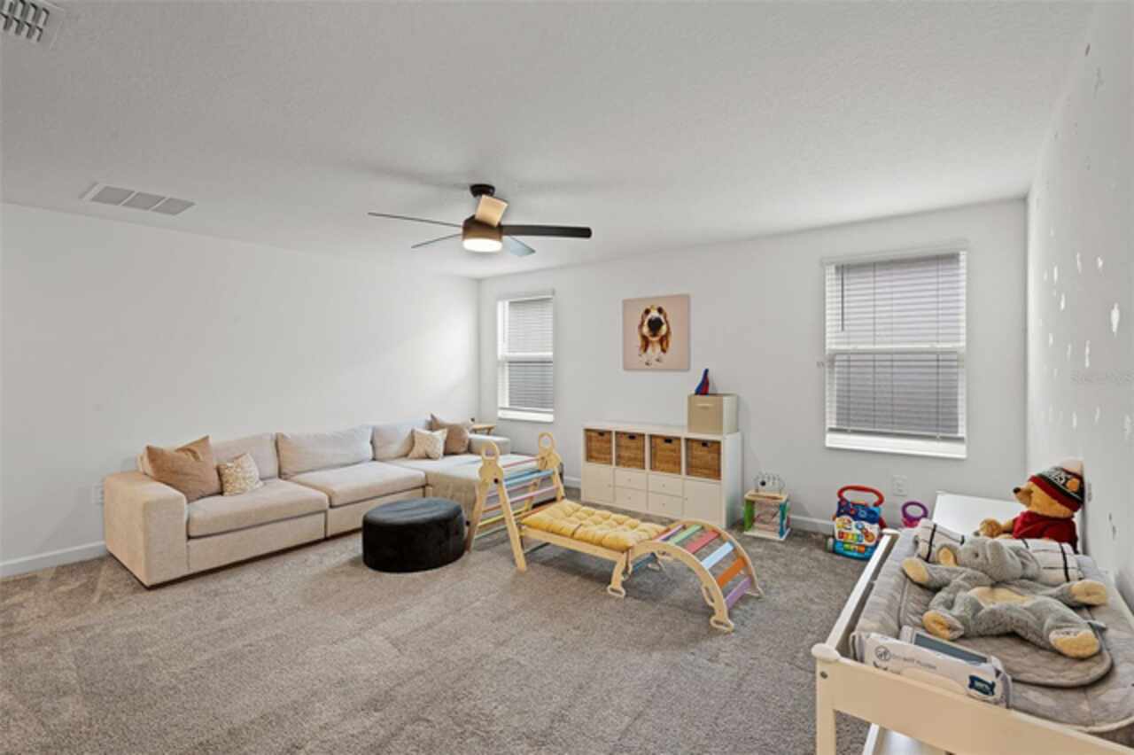Welcome to this stunning 5-bedroom, 3-bathroom home in the highly sought-after Storey Park community. Offering a perfect balance of style, comfort, and functionality, this home provides the ideal setting for both everyday living and entertaining. Inside, you’re greeted with a spacious open floor plan designed for modern living. The heart of the home is the chef’s kitchen, featuring quartz countertops, stainless steel appliances, abundant cabinetry, and a large center island with seating—perfect for family gatherings and casual meals. The kitchen seamlessly flows into the dining and living areas, creating a bright, open space for entertaining or relaxing. The luxurious owner’s suite is a true retreat with its expansive layout, walk-in closet, and spa-inspired bathroom. Upstairs, you’ll also find three additional bedrooms, each filled with natural light and versatile enough to serve as guest rooms, home offices, or a personal gym. A dedicated laundry room upstairs adds convenience. The home also features a welcoming front den/office on the main floor, ideal for remote work or study. Step outside to a large backyard with a covered patio—perfect for barbecues, outdoor dining, or simply enjoying Florida’s sunshine in a private setting. Living in Storey Park means more than just a beautiful home—it’s a lifestyle. This vibrant community offers resort-style amenities including pools, fitness centers, playgrounds, and scenic walking trails. Plus, with easy access to major highways, Orlando International Airport, top-rated schools with a brand new elementary school being built inside the neighborhood and a brand new high school down the street, and premier dining and shopping, everything you need is right at your fingertips. This home is move-in ready and waiting for you to create lasting memories.
