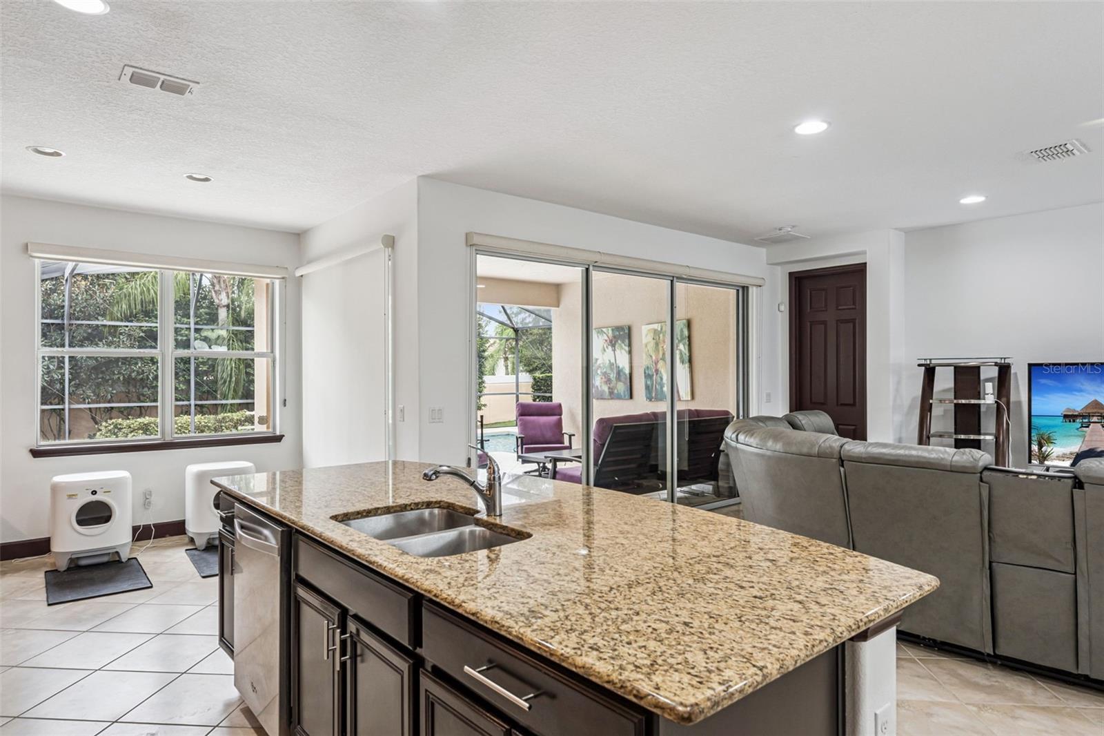 Kitchen/Family Room Combo, Open Floorplan, Solid Wood Cabinets, Stone Counters, Thermostat, Vaulted Ceiling(s), Walk-In Closet(s), Window Treatments