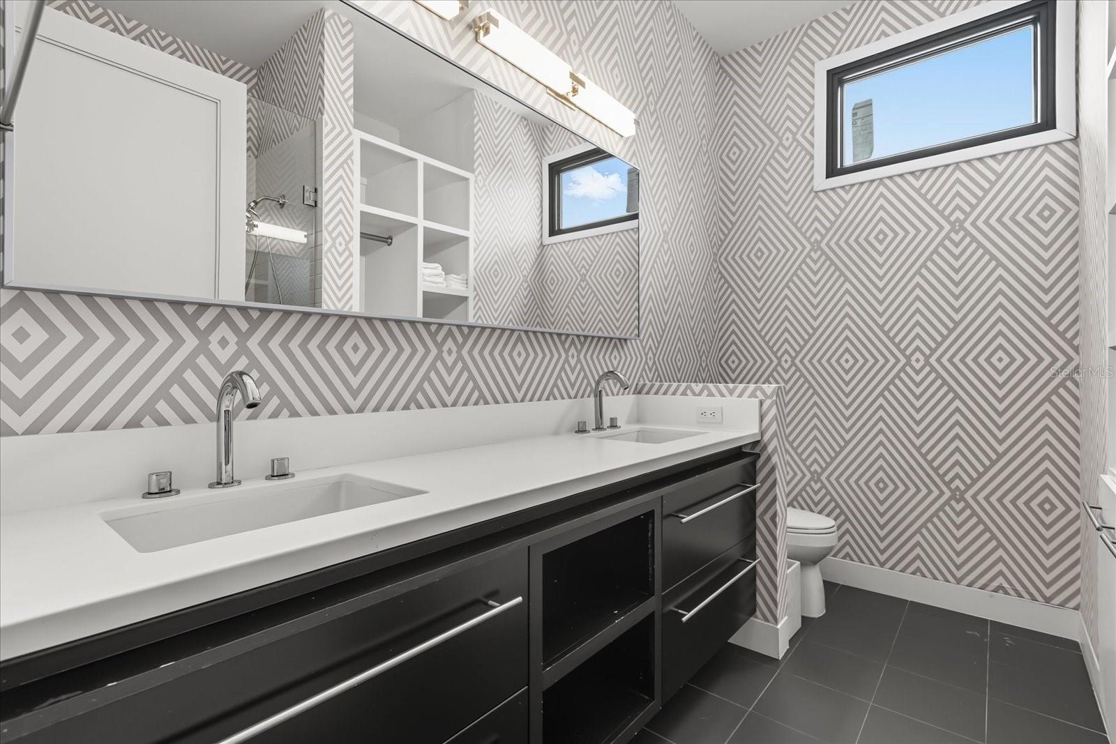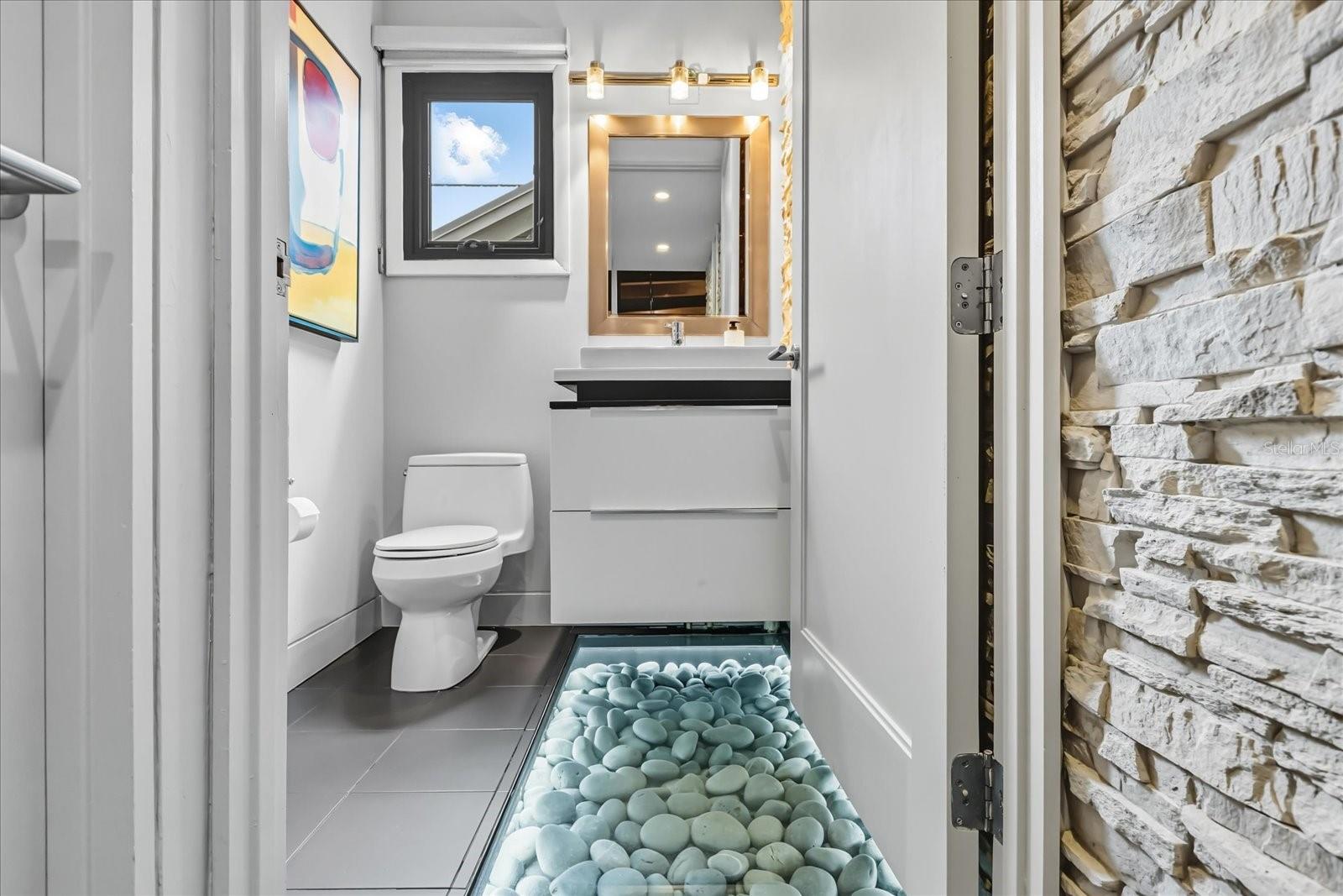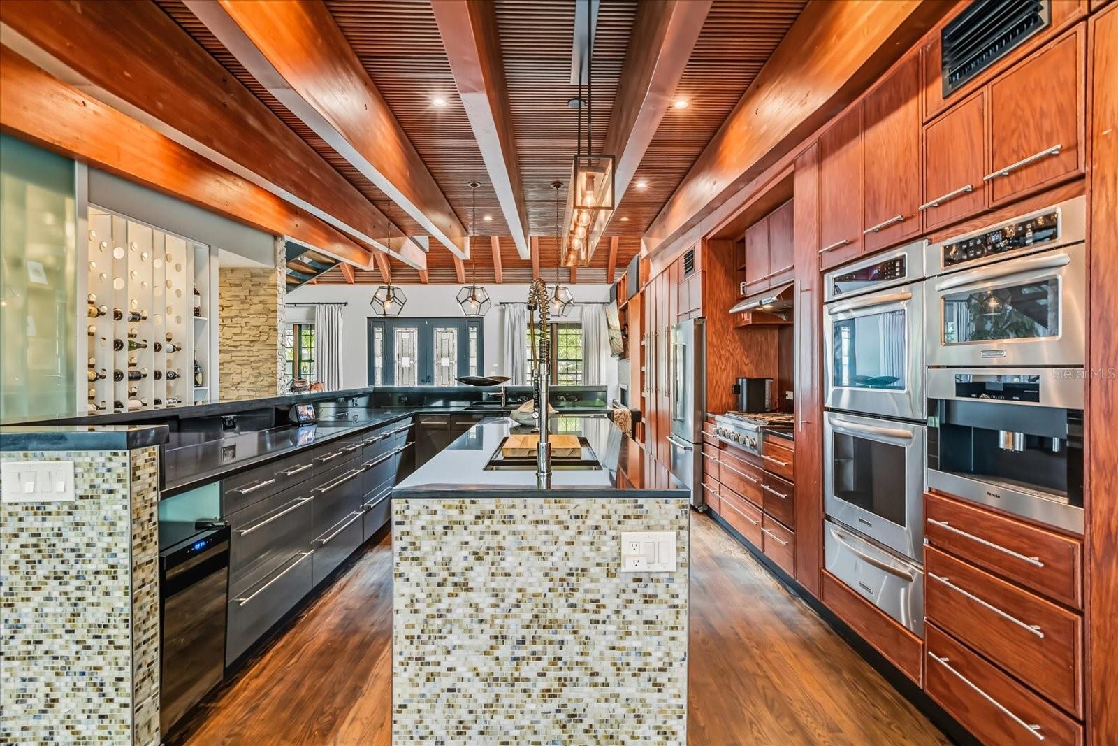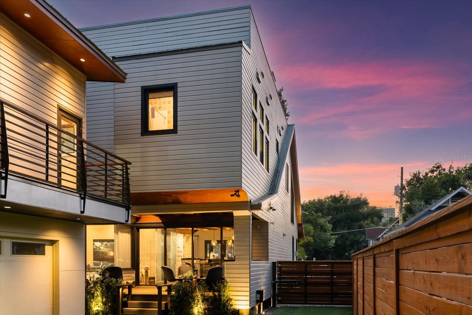 Thornton Park's best kept secret is this stunning compound's home with a total of 4-bedroom, 4.5-bath designed by renowned architect Tom Dordevic and built in 2010 as a modern interpretation of early Florida Cracker-style architecture, with newly added interior features by Winter Park’s Angela Neel. Elevated for passive cooling, the home beautifully blends historic character with contemporary design through natural materials, thoughtful proportions, and abundant natural light. Guests are welcomed by a peaceful fountain, new exterior landscaping and 35-foot-wide porch flanked by gas lanterns. Heavy Douglas Fir timber posts support exposed steel beams and roof members, showcasing exceptional craftsmanship. Inside, a dormered ceiling soars to 27 feet with a high transom window, illuminating a dramatic floating steel and glass staircase set against a 25-foot-tall stone wall. Newly refinished Oak hardwood floors through-out and exposed wood rafters create warmth and a sense of spaciousness throughout. The main home’s 3, 528-square-foot floor plan features a chef’s island kitchen, wine bottle wall, a great room with fireplace, and a versatile and hidden den/office/media space with a glass/ metal privacy door. Entertain in the elegant dining area highlighted by the floating staircase. Upstairs, the serene primary suite offers a spa-like bath, custom walk-in closet and a balcony complemented by two additional generously sized bedroom suites. Step outside to the back and enjoy an over-sized porch and outdoor overlooking the newly fenced private backyard or ascend to the expansive rooftop deck with unparalleled downtown Orlando skyline views. A detached air conditioned three-car garage with pebble tech flooring, and EV charging includes a 1-bedroom, 1-bath detached guest suite at 726 square feet has a full kitchen, washer/ dryer, full bathroom and balcony—perfect for visitors or rental income. Located in the heart of the walkable Thornton Park District, just blocks from downtown Orlando’s dining, entertainment, Dr. Phillips Center, and The Kia Center, with easy access to major roadways, Orlando International Airport, hospitals, and world-famous theme parks. The owner has invested over $330, 000 in improvements including and not limited to 26 new custom windows, new fencing and brand-new HVACs in the main home over the past year. Don’t miss this rare opportunity to own a sophisticated home in one of Orlando’s most sought-after neighborhoods. See attached owner improvements sheet for details and more information. And call for your private showing today.