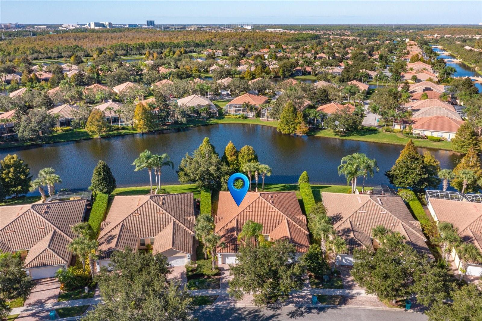 Elegant 3 bedroom villa in Village Walk, Lake Nona. Welcome to the beautifully designed three bedroom, two bath villa nested in the sought after Village Walk community of Lake Nona. Build by Divosta Homes, this residence showcases an open concept layout with many interior highlights. The spacious kitchen seamless flows into the expansive living and dining area, perfect for entertaining. A breakfast bar offers a cozy spot for casual meals. Sliding glass doors lead to a covered, screened lanai overlooking a serene point - your private oasis just beyond the back yard. The master suite features a generous walk-in closet and a luxurious bathroom with dual sinks and a walk-in shower. Two additional bedrooms share a full bath, ideal for guests or family. A conveniently located laundry room provides access to the two car garage, complete with a brick paver driveway. Village Walk is a master planned, gated community with many amenities and access with Lake Nona Town Center. Scenic walking and biking trails, sparkling swimming pool, basketball and tennis courts, state of the art fitness center. Prime location with close proximity to Orlando International Airport, Medical City and top-rated schools. Plus, all of Central Florida's major attractions are just a short drive away.