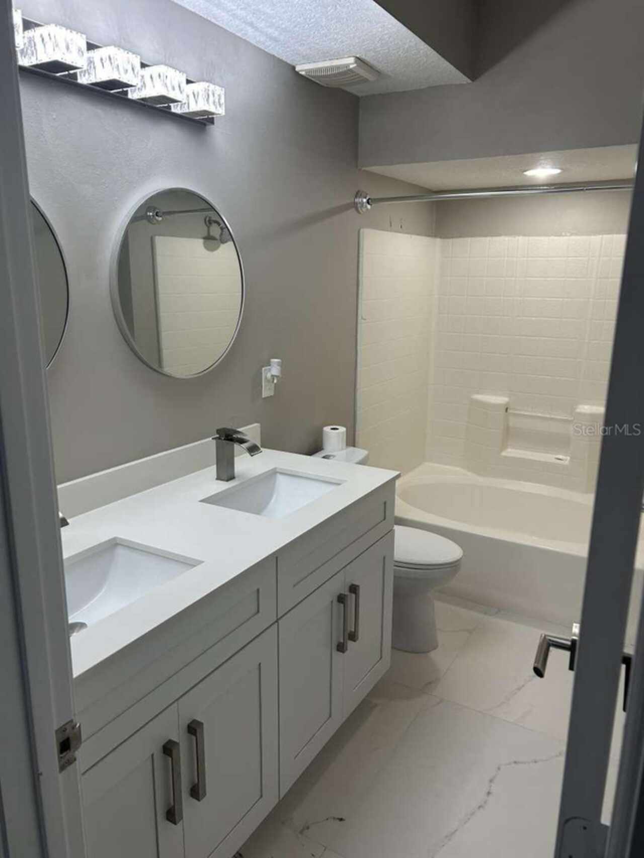 Totally Renovated 3-Bedroom, 3.5-Bath Corner Townhome with Garage in Gated Community of VILLANOVA. Experience the perfect blend of modern luxury and thoughtful design in this beautifully remodeled corner-unit townhome featuring 3 spacious bedrooms, 3.5 updated bathrooms, and a 1-car garage. With two primary suites, including one with a private balcony, this residence offers flexible living arrangements ideal for families or guests. Step inside to discover a brand-new kitchen complete with soft-close, solid wood frameless cabinets, quartz countertops, luxury vinyl flooring, and all-new stainless steel appliances. The open-concept living space boasts textured ceilings, 5.5” modern baseboards, and LED recessed lighting with ceiling fans in every bedroom for year-round comfort. Each bathroom has been completely renovated with sleek finishes and modern fixtures, creating a spa-like atmosphere throughout the home. Enjoy the convenience of a garage and the benefits of living in a secure, well-maintained gated community offering 24-hour security, a clubhouse, resort-style pool, and access to top-rated schools, Low Hoa. Don’t miss the opportunity to own this move-in ready home that combines style, comfort, and location.