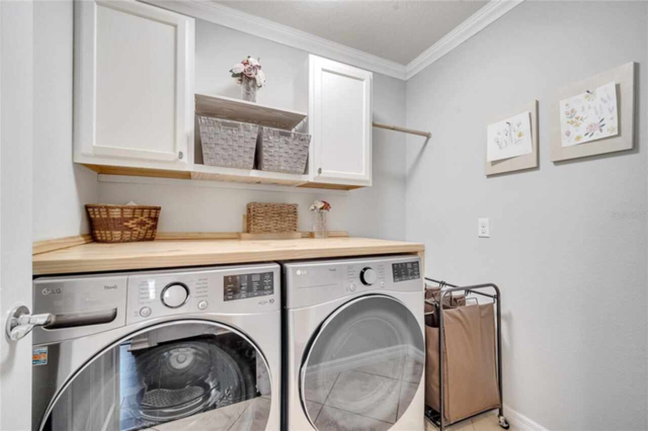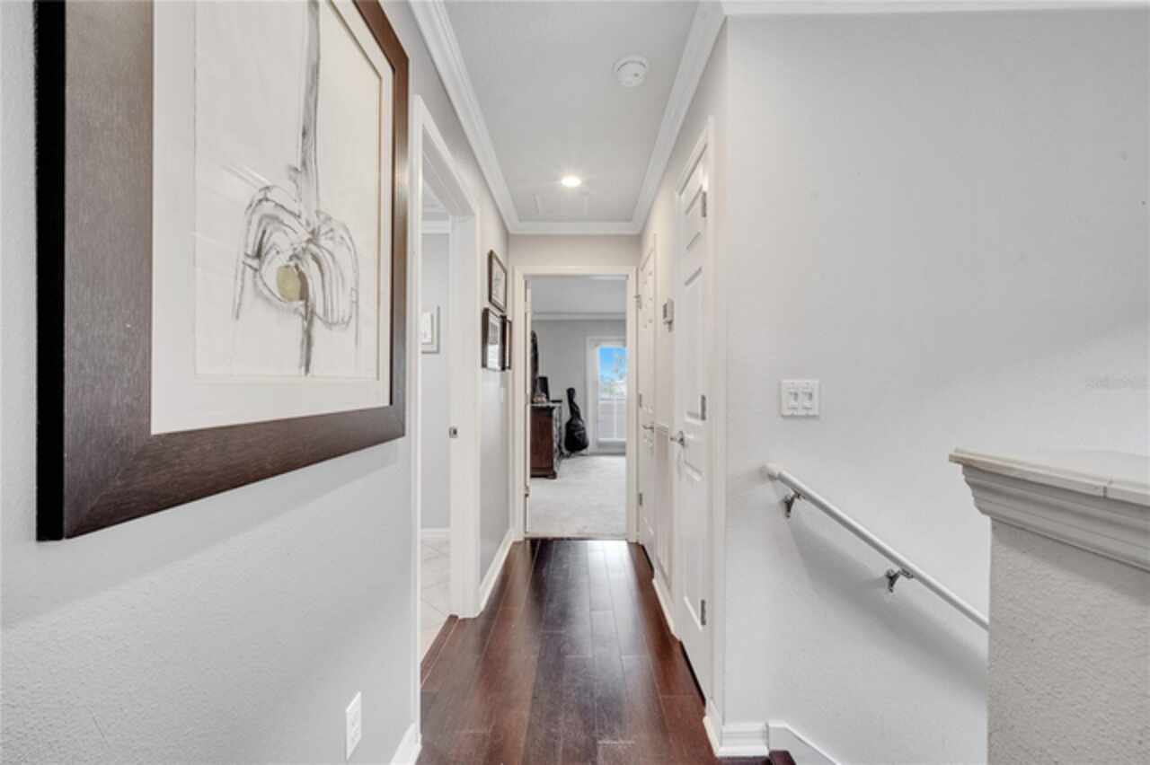 Situated in the desirable community of VillageWalk at Lake Nona, this Cayman II model townhome by DiVosta Homes is ready for its new owners. As you enter, you'll be greeted by elegant tile flooring, crown molding throughout, and timeless plantation shutters that add charm and sophistication to the first floor. The spacious living room features a striking stone accent wall and flows seamlessly into the gourmet kitchen, which boasts granite countertops, stainless steel appliances, and ample cabinetry, perfect for both everyday living and entertaining. A guest bedroom on the first floor is highlighted by rich bamboo flooring and offers private access to a covered patio, along with a convenient full guest bathroom. Sliding glass doors in the living area open to a generously sized paver patio, ideal for outdoor gatherings and connecting you to a detached double-car garage. Upstairs, the stone feature wall continues along the staircase, enhanced by bamboo steps and decorative iron railing. The second floor includes a newly carpeted primary suite, featuring a private balcony for morning coffee or evening relaxation, and a secondary primary suite offers a dedicated sitting area and private bathroom, and walk-in closet. The updated laundry room is thoughtfully designed with a custom folding counter, built-in cabinetry for extra storage, and a hanging rod for delicates. This home offers both comfort and functionality, with carefully selected finishes and upgrades throughout. VillageWalk at Lake Nona is a thoughtfully planned master community that provides the ultimate resort-style living. HOA fees cover lawn care, high-speed internet, and cable, ensuring a hassle-free lifestyle. Picturesque bridges and scenic canals wind through the neighborhood, connecting residents to a variety of on-site amenities, including a deli, a gas station, and a vibrant town center. Outdoor enthusiasts will appreciate the lighted walking and biking trails, sports courts, and heated swimming pools, while the 24-hour fitness center promotes an active lifestyle. Just minutes away is Lake Nona Town Center, a dynamic 100-acre open-air destination featuring public art displays, upscale shopping, luxurious hotels like the iconic Lake Nona Wave Hotel, and Boxi Parkāan engaging, family- and dog-friendly venue with a mix of restaurants and bars, beach volleyball courts, and a live entertainment stage. Families will benefit from access to top-rated schools, and the community's prime location near Medical City and Orlando International Airport ensures easy travel. World-famous attractions such as Disney, SeaWorld, and Universal Studios are just a short drive away.