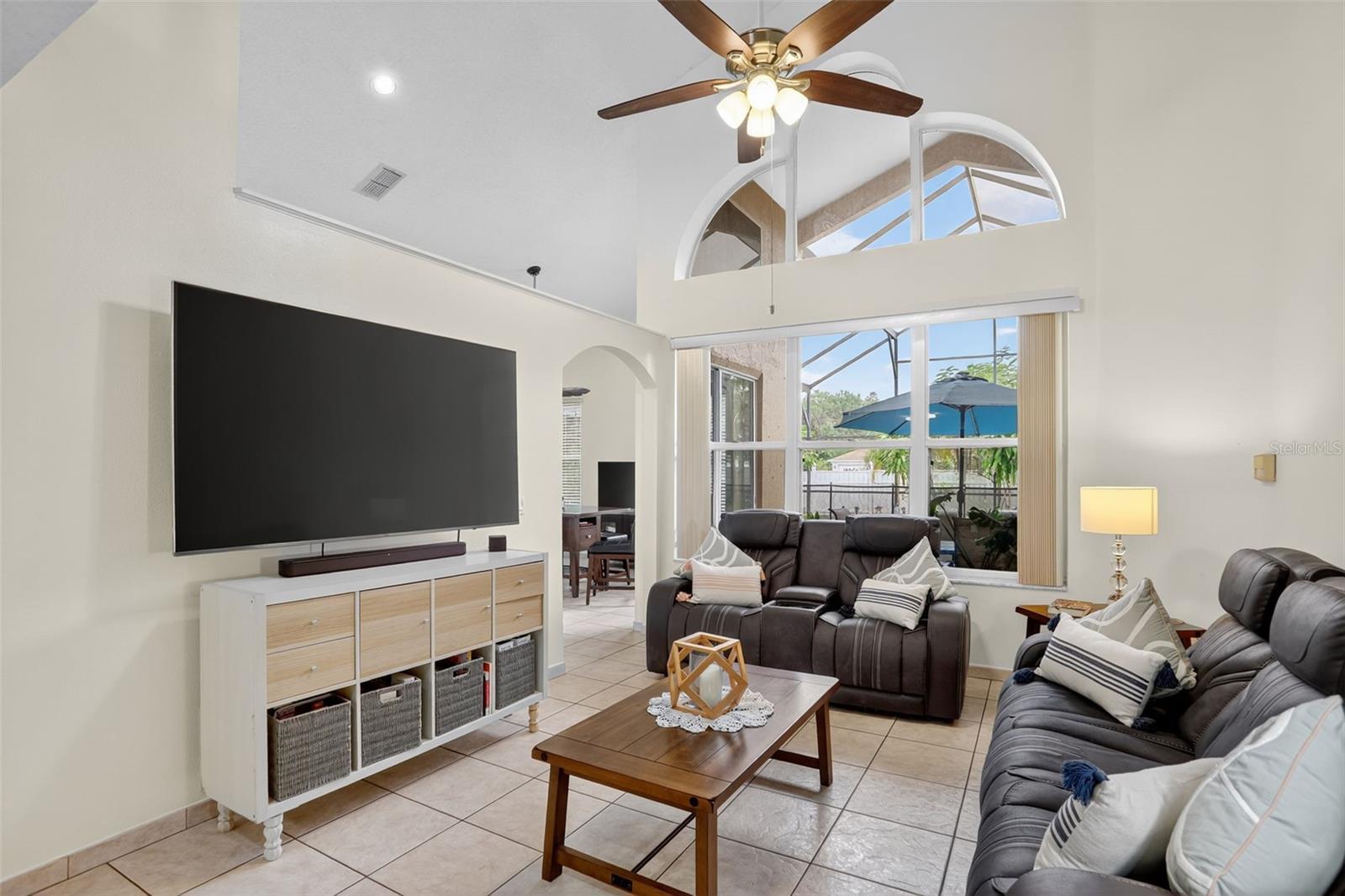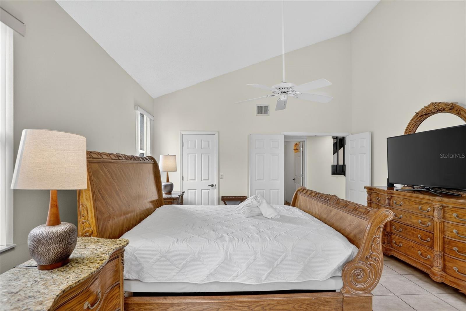Cathedral Ceiling(s), Ceiling Fans(s), High Ceilings, Living Room/Dining Room Combo, Primary Bedroom Main Floor, Thermostat, Walk-In Closet(s)
