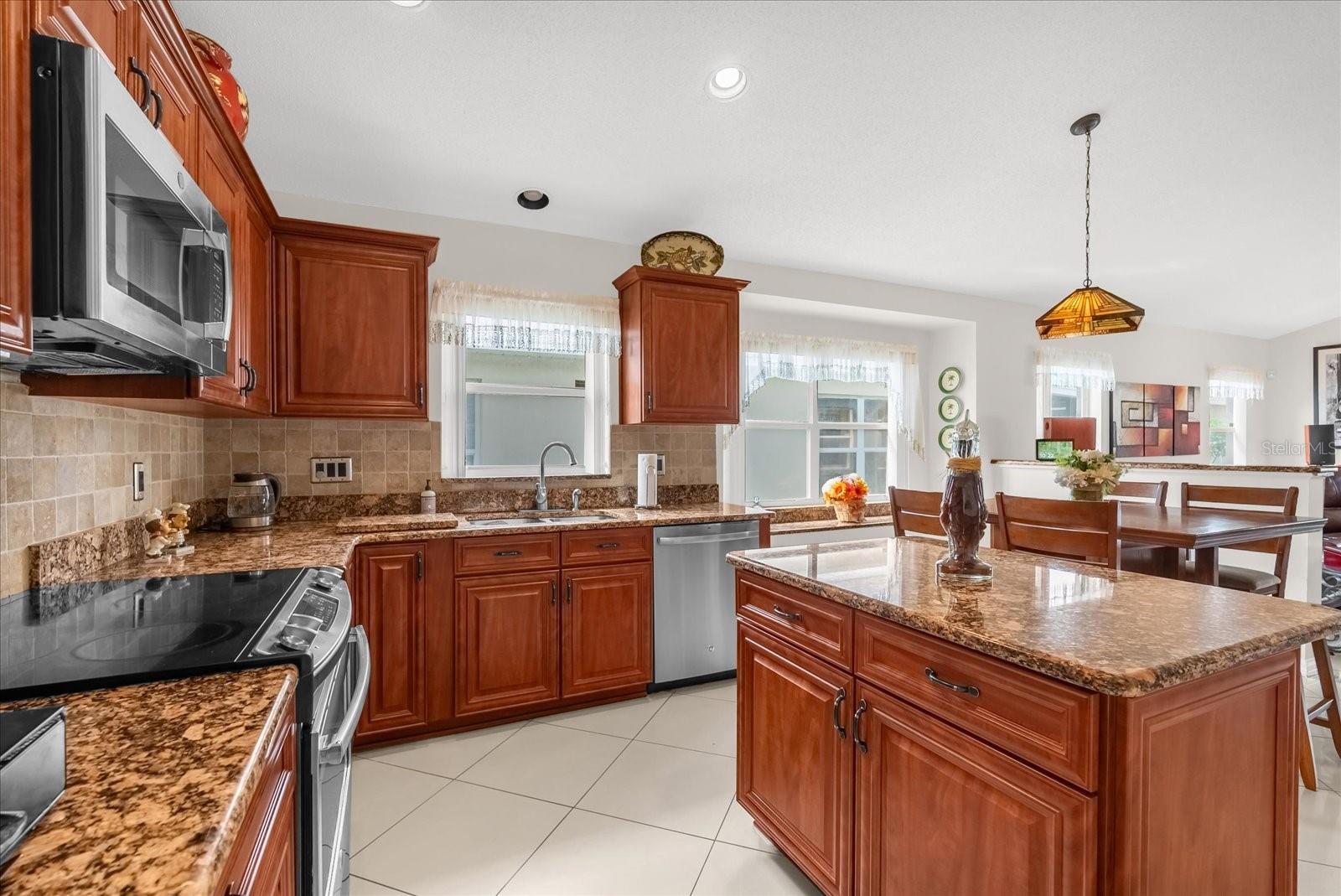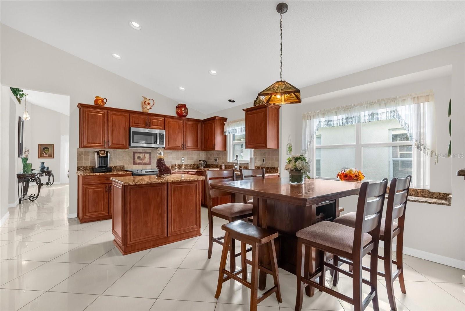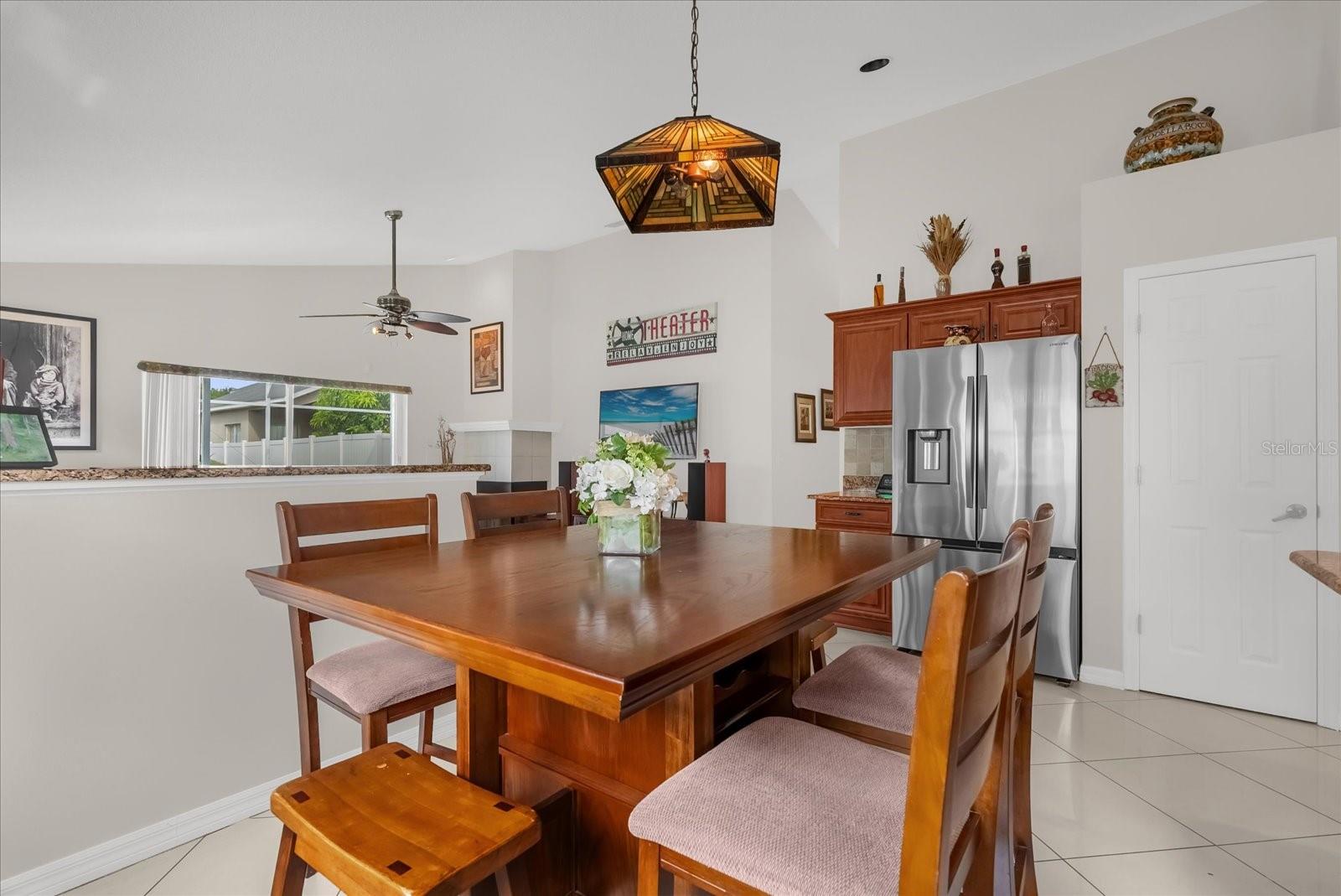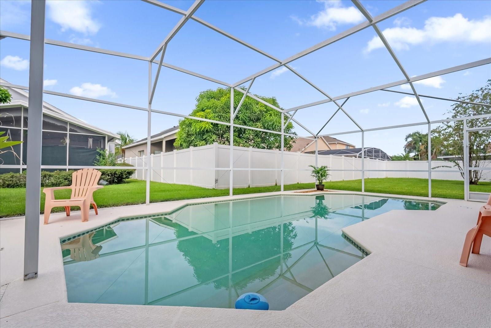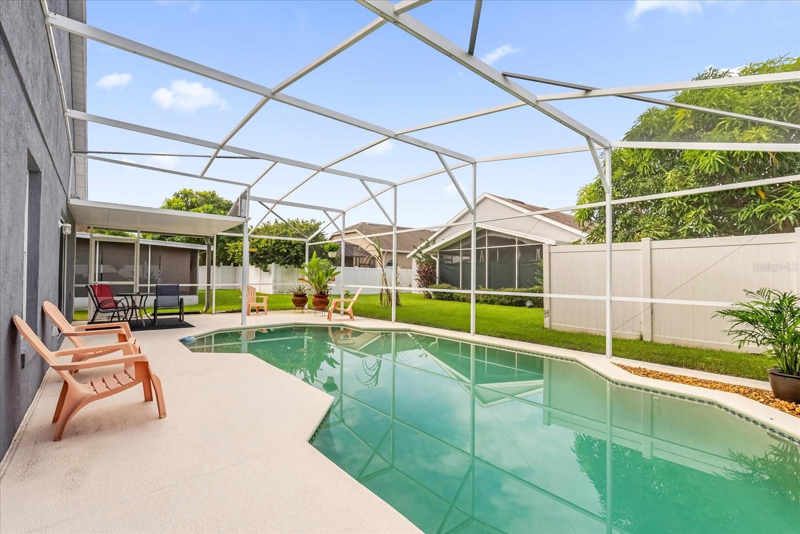 Step into this move-in ready gem and be greeted by elegant formal living and dining rooms, perfect for entertaining. The upgraded kitchen boasts GE stainless steel appliances, granite countertops, a center island, and soft-close drawers—a true chef’s delight. The open layout flows into the family room, complete with 5.2 sound system wiring and an abundance of natural light. Retreat outdoors to your private screened pool, offering the perfect balance of relaxation and entertainment. This 4-bedroom, 2-bath home features laminate flooring in all bedrooms and 20x20 ceramic tile throughout the main living areas. Best of all, with an accepted offer, this home is available partially furnished for a seamless move-in experience.