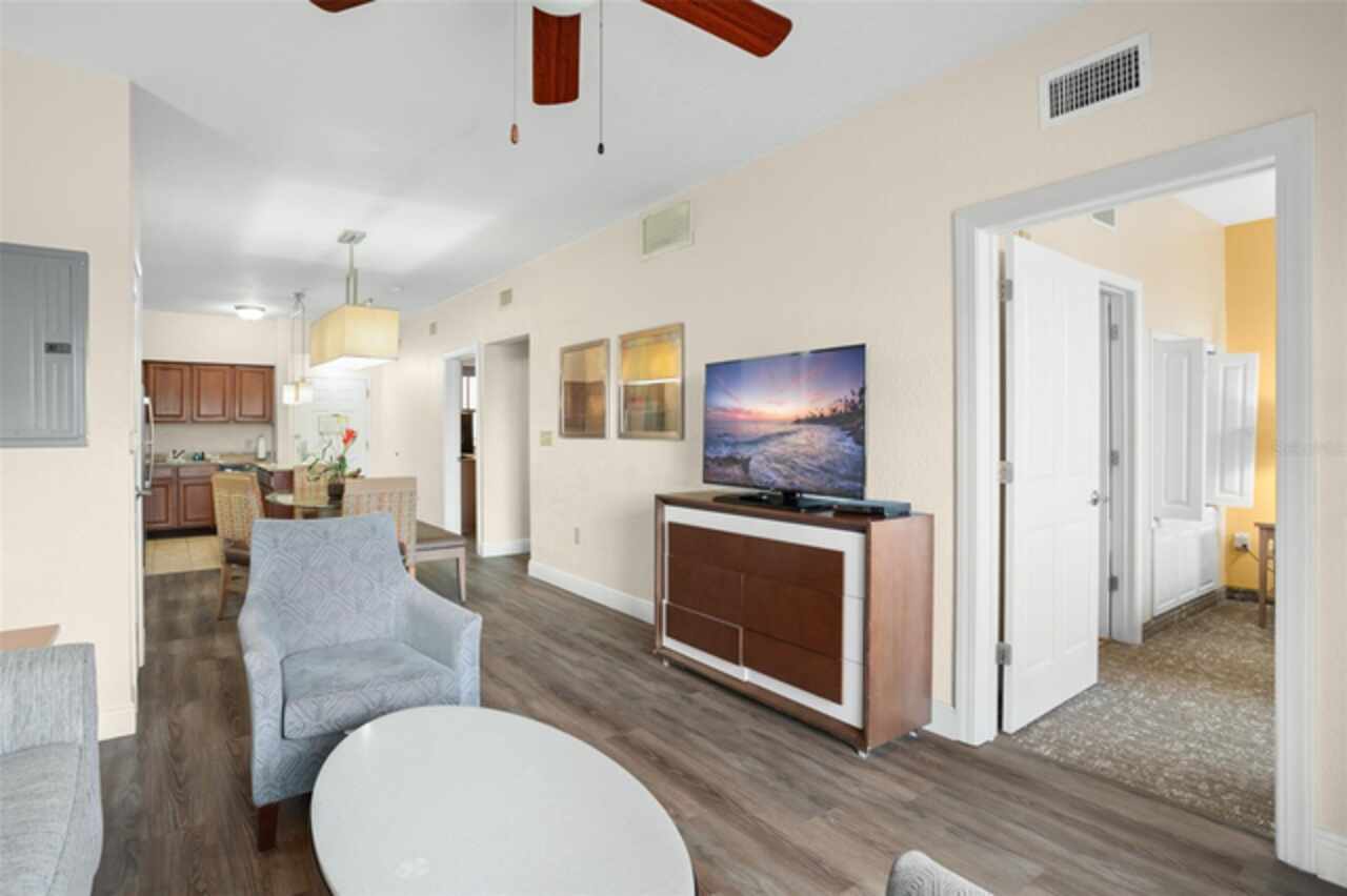 Welcome to this beautifully appointed fully furnished fourth-floor condo located in the highly sought-after Floridays Resort in the heart of Orlando. Perfect for vacationers and investors alike, this two-bedroom unit offers a blend of comfort, luxury, and convenient location close to the resort amenity area. The primary bedroom is a true retreat, featuring a spacious layout, a relaxing jacuzzi tub, and a walk-in shower for a spa-like experience. The guest bedroom includes two full beds and flat screen television. The condo boasts a modern kitchen with full-sized island, perfect for preparing meals or snacks after a day of exploring. The adjacent dining room offers a comfortable gathering space, while the private balcony invites you to enjoy your morning coffee or evening cocktail. Other amenities include a stackable washer/dryer and lockable owners closet. Floridays Resort is renowned for its incredible amenities, including a heated zero entry pool with a dedicated children’s splash area, jacuzzi hot tub, poolside bar/grill, a fun-filled arcade, sand beach area, room service, valet laundry service, concierge, in-room WiFi and a welcoming, well-appointed check-in area. Located just minutes from Walt Disney World, SeaWorld, International Drive, and all the excitement Central Florida has to offer, this condo is perfectly situated for experiencing the best of Orlando. Whether you’re looking for a vacation home or a short-term rental investment, this Floridays condo offers it all! Don’t miss your chance to own a piece of paradise in one of Orlando’s premier resorts!