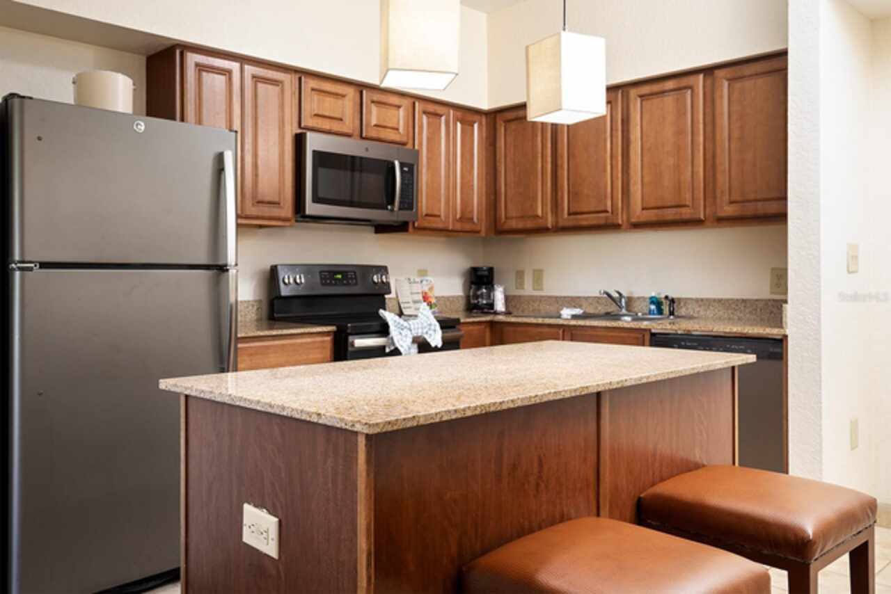 PRICE REDUCTION $268, 900!! BEAUTIFUL LUXURY CONDO HOTEL 3BD/2BT, 4th FLOOR, CORNER UNIT! FULLY FURNISHED AND REBURBISHED! Great Vacation getaway or Investment property. Enjoy home comforts with the luxury of hotel amenities. Trip Advisor rates Floridays as one of Orlando's top family luxury resorts. Open concept , single story with a lot of wonderful natural light. Extra windows in the Primary bedroom, and Private balcony facing west to enjoy enchanting sunsets. In 2018 through 2020 the condo underwent full refurb with brand new Updated Kitchen with island: Stainless steel appliances, new contemporary manufactured wood flooring in living room, and dining room, and brand new carpet in all three bedrooms, and new AC unit installed in 2020. Working remotely enjoy the comfort of a granite study area. Solid granite countertops in Kitchens and bathrooms, a Jacuzzi in the master bedroom, and 4 smart TVs. Floridays welcomes you into a Grand Lobby providing on-site management and concierge services. Community features a Club house, two heated Tropical pools for year-round relaxation, spa, a fully equipped fitness center, convenience store, arcade, Palm cafe, and bar, serving Starbucks coffee, Conveniently located near Florida's Convention Center, Orlando's Premium Outlet malls, the Disney attractions, with SeaWorld and Universal studios within a few minutes away north on International drive. Free shuttle to Disney, Universal, and SeaWorld. Int Drive Trolley to all the shops and restaurants. The Management company manage income for the investor, taking care of everything for the owner, and investors can also treat the unit as their second home. Hurry! Won't Last!!! CALL TODAY
