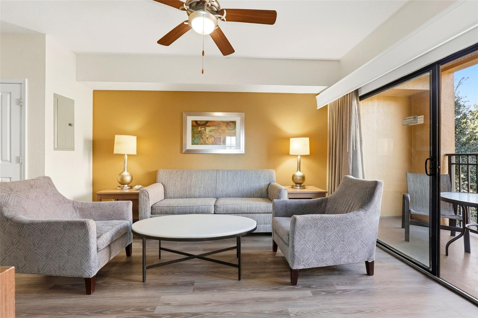 An incredible opportunity to own your own piece of paradise, just minutes from Orlando’s world-famous theme parks. This turn-key, fully furnished third-floor unit offers stunning views and a screened-in balcony — the perfect spot for morning coffee or an afternoon cocktail. The open-concept layout is ideal for entertaining, while the spacious main bathroom features a jetted tub and walk-in shower for ultimate relaxation at home. Floridays Resort has just been honored with the 2025 TripAdvisor Travelers’ Choice Award, and it’s easy to see why. The lush five-acre resort grounds include a spectacular main pool with water playscape and poolside bar, a second serene pool with gazebo and lake views, a fully equipped fitness center, and a game room for endless entertainment. Come experience it for yourself — you may never want to leave. The Association Fee includes: ground maintenance, insurance, water, cable and internet. Approved for short-term rental or use as a vacation home only.