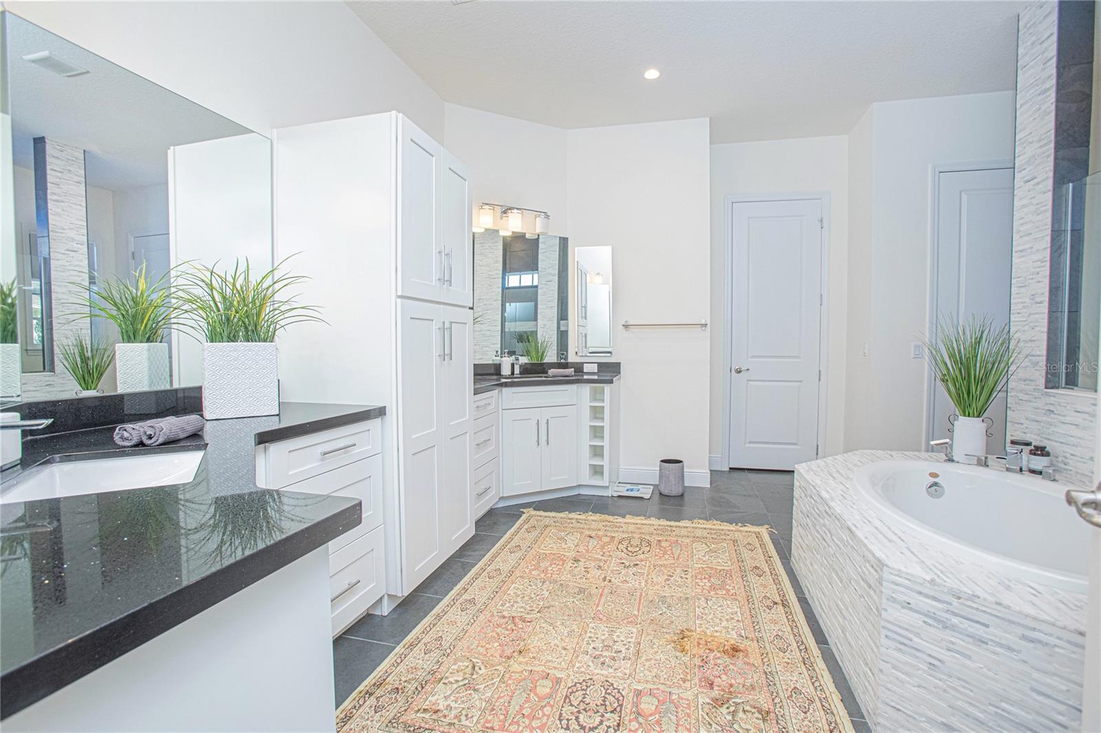Under contract-accepting backup offers. Welcome to the epitome of refined living – a true architectural marvel seamlessly blending luxury, comfort, and entertainment against the backdrop of breathtaking water views within the gates of the Preserve at Laureate Park. This enchanting two-story residence, spanning 5, 536 sq.ft., encompasses FIVE bedrooms and SIX and ONE HALF bathrooms, delivering an unparalleled fusion of space and sophistication. Built on a sprawling .61 acre lot on a private cul-de-sac this masterpiece offers upgrades and panoramic views from every room. Upon crossing the threshold, the first-floor living spaces captivate with exquisite porcelain tile flooring, setting the stage for an interior designed with meticulous attention to detail. The kitchen, a haven for culinary enthusiasts, is adorned with granite countertops and premium finishes that redefine the heart of the home. The seamless transition from room to room is guided by the brilliance of shining tiled flooring, while two-story ceilings with strategically positioned windows invite an abundance of natural light, creating an atmosphere of warmth and openness. Explore the intelligently designed spaces, revealing a purposeful home office, a formal living room seamlessly connected to a formal dining room, and a chef's dream kitchen. The culinary haven features an island, granite counters, a stylish tile backsplash, a built-in convection oven, microwave, gas grill cooktop, pantry, and upgraded stainless steel appliances. The dining and breakfast dinette effortlessly connect to the kitchen, facilitating the serving of meals with ease. The spacious family room, featuring a gas fireplace, provides a touch of coziness, while the two primary suites, including one on the first level, offer flexibility for accommodating in-laws or guests. The en-suites are a testament to luxury, featuring stone-tiled surround soaking tubs, walk-through showers behind designer walls, split double sink vanities, and ample cabinet space. Practicality meets luxury with designer walk-in closets. Ascend to the second floor, accessed via two separate wood tread staircases, to unveil a grand bonus room customizable as a media room, game room, or additional family space. French doors open to a covered balcony, extending the living space and offering panoramic water views. Four additional bedrooms, including the second-floor primary with an amazing window wall gives a magical view of the lake in particular at sunrise and sunset. The artificial fireplace gives a cozy feel on cooler winter nights plus sun-reflecting foils on large windows provide UV and temperature control. The interior aesthetic is curated with a clean and classic color palette, creating a warm and inviting ambiance. Technological enhancements include a central Sonos sound system with six zones, each app-controlled, and strategically placed ceiling speakers.Transitioning to the exterior, the expansive backyard beckons relaxation and entertainment. The homeowner's vision materializes with a salt water pool and spa, expansive decking, water and fire features, a poolside seating area with a fire pit, a covered patio with built-in summer kitchen and remote-controlled screens. The freeform pool design optimizes space, leaving open green areas for pets and family to enjoy. A privacy hedge encloses the backyard to enjoy the stunning lake views.The three-car garage is not just utilitarian but a storage marvel with custom cabinets. Make your appointment to see today!