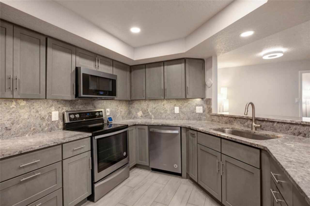 Beautifully updated 2-bedroom, 2-bathroom condo in the highly sought-after gated community of Lake Pineloch Village in the heart of SODO. It is unlikely that you will find another unit of this quality and upgrades. Building roof has just been replaced and painted in May 2025. The entrance has a with a private courtyard and storage which is ideal if you have a dog. The property features tile floors throughout, a updated chef's kitchen with soft close cabinets, granite countertops, and new appliances, as well as a wall pantry with pull out drawers, new air conditioning unit, new water heater. and updated plumbing and new electric panel. An enclosed patio and wide-open living space are visible from the kitchen. Both bedrooms have custom closet storage, and both bathrooms have new vanities with soft close cabinets, quartz counter tops, new showers with beautiful modern tile work, new toilets, and LED mirrors. Bathrooms in the master bedroom and the guest bathroom feature walk-in showers, stackable washers and dryers, and large walk-in showers. Additionally, all outlets have been replaced as well as new fixtures, fans, and water heater. There are beautiful tree-lined streets with mature landscaping within short distance of downtown Orlando and the Orlando Regional Medical Center. There are also restaurants and shopping facilities in SODO. A 24-hour guarded gated community, Lake Pineloch boasts a private boat ramp and dock, two resort-style pools, tennis and pickleball courts, and cable and internet are provided by the homeowners' association. Among the services provided by the Condominium Association are exterior maintenance, trash removal, pest control, cable television, and high-speed internet access. Zoned for top-rated schools, this home offers the perfect blend of style, comfort, and convenience in a prime Orlando location. Now is your chance to own the best unit in the entire community. Its central location is just minutes from downtown Orlando and close to major highways, including I-4, 408, and 417. Additionally, the community is conveniently located near hospitals, trauma centers, and highly rated schools, including Blankner K-8 and Boone High School. . Schedule a showing as soon as possible!