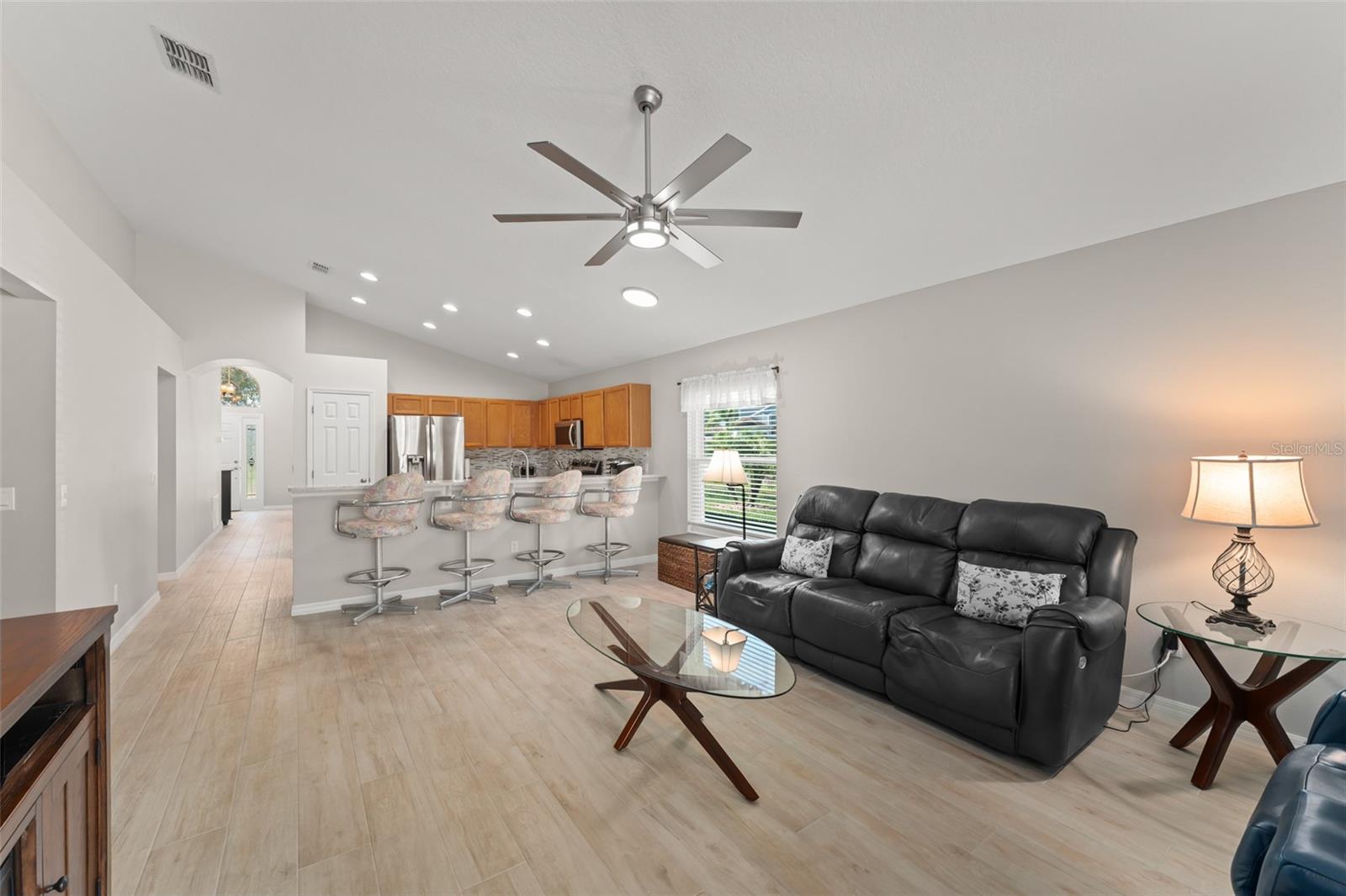 Ceiling Fans(s), Eat-in Kitchen, High Ceilings, Kitchen/Family Room Combo, Living Room/Dining Room Combo, Open Floorplan, Split Bedroom, Stone Counters, Walk-In Closet(s)