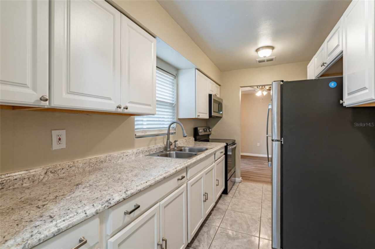 Welcome to this charming 1-story home, offering a comfortable and functional layout with 3 bedrooms and 1 bathroom. The inviting living space features stylish tile and vinyl flooring throughout, providing both durability and ease of maintenance. The kitchen is a true highlight, with pristine white cabinetry, sleek stainless steel appliances, and stunning stone countertops that create an elegant atmosphere. Step outside to enjoy the fully fenced backyard, perfect for relaxation or outdoor gatherings on the back patio. With a 1-car carport and additional driveway space for a second vehicle, parking is never an issue. This home also offers plenty of storage options, making it ideal for families or individuals seeking convenience and comfort. Located in a peaceful neighborhood, this property is just waiting to welcome you home. Don't miss out on the opportunity to own this delightful gem. Schedule your showing today to see all this home has to offer!