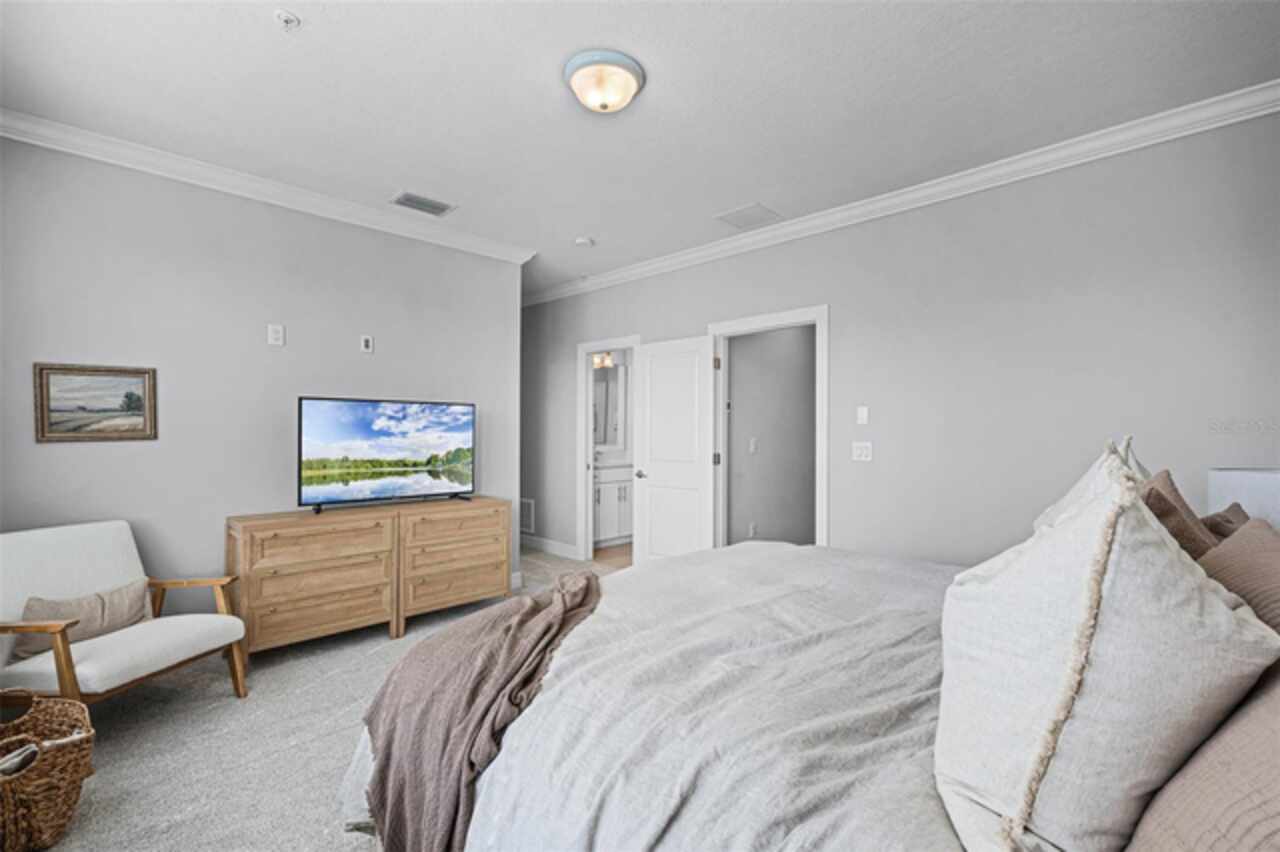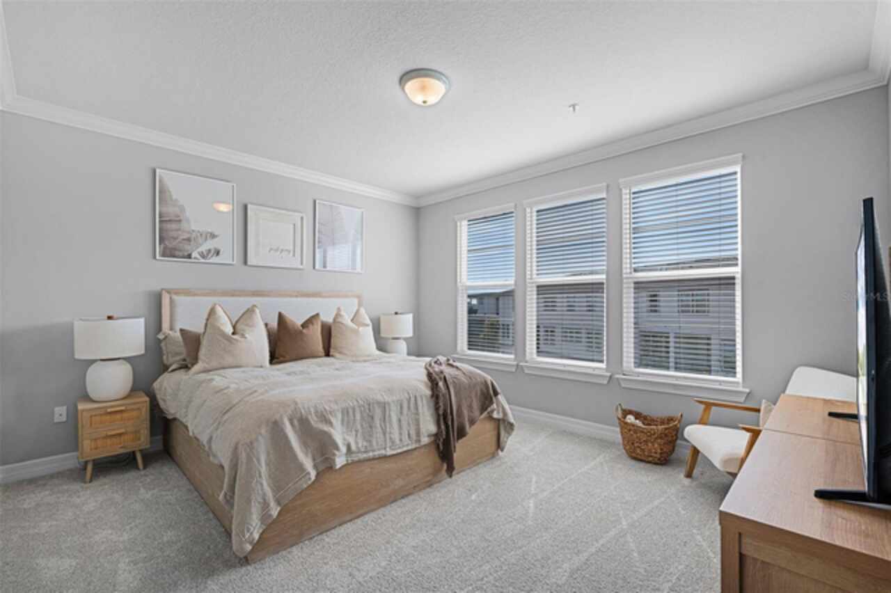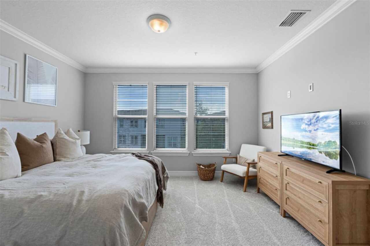 FULLY UPGRADED, LAUREATE PARK LUXURY Townhome in a perfect location at the center of all the community amenities. This rare townhome has 3 bedrooms with 3 private on-suite bathrooms and a guest half bath. The open floor plan has tall ceilings and plenty of windows that flood every room with natural light. Gorgeous design with high-end finishes throughout, including an oversized quartz island, upgraded appliances, custom tile backsplash, modern tile floors, plush new carpeting, and two renovated bathrooms. The spacious primary suite includes walk-In closets, a SPA bathroom featuring FRAMELESS SHOWER, double sinks, shaker style cabinets, quartz counters, upgraded faucets and hardware, and a rain shower head. This home is a MUST SEE and in a Prime location - walking distance to the pools and Canvas Restaurant! Laureate Park is Lake Nona's premier community which includes 1GB fiber internet, resort style pools, fitness center, many beautiful parks, lakes, 40% green space and A-rated schools. Nearby are Lake Nona's Medical City, Town Center, USTA, KPMG, 471 expressway and plenty of retail shopping.