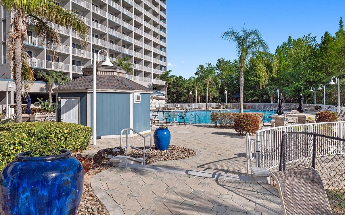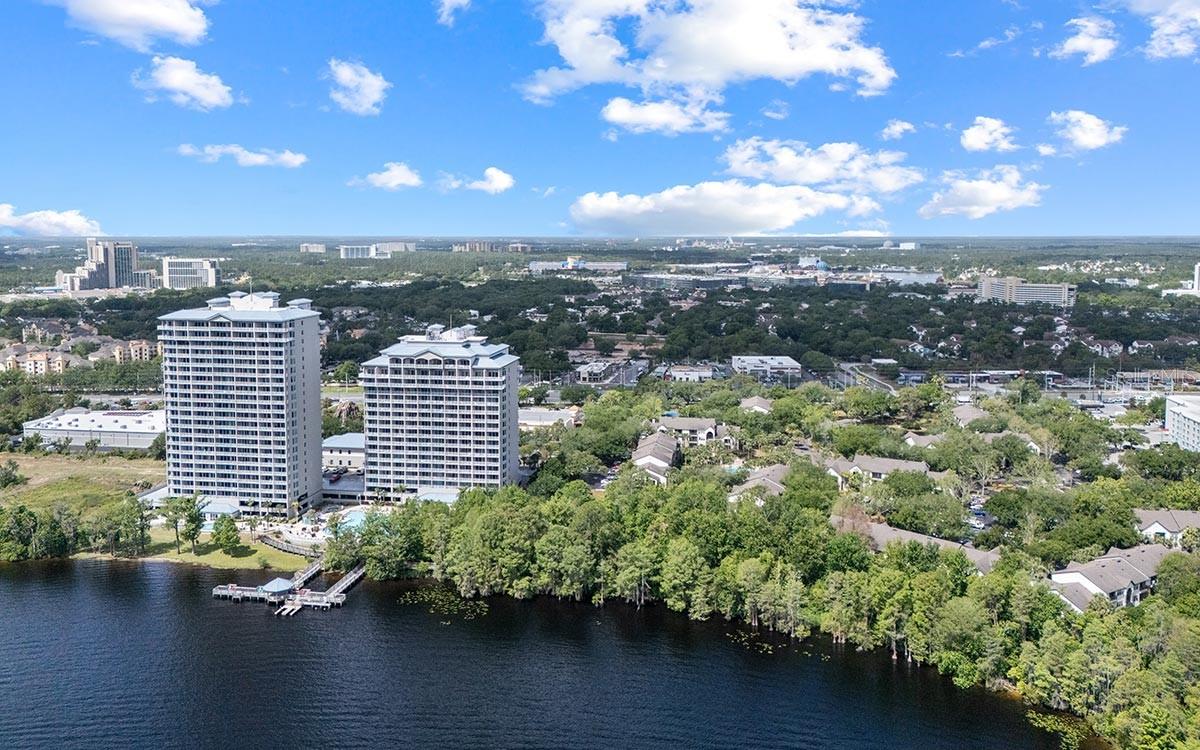 Welcome to Blue Heron Beach Resort, Orlando’s iconic high-rise nestled on the shores of Lake Bryan, approx 1 mile to Disney entrance. This awe-striking corner unit offers the perfect blend of resort living, short-term rental income, and true lock-and-leave convenience in one unbeatable address. Step inside and immediately feel the expansive lake views. Abundant natural sunlight illuminates the bright open layout. This is one of the rare units featuring 2 private balconies each on opposite ends of the unit. One overlooking the shimmering waters of Lake Bryan where moonlight evenings and breathtaking sunrises over the lake are daily experiences. The other faces the Disney Parks with sunsets and fireworks views that rival any in the vicinity. Fall asleep to the views of Disney fireworks in the second bedroom as well. Two additional bunk beds in the hallway and a pull-out sofa allow the unit to comfortably sleep 8. Recent updates include: refreshed flooring, updated baths, and a newer hot water heater. The property has a strong rental history. The HOA covers water, sewer, cable, internet, and full access to all resort amenities. Owners and guests enjoy: - Two heated, resort-style, lakeside pools - Lush tropical landscaping with walking paths - 24-hour fitness center - Arcade Room - Boardwalk + private boat dock on Lake Bryan - Direct access to Lake Bryan for jet skis and water sports - Minutes to Disney Springs, Epcot, I-4 and host of restaurants and eating venues. If you’ve been searching for a luxury condo with excellent income potential and a true resort lifestyle, then you've found what you've been looking for. Note: Seller is Agent