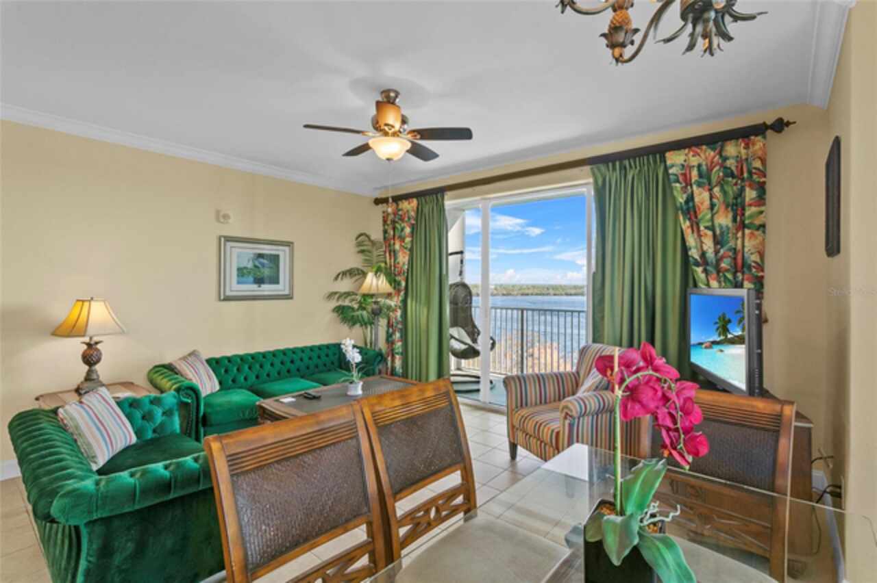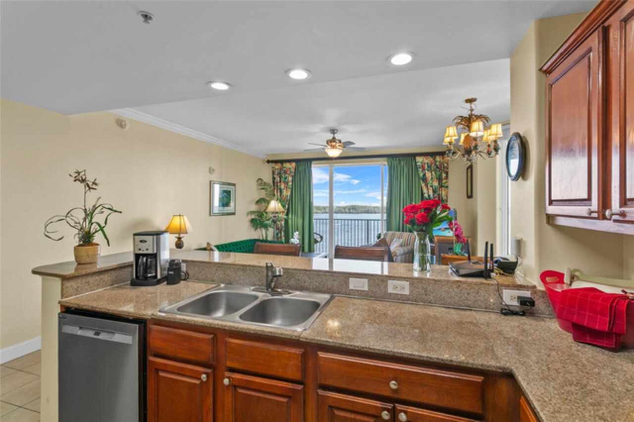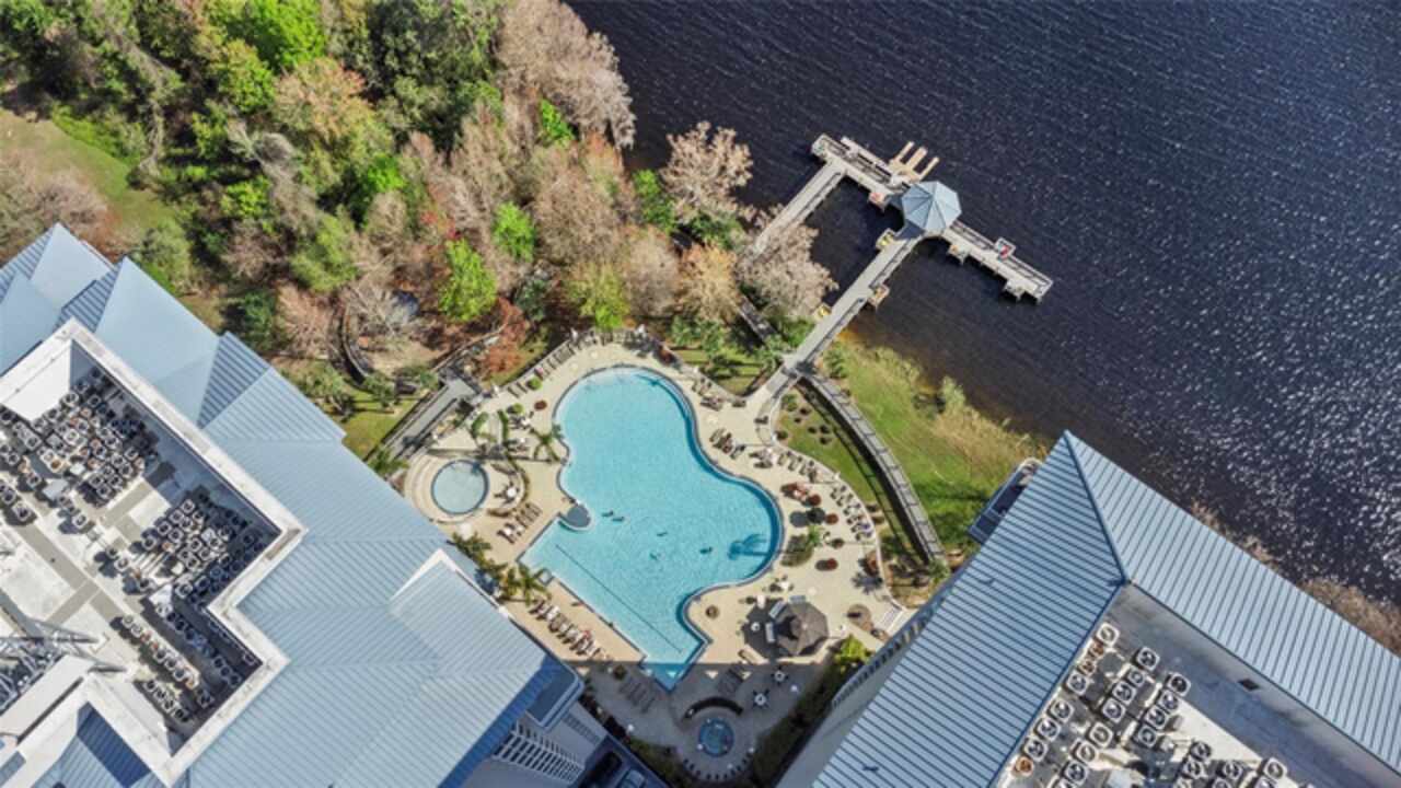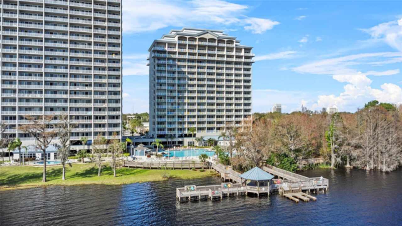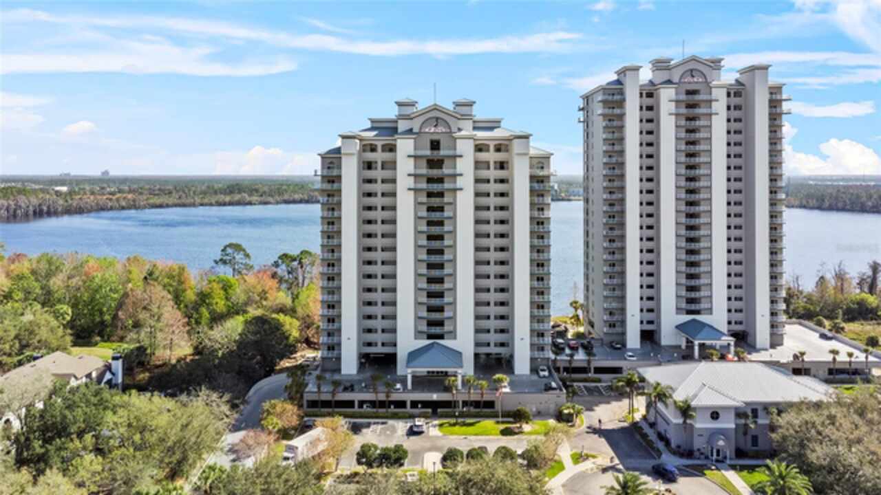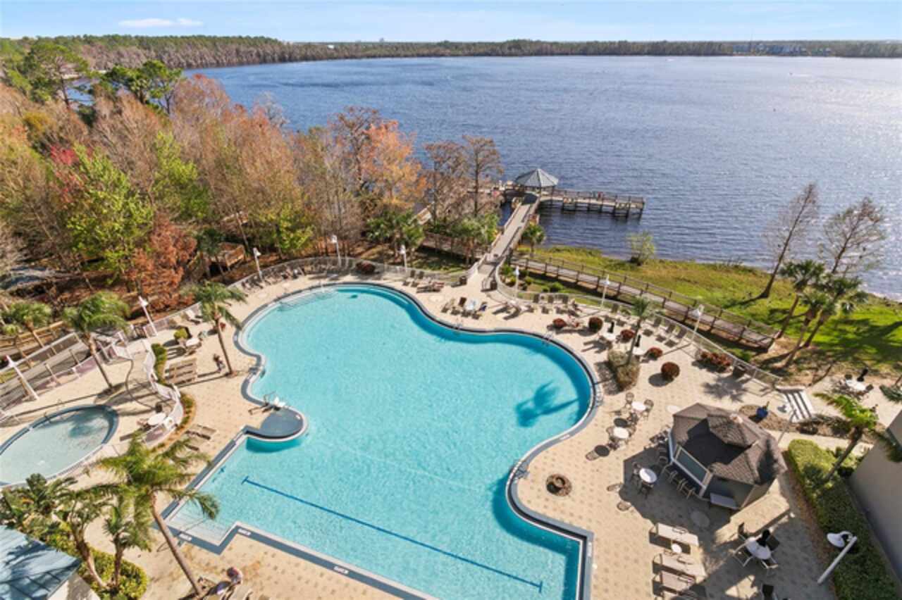 Experience resort-style living at its finest in this stunning 6th-floor, 2-bedroom, 2-bathroom condo with breathtaking Lake Bryan views from your private balcony! Wake up to serene lakefront scenery and end your evenings watching the Disney fireworks from your primary bedroom balcony. This fully furnished, open-concept unit offers a spacious layout with a storage closet, modern finishes, and elevator access for convenience. Located in a gated, amenity-packed community, you'll enjoy access to a boat dock, tiki pool bar, resort-style pool, hot tub, kiddie pool, arcade room, two fitness centers, dog walk area, and covered parking. Spend your days fishing, canoeing, or launching a pontoon or ski boat right from the dock! Perfectly situated just minutes from Disney World, the airport, International Drive, shopping, and major attractions, this one-of-a-kind condo-hotel is the only one in the area offering unmatched views and ultimate flexibility—you can live here full-time, rent it out as a short-term vacation rental, or lease it long-term. Don’t miss this incredible investment opportunity! Call today to schedule a private showing.