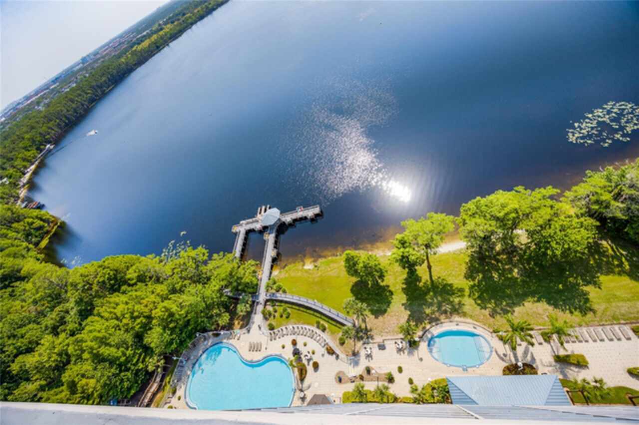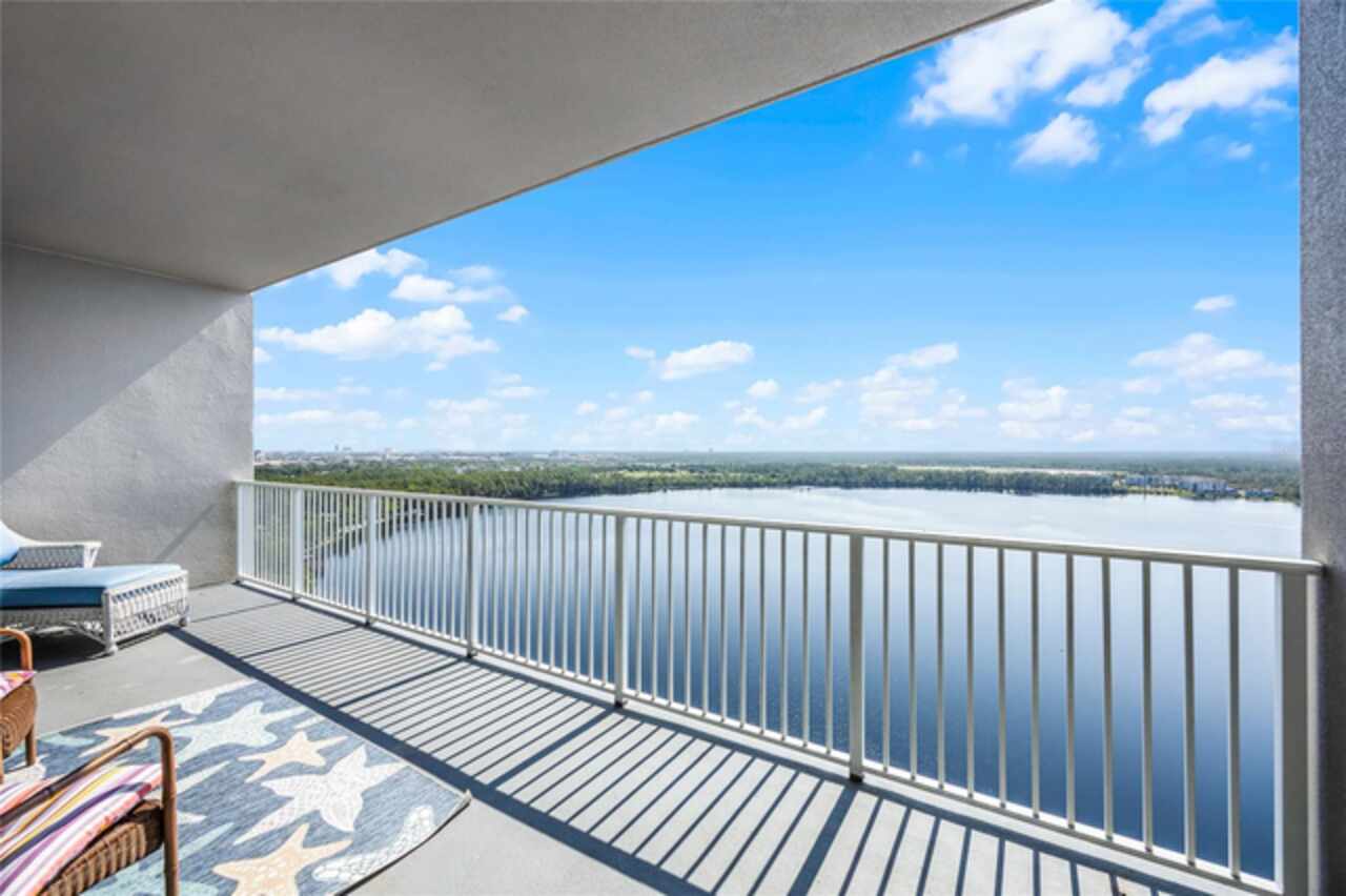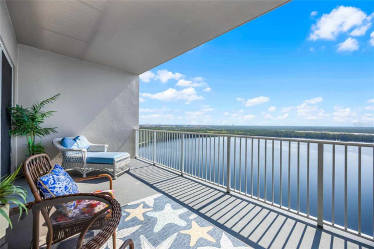 Welcome to your dream retreat in the sky—an exceptional 20th-floor condo at the sought-after Blue Heron Beach Resort, offering panoramic views of Lake Bryan. This beautifully renovated and fully furnished 2-bedroom residence combines the luxury of a penthouse with the comfort of a vacation home. Soaring ceilings and an oversized balcony elevate the living experience, creating a light-filled sanctuary perfect for relaxation or entertaining. Just two miles from the entrance to Walt Disney World, this property is a consistent AirBnB guest favorite, thanks to its unbeatable location and spectacular scenery. Owners enjoy the freedom to self-manage through Airbnb, VRBO, or any preferred property management company, opening the door to strong passive income potential. Blue Heron Beach Resort is rich in resort-style amenities, including two heated pools, a jacuzzi, a modern fitness center, a scenic boardwalk, and a private dock with direct access to the lake. Centrally located near Disney World, Universal Studios, SeaWorld, premium outlet shopping, and Orlando’s most celebrated attractions, this condo is a rare blend of lifestyle, luxury, and investment opportunity.