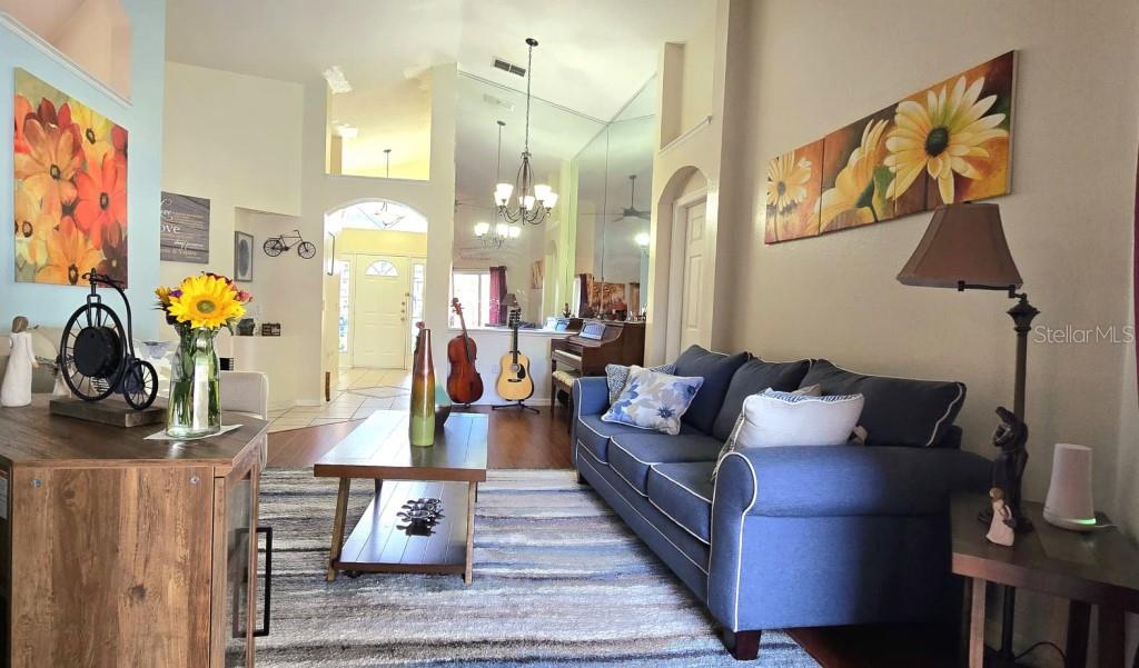 Rare lifestyle opportunity with this upgraded screened private Pool Home located in the top-quality life style Falcon Trace/Hunters Creek community. Located in the golden mile - closed to all the important areas (Airport, Disney, Universal, Sea World, Hospitals, great schools, Malls, etc... ). This great home has been upgraded making sure every single detail gets covered; the Garage has been turned into a Movie Theater/Family Room, adding a storage room so you will have a dedicated space for storing your items, the Roof was replaced on 2020, both bathrooms have been upgraded with top-quality porcelain, vessels, and faucets, vinyl fence all-around installed on 2024, top-quality paint all around the house on 2024, kitchen appliances upgraded on 2024. Large sliding doors open to the pool featuring five jets and a top design, extending your living space and providing ultimate privacy. This exceptional three-bedroom, two-bathroom pool home is perfect for those who desire a luxurious lifestyle with privacy and style at an affordable price. Step inside to find high ceilings, a spacious and effective layout, with a big living area, a beautiful dining room, a cozy second living area, and a gourmet kitchen with high-end stainless appliances and marble countertop.