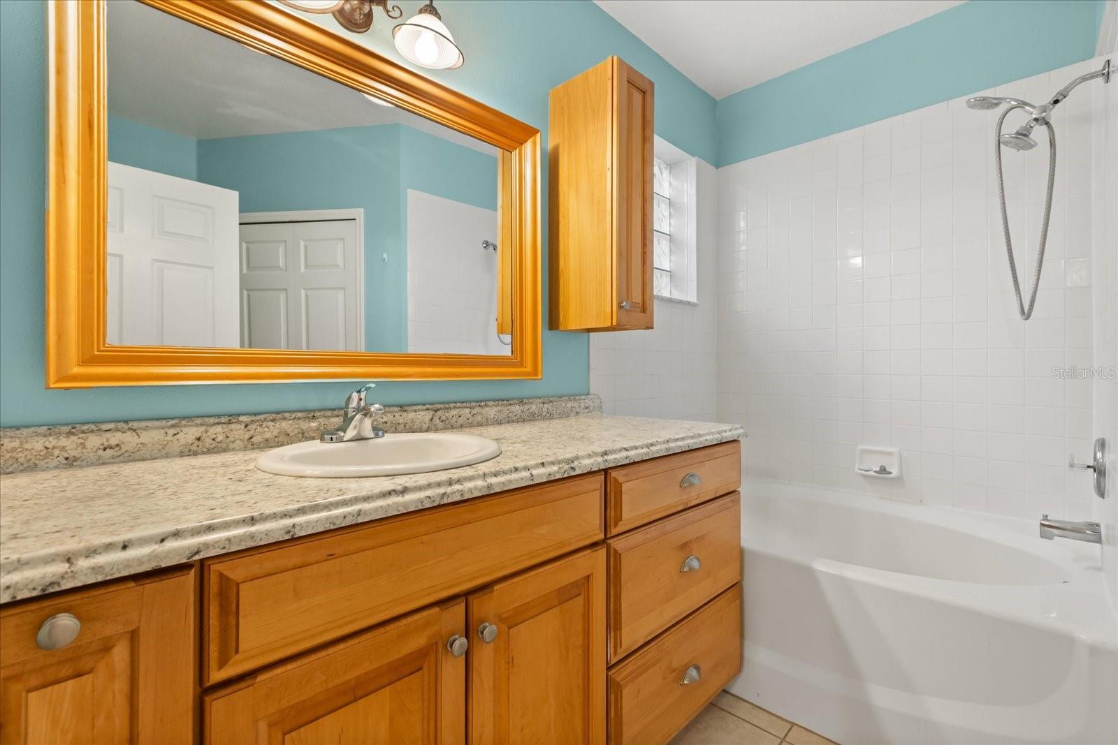 Spacious 4-bed, 2.5-bath split-level home in the Sanctuary — 1, 526 sq ft, 2-car garage. First-floor primary suite with walk-in closet and ensuite (dual vanities, soaking tub, separate shower). Bright kitchen, generous living area, tile & laminate on main level; three carpeted bedrooms upstairs. Laundry conveniently located off the garage. Rear patio with partial landscaping and privacy. Recent updates: roof (2019) and water heater (2023). Community pool & playground; minutes to UCF, shopping, dining, and recreation.