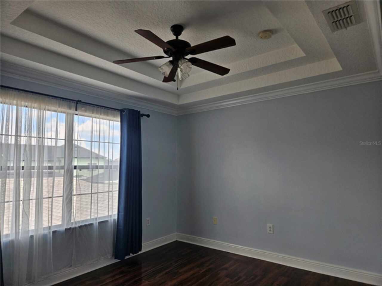 Ceiling Fans(s), Crown Molding, High Ceilings, PrimaryBedroom Upstairs, Solid Surface Counters, Stone Counters, Thermostat, Tray Ceiling(s), Walk-In Closet(s), Window Treatments
