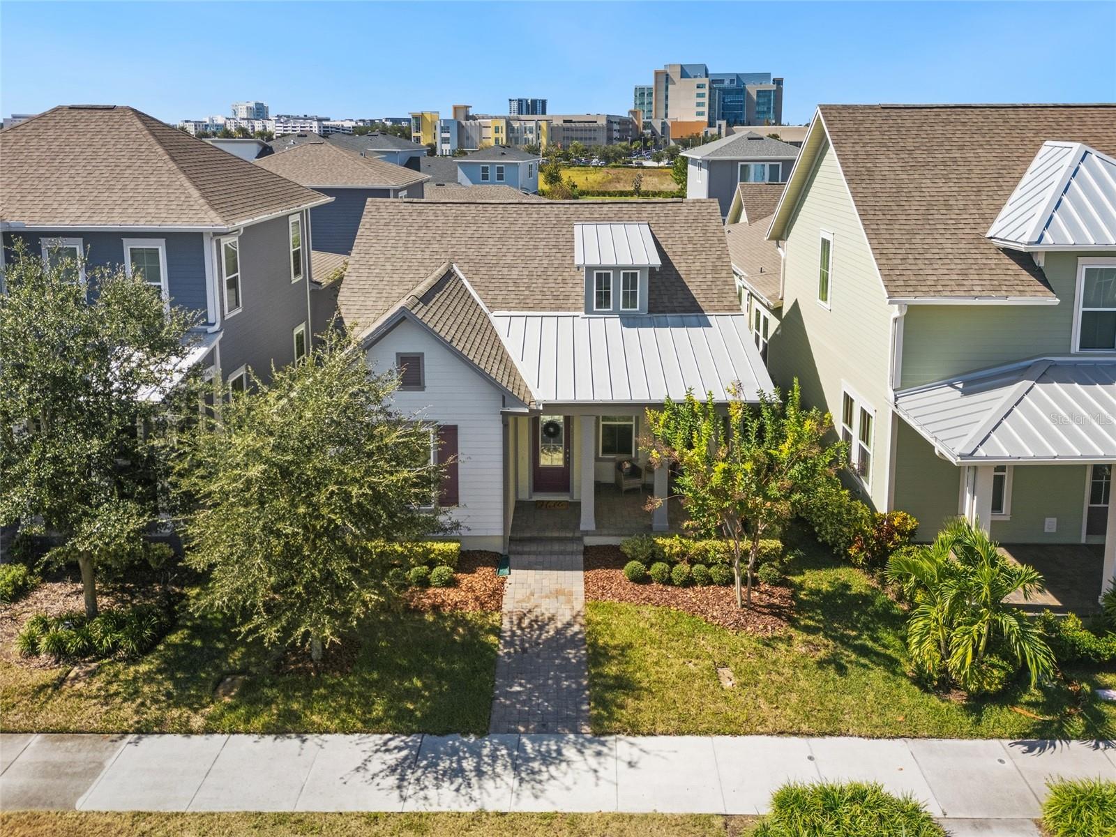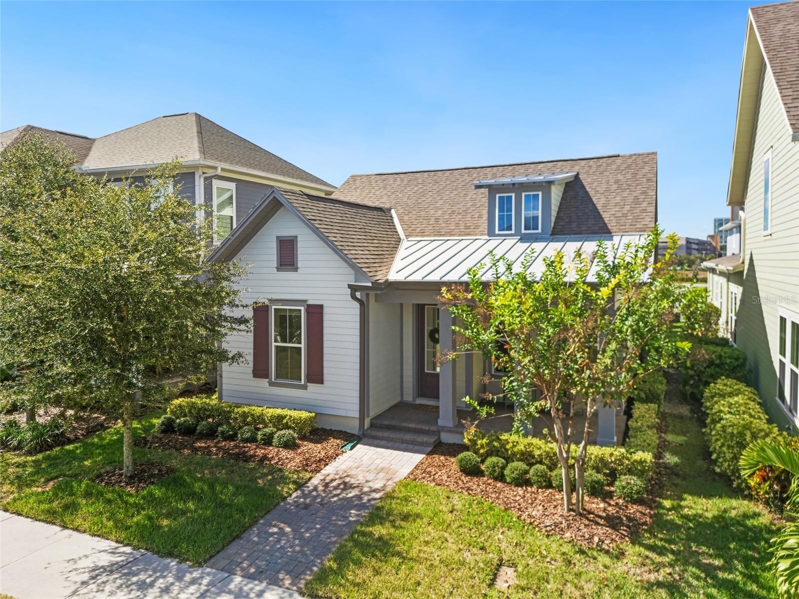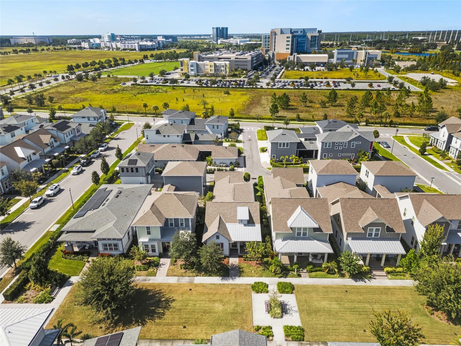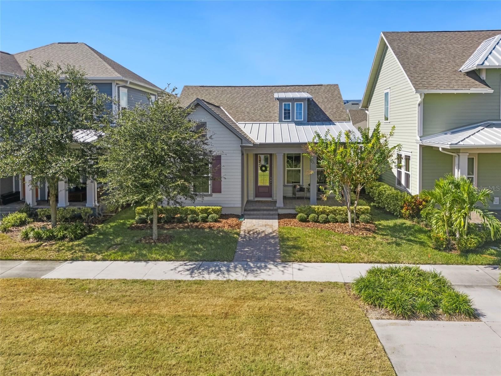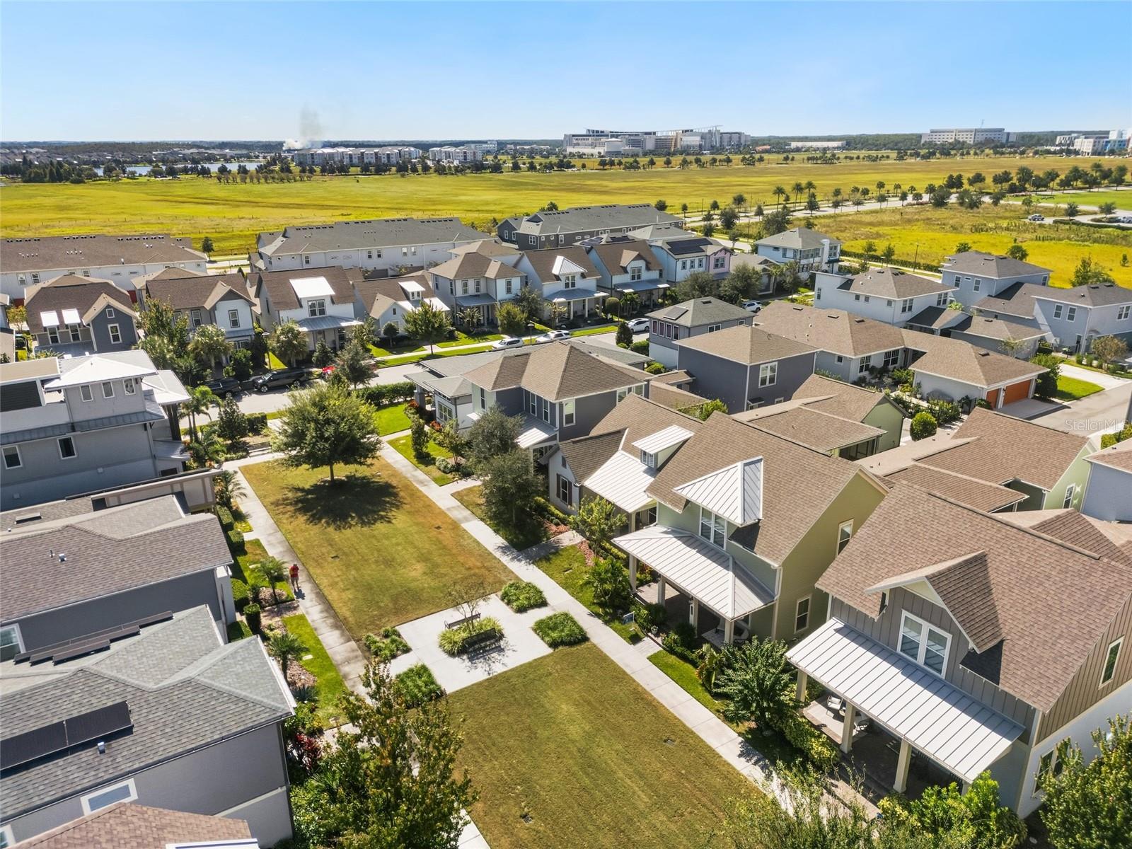 Under contract-accepting backup offers. Welcome Home! This charming, beautiful, and meticulously maintained single-story home offers amazing curb appeal and is perfectly situated on a Mews Lot in the highly desirable community of Laureate Park in Lake Nona, Orlando, FL. Enjoy quiet mornings with a cup of coffee or unwind with a good book on your quaint front porch overlooking the lush, manicured greenspace. Step inside to a welcoming foyer featuring luxury vinyl plank flooring that flows seamlessly throughout the main living areas. Experience the comfort of an open-concept floor plan that includes a family room, dining area, and kitchen combination. Your spacious family and dining rooms are bathed in natural light from surrounding windows—creating the perfect atmosphere to relax and reconnect after a long day. Adjacent to the family room, you’ll find a full bathroom and two inviting bedrooms. Down the hall lies the heart of the home—your bright, spacious, and stunning kitchen. Cook with ease in your gourmet kitchen, offering ample counter space, a single basin sink, quartz countertops, stainless steel appliances, shaker-style cabinetry, and premium upgrades such as cabinet drawer systems, pull-out trash bins, under-cabinet lighting, and a walk-in pantry. Tucked away off the kitchen is your oversized master bedroom featuring an ensuite bathroom with a large walk-in shower showcasing floor-to-ceiling tile and a rain shower head. The elegant double-sink vanity with quartz countertops provides abundant storage, and the expansive walk-in closet completes this serene retreat. Conveniently located off the kitchen, your walk-in laundry room has been upgraded with upper cabinetry for extra organization. At the back of the home, you’ll appreciate the built-in insert area—perfect for creating a custom drop zone to simplify daily comings and goings. Step outside to your rear covered and screened-in porch, ideal for enjoying Florida’s beautiful weather all year long. Additional upgrades include speaker pre-wiring in the great room and lanai, pre-plumbing for an outdoor kitchen, HVAC UV System, and a whole-home filtration and alkaline system, along with a Water Softener. The HOA includes high-speed internet (up to 1 GIG) and access to the Laureate Park Fitness Center, resort-style aquatic center, beach volleyball court, and half basketball court. Laureate Park also features community gardens, dog parks, playgrounds, and miles of scenic trails for walking, running, and biking. Enjoy a vibrant community lifestyle with events like Live & Local, Movies in the Park, Yoga, and more. Located in the heart of Lake Nona’s Medical City, with convenient access to the BEEP autonomous shuttle service, this home is near top-rated schools, Orlando International Airport, major highways, shopping, dining, the USTA National Campus, and KPMG.
