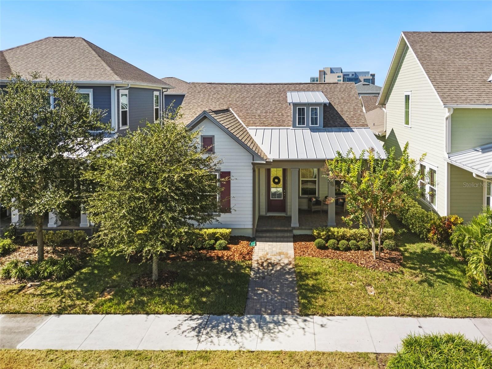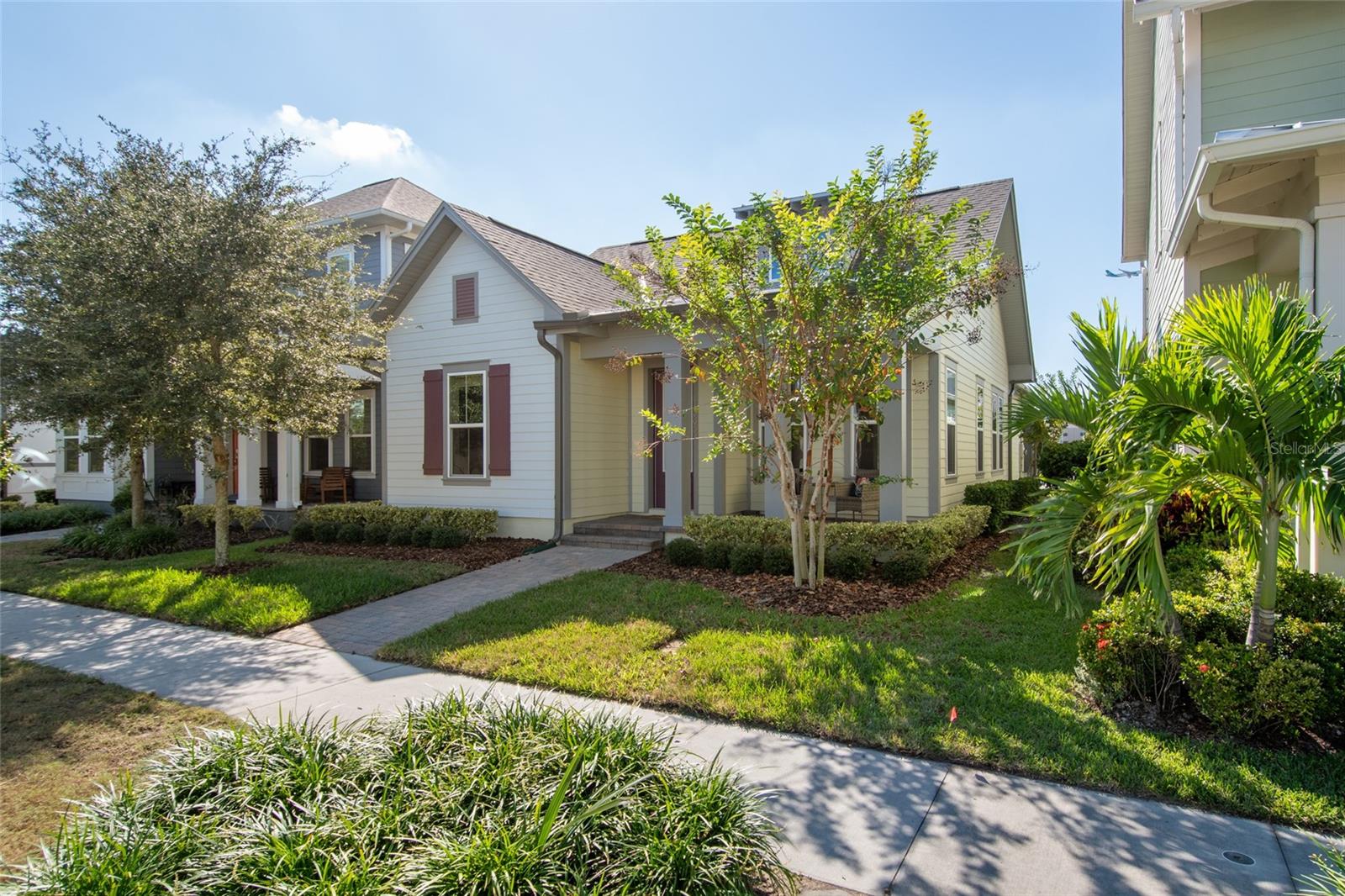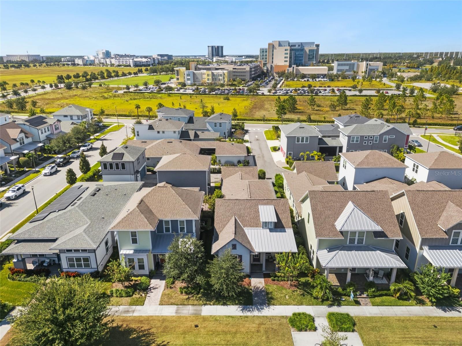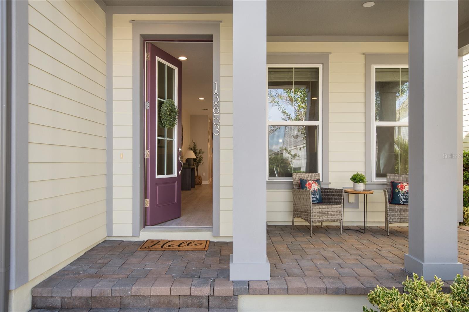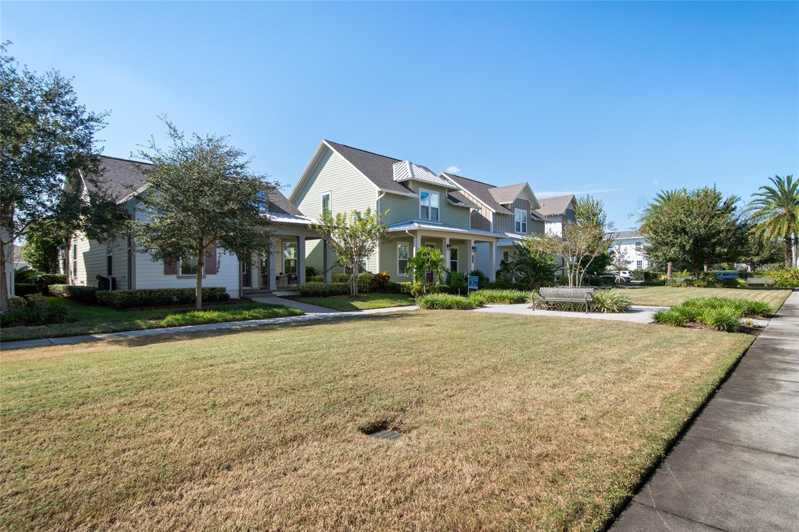 Under contract-accepting backup offers. Welcome Home! This charming, beautiful, and meticulously maintained single-story home offers amazing curb appeal and is perfectly situated on a Mews Lot in the highly desirable community of Laureate Park in Lake Nona, Orlando, FL. Enjoy quiet mornings with a cup of coffee or unwind with a good book on your quaint front porch overlooking the lush, manicured greenspace. Step inside to a welcoming foyer featuring luxury vinyl plank flooring that flows seamlessly throughout the main living areas. Experience the comfort of an open-concept floor plan that includes a family room, dining area, and kitchen combination. Your spacious family and dining rooms are bathed in natural light from surrounding windows—creating the perfect atmosphere to relax and reconnect after a long day. Adjacent to the family room, you’ll find a full bathroom and two inviting bedrooms. Down the hall lies the heart of the home—your bright, spacious, and stunning kitchen. Cook with ease in your gourmet kitchen, offering ample counter space, a single basin sink, quartz countertops, stainless steel appliances, shaker-style cabinetry, and premium upgrades such as cabinet drawer systems, pull-out trash bins, under-cabinet lighting, and a walk-in pantry. Tucked away off the kitchen is your oversized master bedroom featuring an ensuite bathroom with a large walk-in shower showcasing floor-to-ceiling tile and a rain shower head. The elegant double-sink vanity with quartz countertops provides abundant storage, and the expansive walk-in closet completes this serene retreat. Conveniently located off the kitchen, your walk-in laundry room has been upgraded with upper cabinetry for extra organization. At the back of the home, you’ll appreciate the built-in insert area—perfect for creating a custom drop zone to simplify daily comings and goings. Step outside to your rear covered and screened-in porch, ideal for enjoying Florida’s beautiful weather all year long. Additional upgrades include speaker pre-wiring in the great room and lanai, pre-plumbing for an outdoor kitchen, HVAC UV System, and a whole-home filtration and alkaline system, along with a Water Softener. The HOA includes high-speed internet (up to 1 GIG) and access to the Laureate Park Fitness Center, resort-style aquatic center, beach volleyball court, and half basketball court. Laureate Park also features community gardens, dog parks, playgrounds, and miles of scenic trails for walking, running, and biking. Enjoy a vibrant community lifestyle with events like Live & Local, Movies in the Park, Yoga, and more. Located in the heart of Lake Nona’s Medical City, with convenient access to the BEEP autonomous shuttle service, this home is near top-rated schools, Orlando International Airport, major highways, shopping, dining, the USTA National Campus, and KPMG.