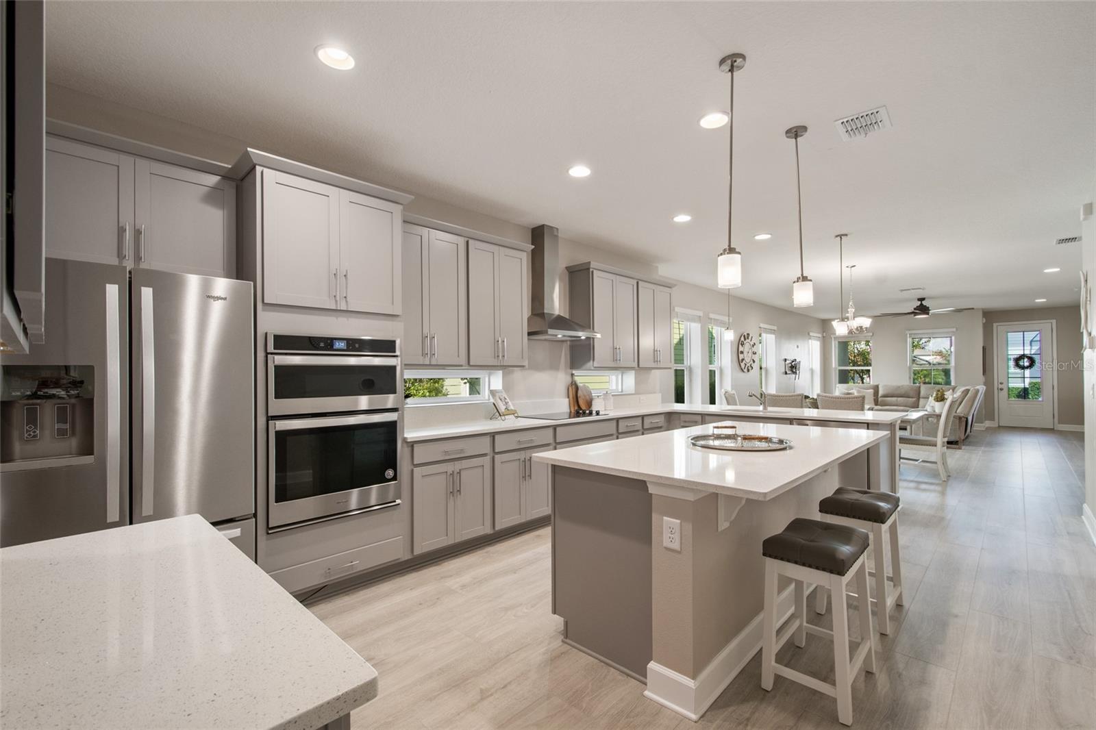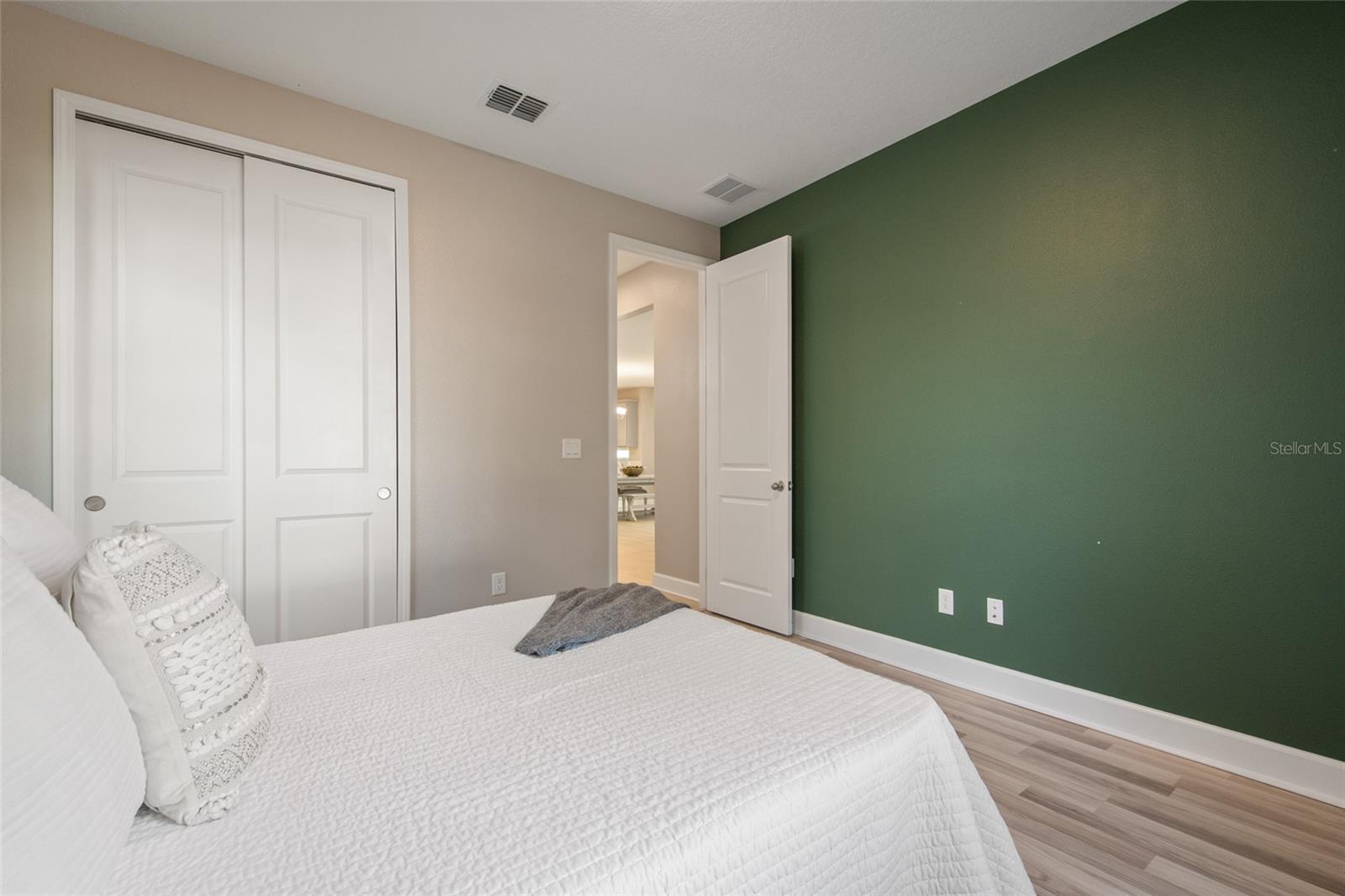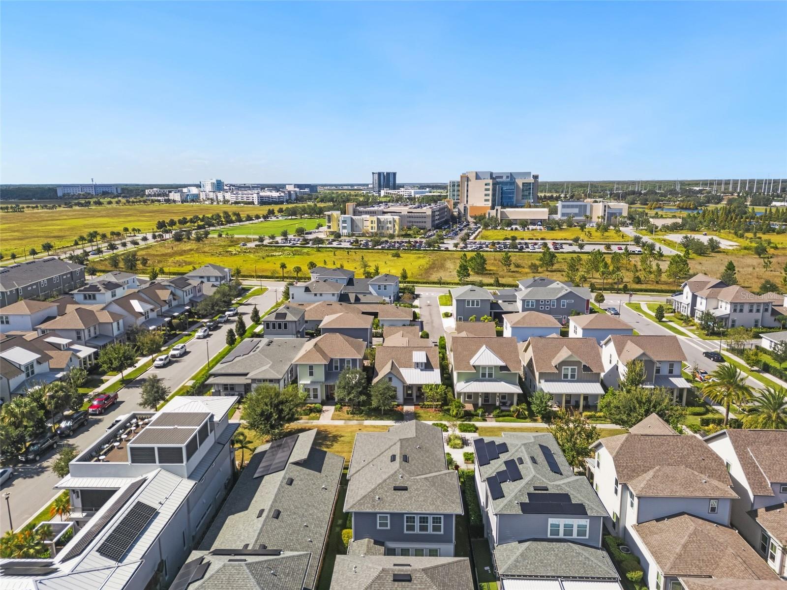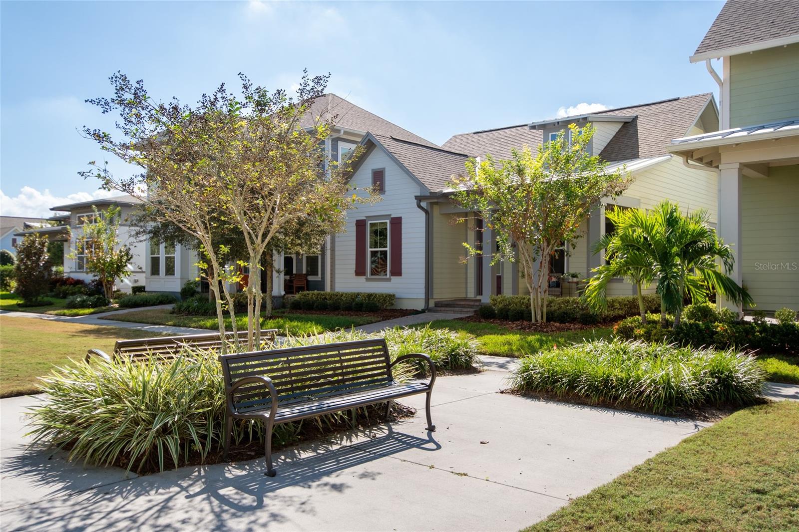Under contract-accepting backup offers. Welcome Home! This charming, beautiful, and meticulously maintained single-story home offers amazing curb appeal and is perfectly situated on a Mews Lot in the highly desirable community of Laureate Park in Lake Nona, Orlando, FL. Enjoy quiet mornings with a cup of coffee or unwind with a good book on your quaint front porch overlooking the lush, manicured greenspace. Step inside to a welcoming foyer featuring luxury vinyl plank flooring that flows seamlessly throughout the main living areas. Experience the comfort of an open-concept floor plan that includes a family room, dining area, and kitchen combination. Your spacious family and dining rooms are bathed in natural light from surrounding windows—creating the perfect atmosphere to relax and reconnect after a long day. Adjacent to the family room, you’ll find a full bathroom and two inviting bedrooms. Down the hall lies the heart of the home—your bright, spacious, and stunning kitchen. Cook with ease in your gourmet kitchen, offering ample counter space, a single basin sink, quartz countertops, stainless steel appliances, shaker-style cabinetry, and premium upgrades such as cabinet drawer systems, pull-out trash bins, under-cabinet lighting, and a walk-in pantry. Tucked away off the kitchen is your oversized master bedroom featuring an ensuite bathroom with a large walk-in shower showcasing floor-to-ceiling tile and a rain shower head. The elegant double-sink vanity with quartz countertops provides abundant storage, and the expansive walk-in closet completes this serene retreat. Conveniently located off the kitchen, your walk-in laundry room has been upgraded with upper cabinetry for extra organization. At the back of the home, you’ll appreciate the built-in insert area—perfect for creating a custom drop zone to simplify daily comings and goings. Step outside to your rear covered and screened-in porch, ideal for enjoying Florida’s beautiful weather all year long. Additional upgrades include speaker pre-wiring in the great room and lanai, pre-plumbing for an outdoor kitchen, HVAC UV System, and a whole-home filtration and alkaline system, along with a Water Softener. The HOA includes high-speed internet (up to 1 GIG) and access to the Laureate Park Fitness Center, resort-style aquatic center, beach volleyball court, and half basketball court. Laureate Park also features community gardens, dog parks, playgrounds, and miles of scenic trails for walking, running, and biking. Enjoy a vibrant community lifestyle with events like Live & Local, Movies in the Park, Yoga, and more. Located in the heart of Lake Nona’s Medical City, with convenient access to the BEEP autonomous shuttle service, this home is near top-rated schools, Orlando International Airport, major highways, shopping, dining, the USTA National Campus, and KPMG.