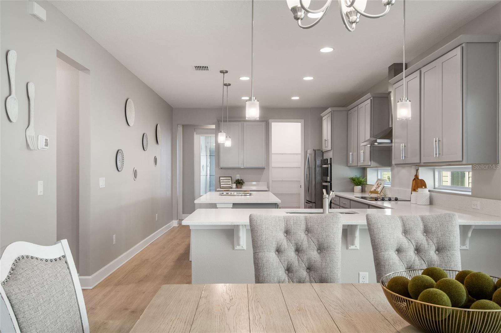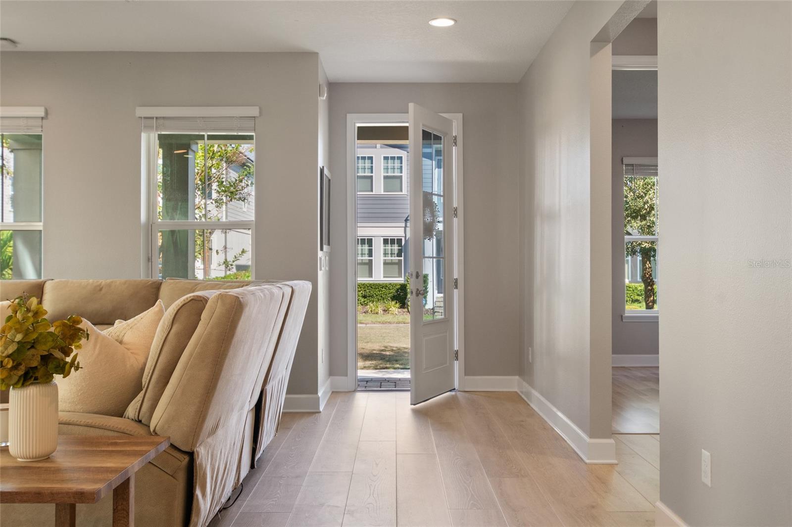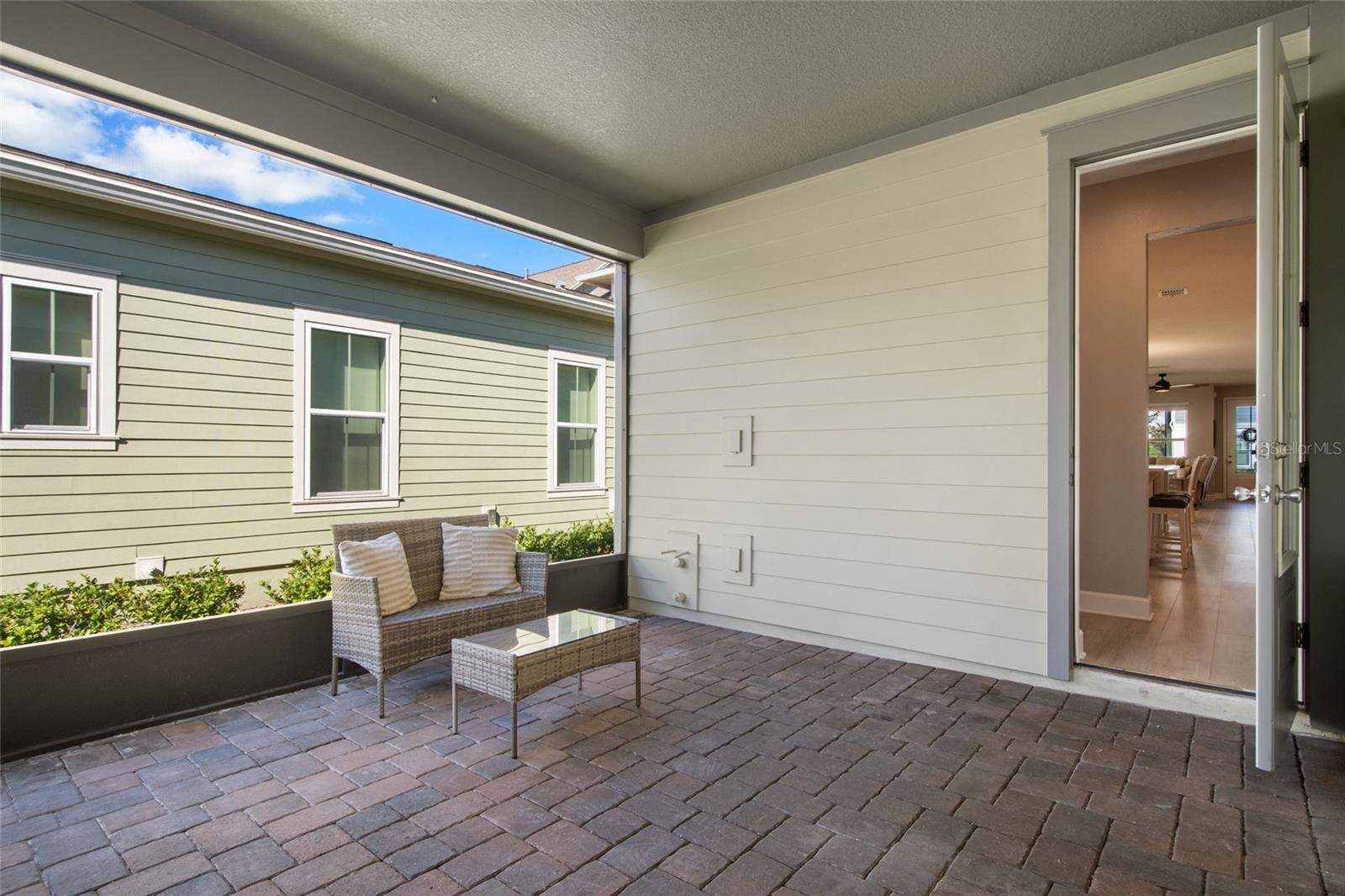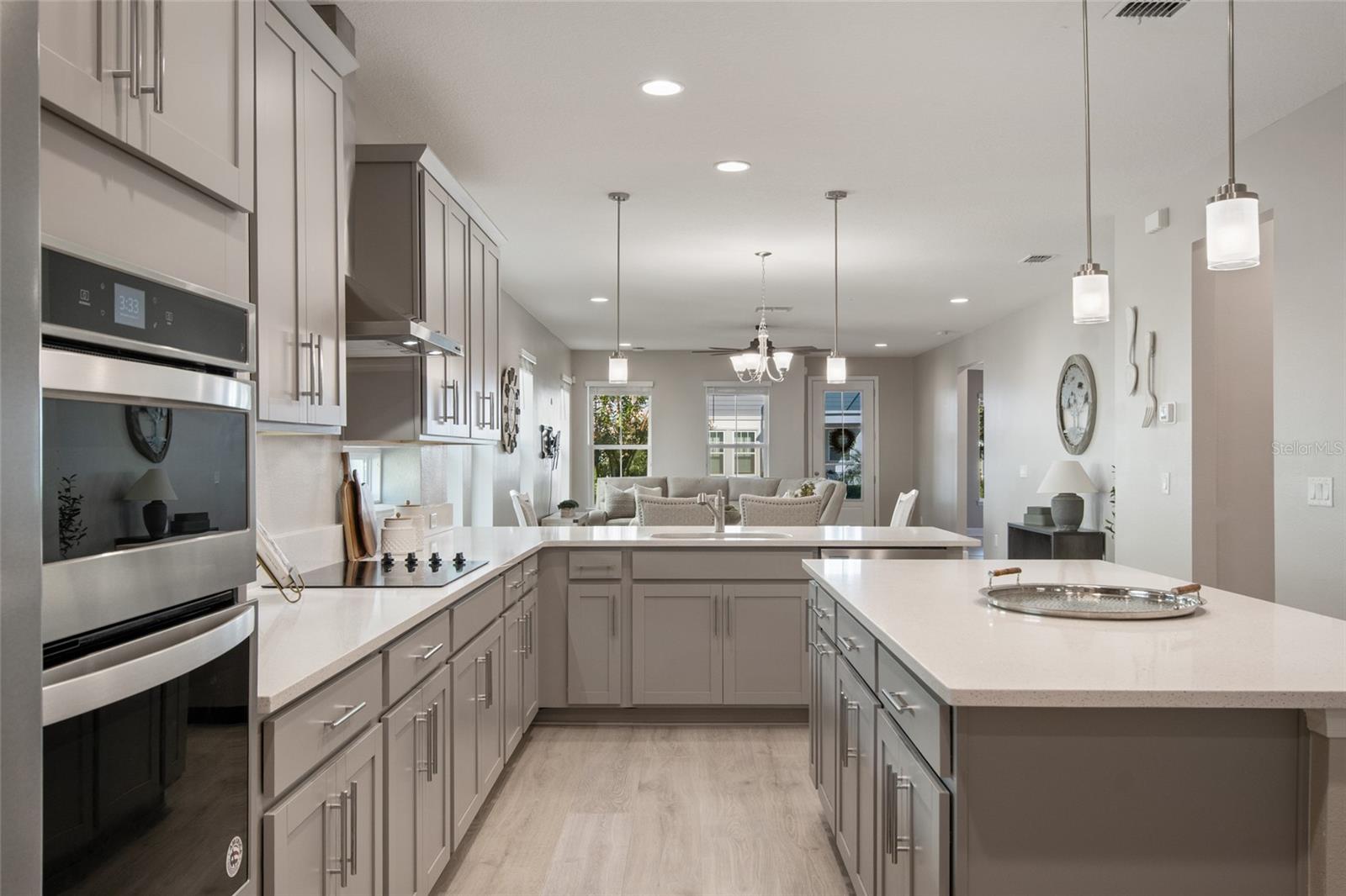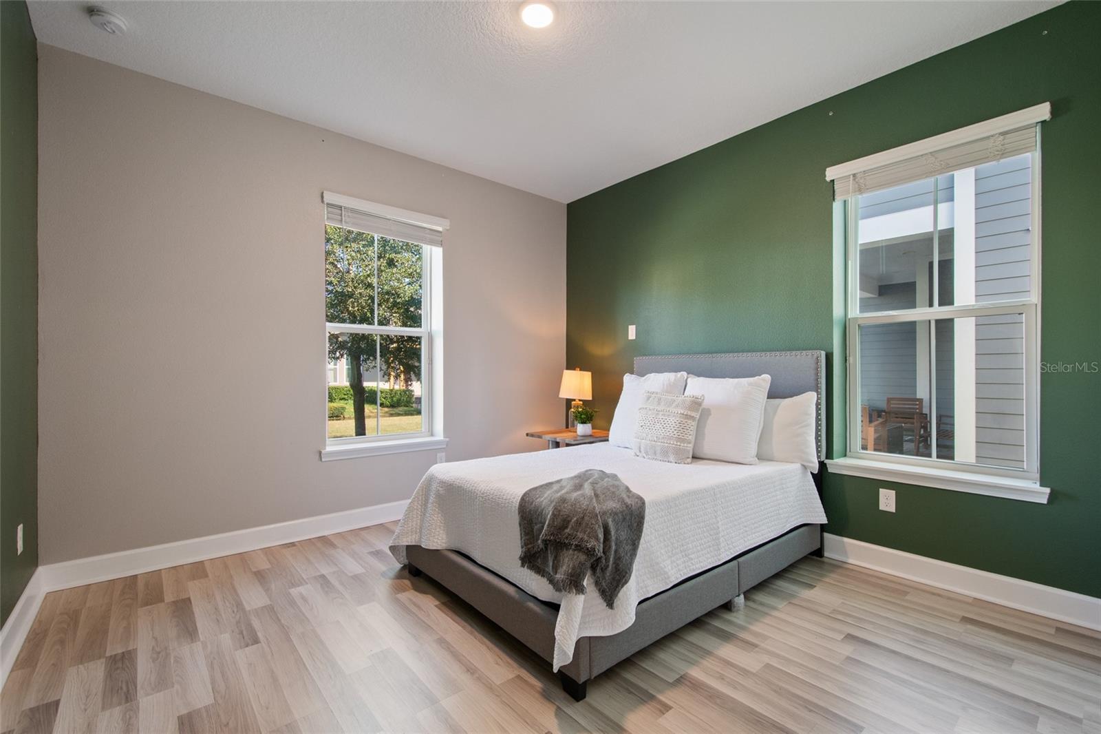 Under contract-accepting backup offers. Welcome Home! This charming, beautiful, and meticulously maintained single-story home offers amazing curb appeal and is perfectly situated on a Mews Lot in the highly desirable community of Laureate Park in Lake Nona, Orlando, FL. Enjoy quiet mornings with a cup of coffee or unwind with a good book on your quaint front porch overlooking the lush, manicured greenspace. Step inside to a welcoming foyer featuring luxury vinyl plank flooring that flows seamlessly throughout the main living areas. Experience the comfort of an open-concept floor plan that includes a family room, dining area, and kitchen combination. Your spacious family and dining rooms are bathed in natural light from surrounding windows—creating the perfect atmosphere to relax and reconnect after a long day. Adjacent to the family room, you’ll find a full bathroom and two inviting bedrooms. Down the hall lies the heart of the home—your bright, spacious, and stunning kitchen. Cook with ease in your gourmet kitchen, offering ample counter space, a single basin sink, quartz countertops, stainless steel appliances, shaker-style cabinetry, and premium upgrades such as cabinet drawer systems, pull-out trash bins, under-cabinet lighting, and a walk-in pantry. Tucked away off the kitchen is your oversized master bedroom featuring an ensuite bathroom with a large walk-in shower showcasing floor-to-ceiling tile and a rain shower head. The elegant double-sink vanity with quartz countertops provides abundant storage, and the expansive walk-in closet completes this serene retreat. Conveniently located off the kitchen, your walk-in laundry room has been upgraded with upper cabinetry for extra organization. At the back of the home, you’ll appreciate the built-in insert area—perfect for creating a custom drop zone to simplify daily comings and goings. Step outside to your rear covered and screened-in porch, ideal for enjoying Florida’s beautiful weather all year long. Additional upgrades include speaker pre-wiring in the great room and lanai, pre-plumbing for an outdoor kitchen, HVAC UV System, and a whole-home filtration and alkaline system, along with a Water Softener. The HOA includes high-speed internet (up to 1 GIG) and access to the Laureate Park Fitness Center, resort-style aquatic center, beach volleyball court, and half basketball court. Laureate Park also features community gardens, dog parks, playgrounds, and miles of scenic trails for walking, running, and biking. Enjoy a vibrant community lifestyle with events like Live & Local, Movies in the Park, Yoga, and more. Located in the heart of Lake Nona’s Medical City, with convenient access to the BEEP autonomous shuttle service, this home is near top-rated schools, Orlando International Airport, major highways, shopping, dining, the USTA National Campus, and KPMG.