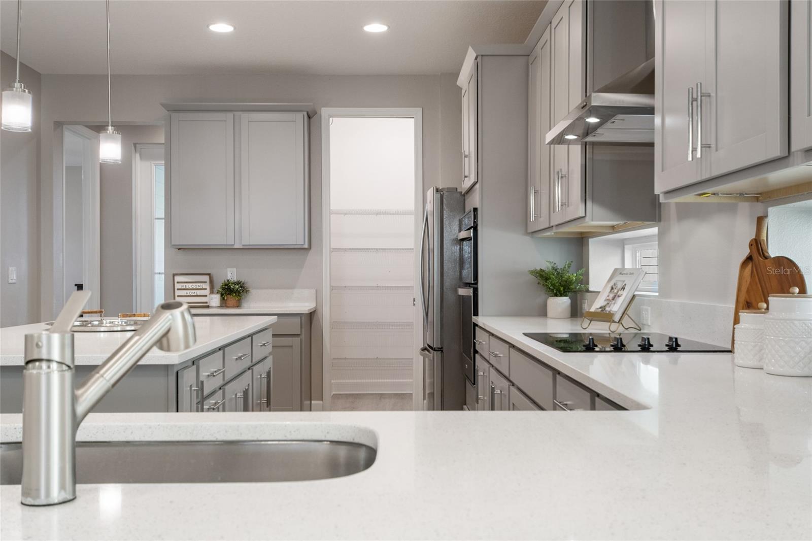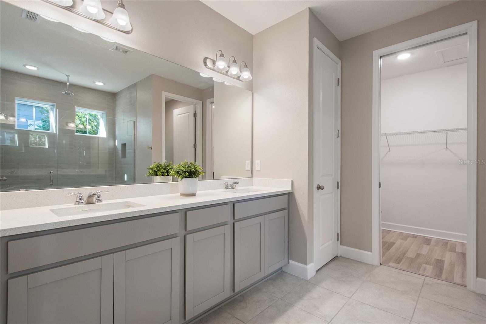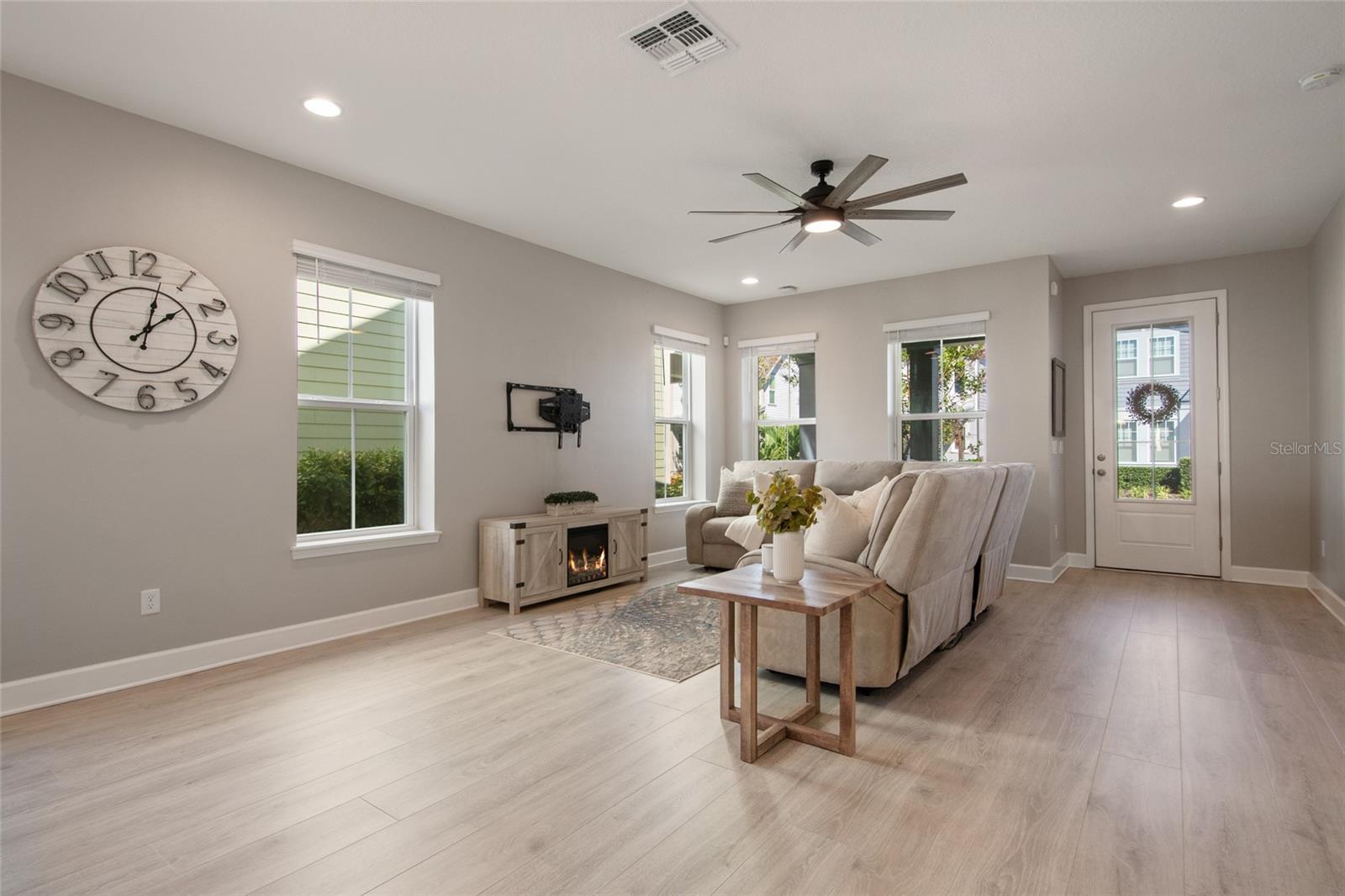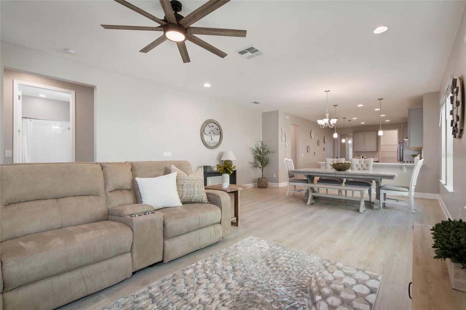 Under contract-accepting backup offers. Welcome Home! This charming, beautiful, and meticulously maintained single-story home offers amazing curb appeal and is perfectly situated on a Mews Lot in the highly desirable community of Laureate Park in Lake Nona, Orlando, FL. Enjoy quiet mornings with a cup of coffee or unwind with a good book on your quaint front porch overlooking the lush, manicured greenspace. Step inside to a welcoming foyer featuring luxury vinyl plank flooring that flows seamlessly throughout the main living areas. Experience the comfort of an open-concept floor plan that includes a family room, dining area, and kitchen combination. Your spacious family and dining rooms are bathed in natural light from surrounding windows—creating the perfect atmosphere to relax and reconnect after a long day. Adjacent to the family room, you’ll find a full bathroom and two inviting bedrooms. Down the hall lies the heart of the home—your bright, spacious, and stunning kitchen. Cook with ease in your gourmet kitchen, offering ample counter space, a single basin sink, quartz countertops, stainless steel appliances, shaker-style cabinetry, and premium upgrades such as cabinet drawer systems, pull-out trash bins, under-cabinet lighting, and a walk-in pantry. Tucked away off the kitchen is your oversized master bedroom featuring an ensuite bathroom with a large walk-in shower showcasing floor-to-ceiling tile and a rain shower head. The elegant double-sink vanity with quartz countertops provides abundant storage, and the expansive walk-in closet completes this serene retreat. Conveniently located off the kitchen, your walk-in laundry room has been upgraded with upper cabinetry for extra organization. At the back of the home, you’ll appreciate the built-in insert area—perfect for creating a custom drop zone to simplify daily comings and goings. Step outside to your rear covered and screened-in porch, ideal for enjoying Florida’s beautiful weather all year long. Additional upgrades include speaker pre-wiring in the great room and lanai, pre-plumbing for an outdoor kitchen, HVAC UV System, and a whole-home filtration and alkaline system, along with a Water Softener. The HOA includes high-speed internet (up to 1 GIG) and access to the Laureate Park Fitness Center, resort-style aquatic center, beach volleyball court, and half basketball court. Laureate Park also features community gardens, dog parks, playgrounds, and miles of scenic trails for walking, running, and biking. Enjoy a vibrant community lifestyle with events like Live & Local, Movies in the Park, Yoga, and more. Located in the heart of Lake Nona’s Medical City, with convenient access to the BEEP autonomous shuttle service, this home is near top-rated schools, Orlando International Airport, major highways, shopping, dining, the USTA National Campus, and KPMG.