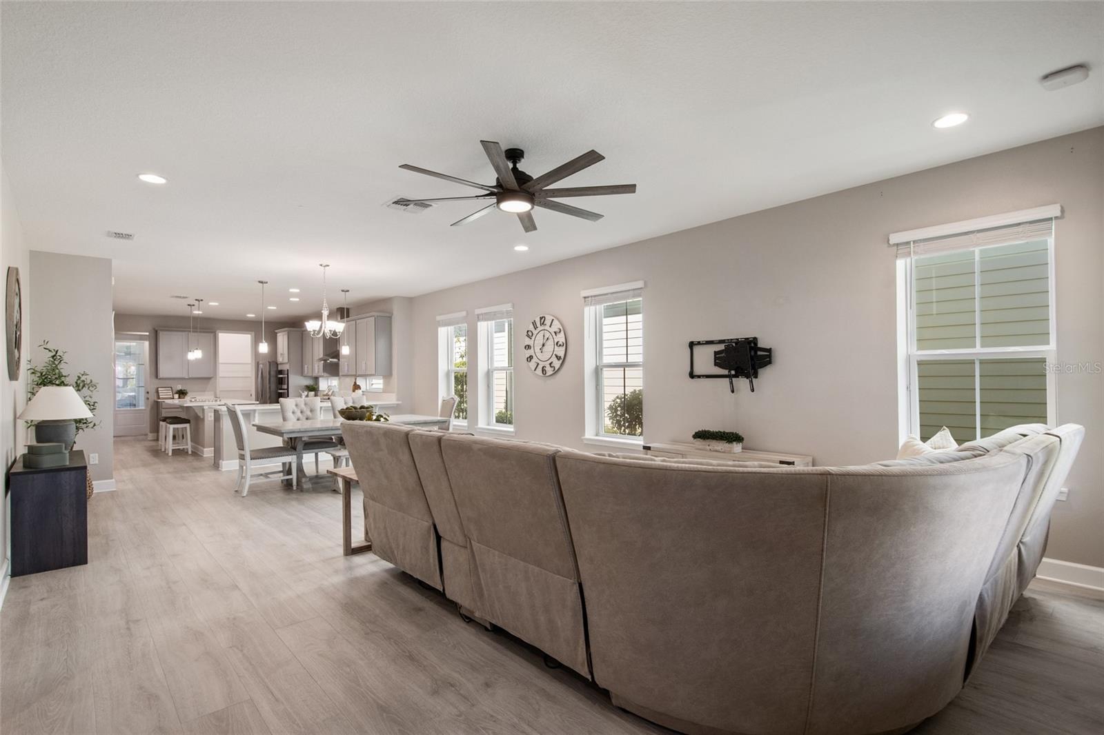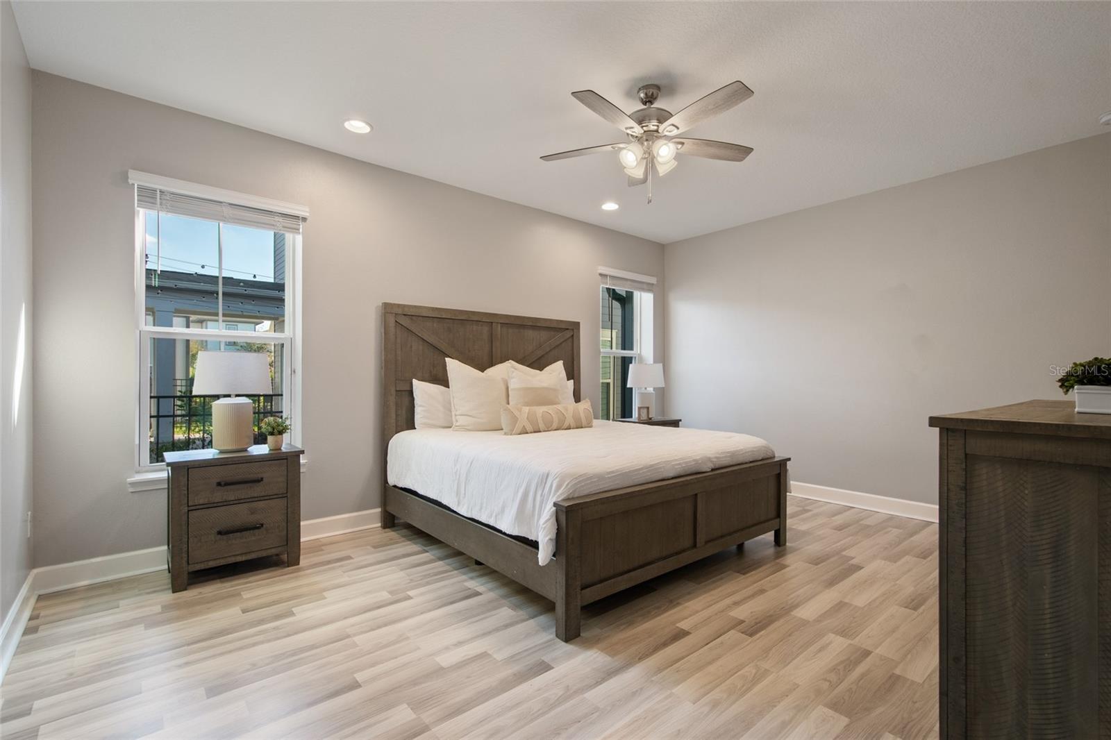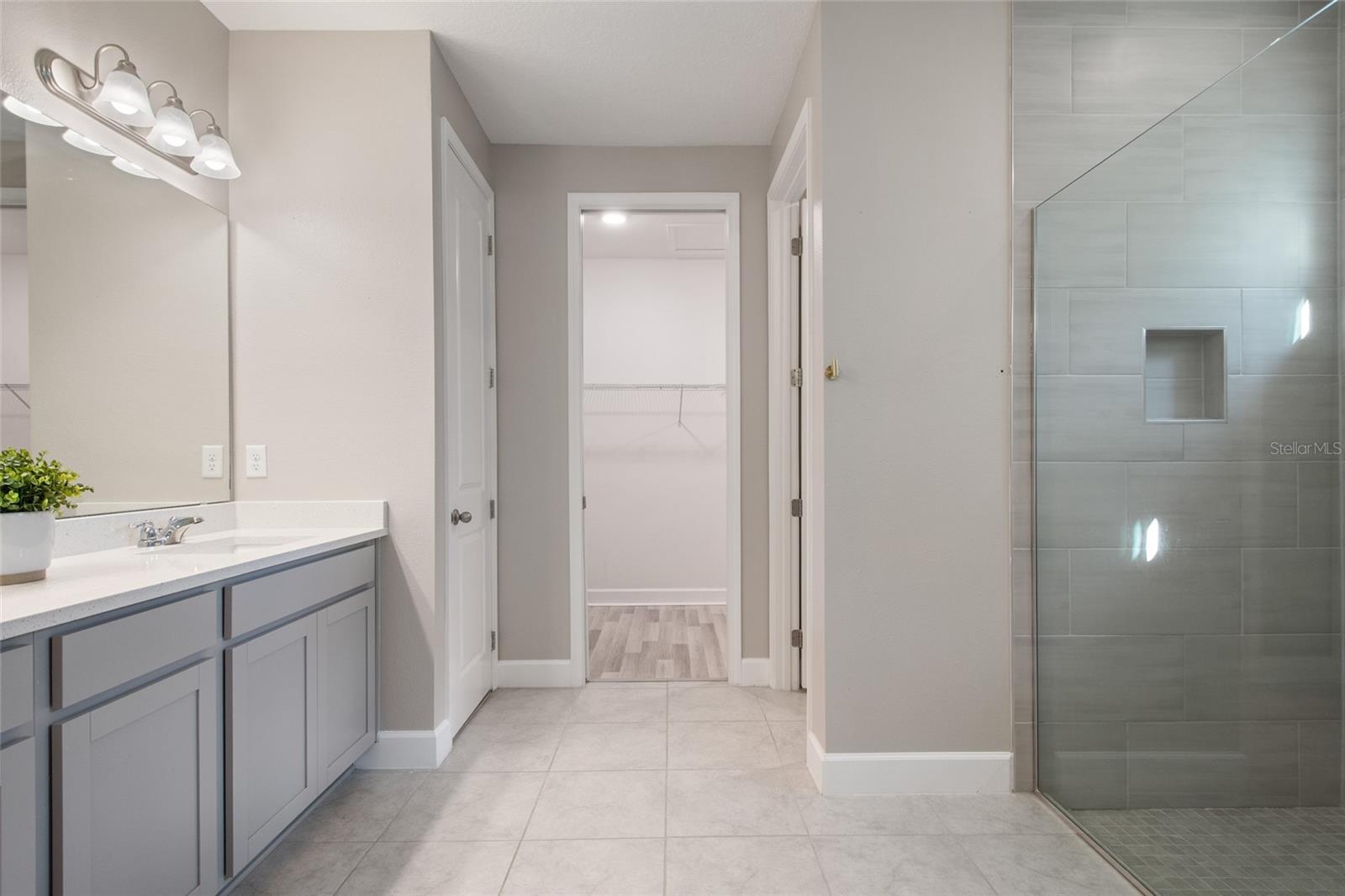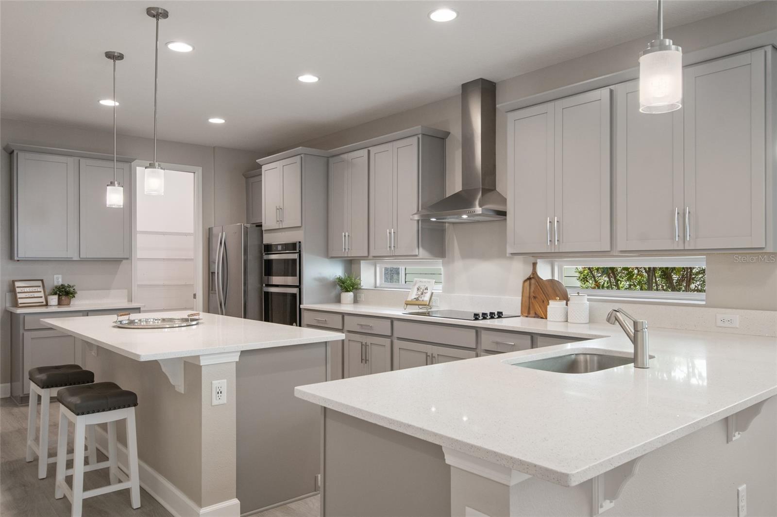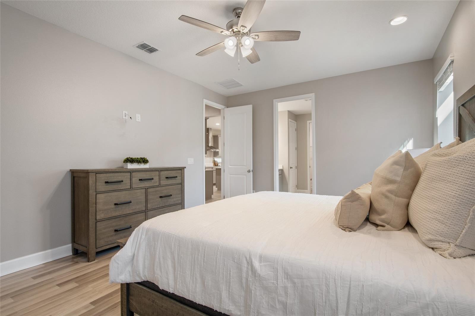 Under contract-accepting backup offers. Welcome Home! This charming, beautiful, and meticulously maintained single-story home offers amazing curb appeal and is perfectly situated on a Mews Lot in the highly desirable community of Laureate Park in Lake Nona, Orlando, FL. Enjoy quiet mornings with a cup of coffee or unwind with a good book on your quaint front porch overlooking the lush, manicured greenspace. Step inside to a welcoming foyer featuring luxury vinyl plank flooring that flows seamlessly throughout the main living areas. Experience the comfort of an open-concept floor plan that includes a family room, dining area, and kitchen combination. Your spacious family and dining rooms are bathed in natural light from surrounding windows—creating the perfect atmosphere to relax and reconnect after a long day. Adjacent to the family room, you’ll find a full bathroom and two inviting bedrooms. Down the hall lies the heart of the home—your bright, spacious, and stunning kitchen. Cook with ease in your gourmet kitchen, offering ample counter space, a single basin sink, quartz countertops, stainless steel appliances, shaker-style cabinetry, and premium upgrades such as cabinet drawer systems, pull-out trash bins, under-cabinet lighting, and a walk-in pantry. Tucked away off the kitchen is your oversized master bedroom featuring an ensuite bathroom with a large walk-in shower showcasing floor-to-ceiling tile and a rain shower head. The elegant double-sink vanity with quartz countertops provides abundant storage, and the expansive walk-in closet completes this serene retreat. Conveniently located off the kitchen, your walk-in laundry room has been upgraded with upper cabinetry for extra organization. At the back of the home, you’ll appreciate the built-in insert area—perfect for creating a custom drop zone to simplify daily comings and goings. Step outside to your rear covered and screened-in porch, ideal for enjoying Florida’s beautiful weather all year long. Additional upgrades include speaker pre-wiring in the great room and lanai, pre-plumbing for an outdoor kitchen, HVAC UV System, and a whole-home filtration and alkaline system, along with a Water Softener. The HOA includes high-speed internet (up to 1 GIG) and access to the Laureate Park Fitness Center, resort-style aquatic center, beach volleyball court, and half basketball court. Laureate Park also features community gardens, dog parks, playgrounds, and miles of scenic trails for walking, running, and biking. Enjoy a vibrant community lifestyle with events like Live & Local, Movies in the Park, Yoga, and more. Located in the heart of Lake Nona’s Medical City, with convenient access to the BEEP autonomous shuttle service, this home is near top-rated schools, Orlando International Airport, major highways, shopping, dining, the USTA National Campus, and KPMG.